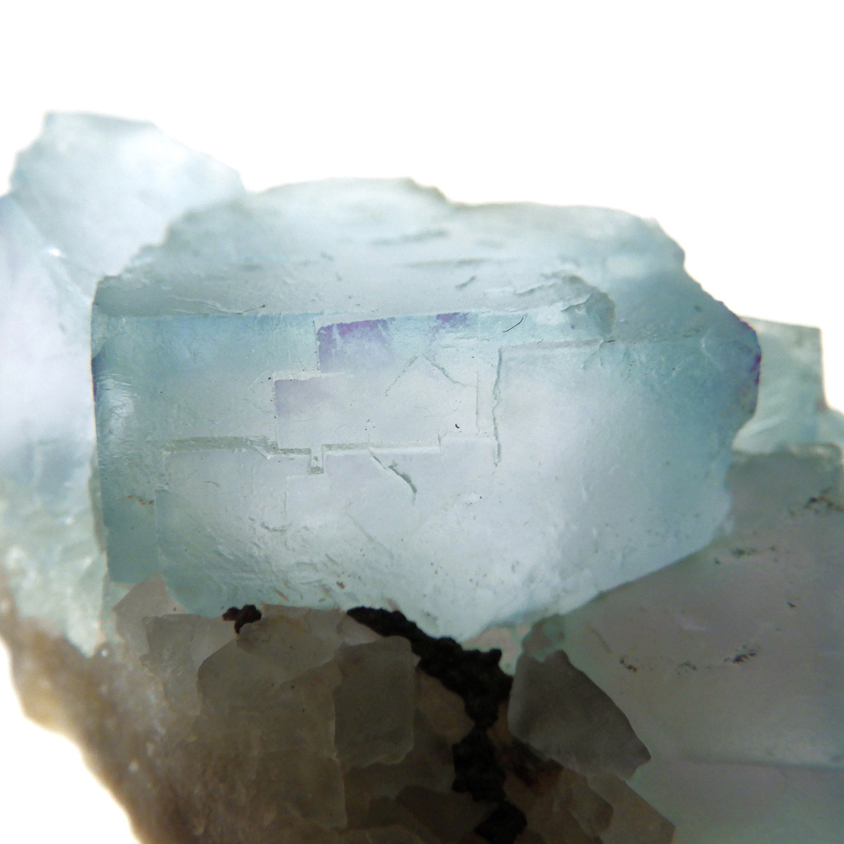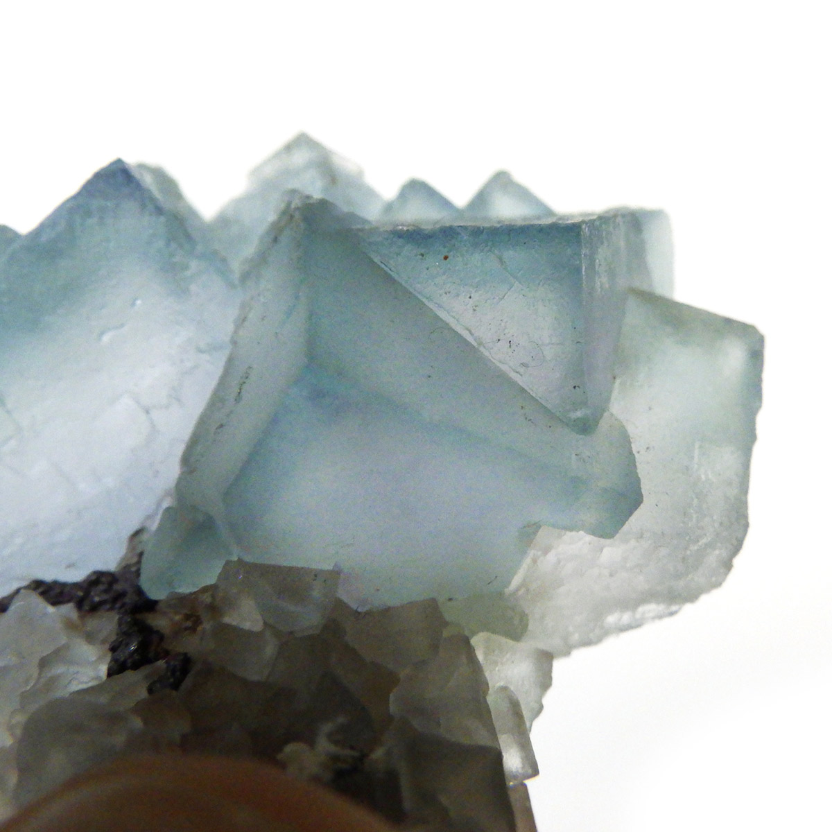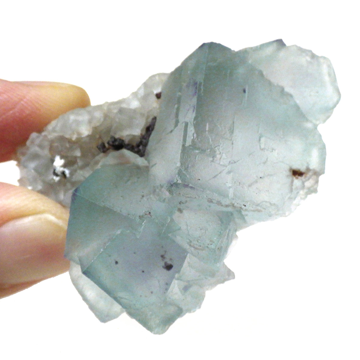 アメリカ・ニューメキシコ州産のブルーフローライト原石です。 カラーの豊富なフローライトの中でも、特にブルーとイエローは希少性が高いことで知られています。ニューメキシコ州産のブルーフローライトは、マットで淡く優しいブルーが大変珍しい希少な鉱物です。 角度によって色合いが変化し、結晶のグラデーションが非常に美しいです。 また、ブラックライトに反応し青色の蛍光を楽しめます。
