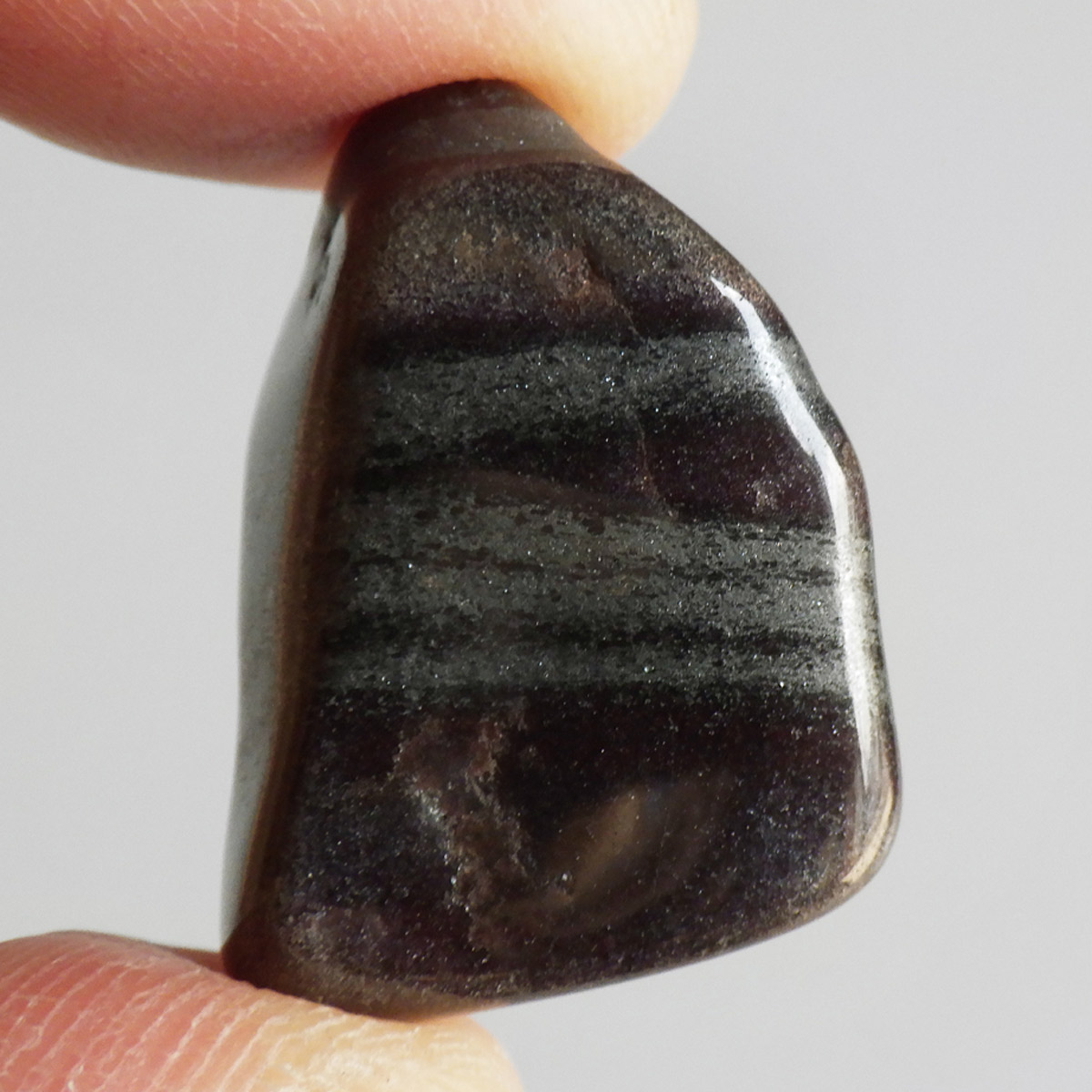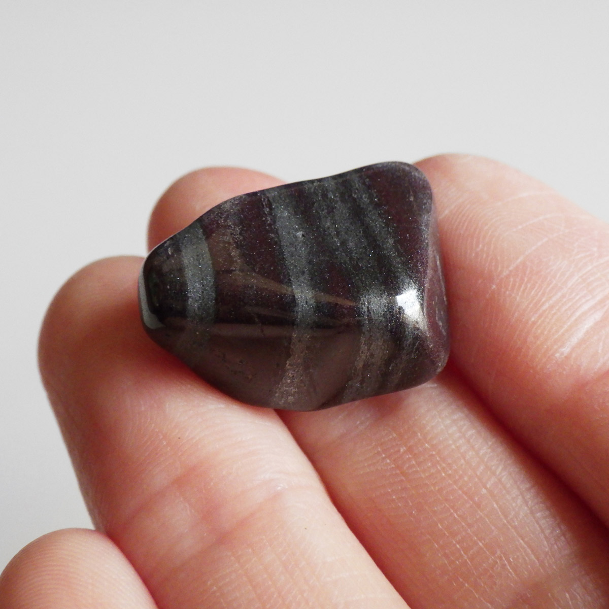 アメリカ・ミシガン州からカナダのオンタリオ州にかけて五大湖地域の縞状鉄鉱層から産出するヘマタイトレッドジャスパーのタンブルです。レッドジャスパーの赤は元々ヘマタイト(赤鉄鉱)によるものです。五大湖の周辺では粒状鉄鉱層といわれており、スペキュラーヘマタイトのようにキラキラとしたヘマタイトが産出します。27億年前の地層の石ということでアンセストラライト(祖先石)という愛称でも呼ばれております。クリムゾンレッドとシルバーの縞模様が面白く、キラキラとしたヘマタイトも魅力的です。