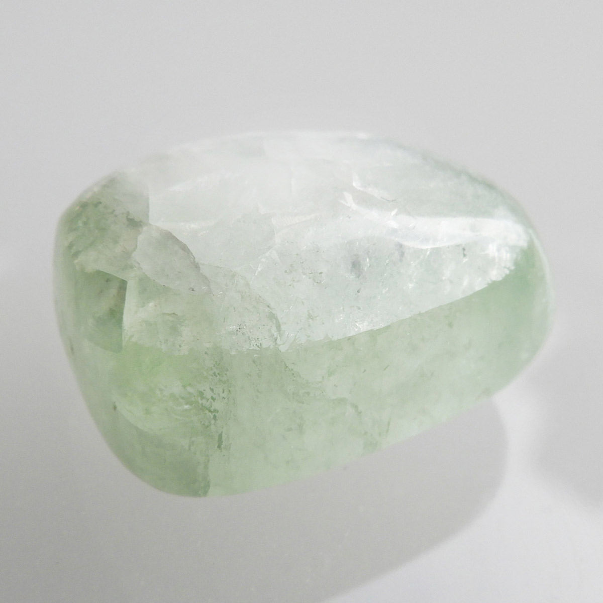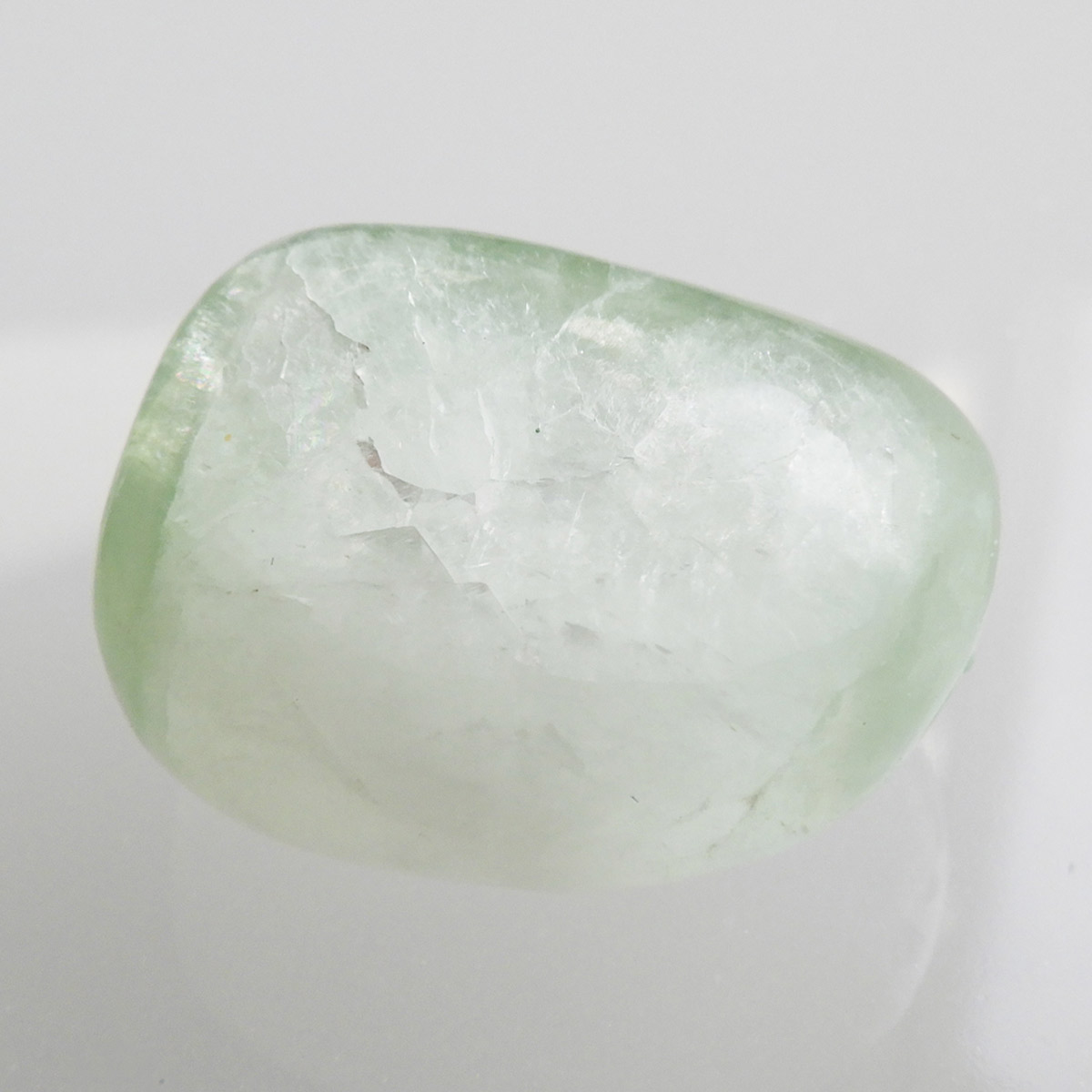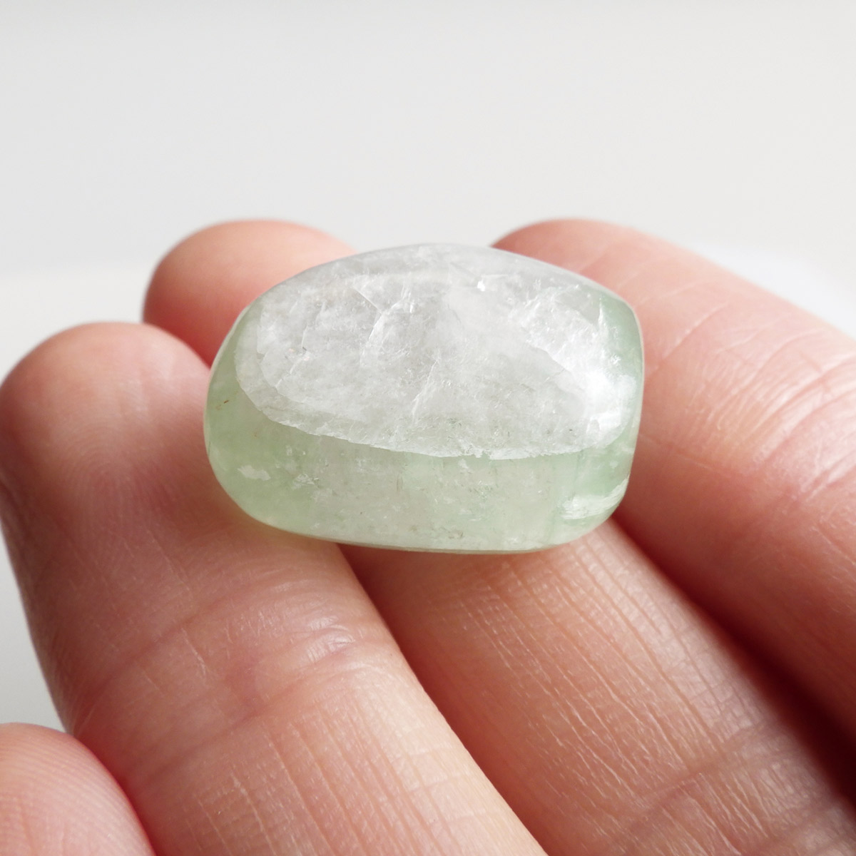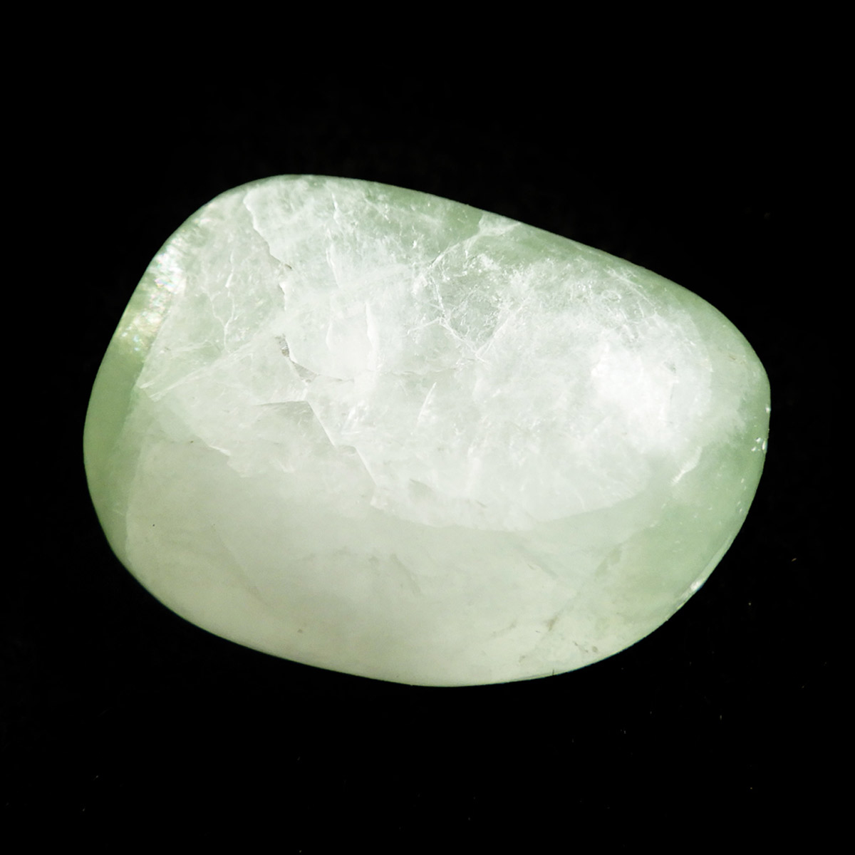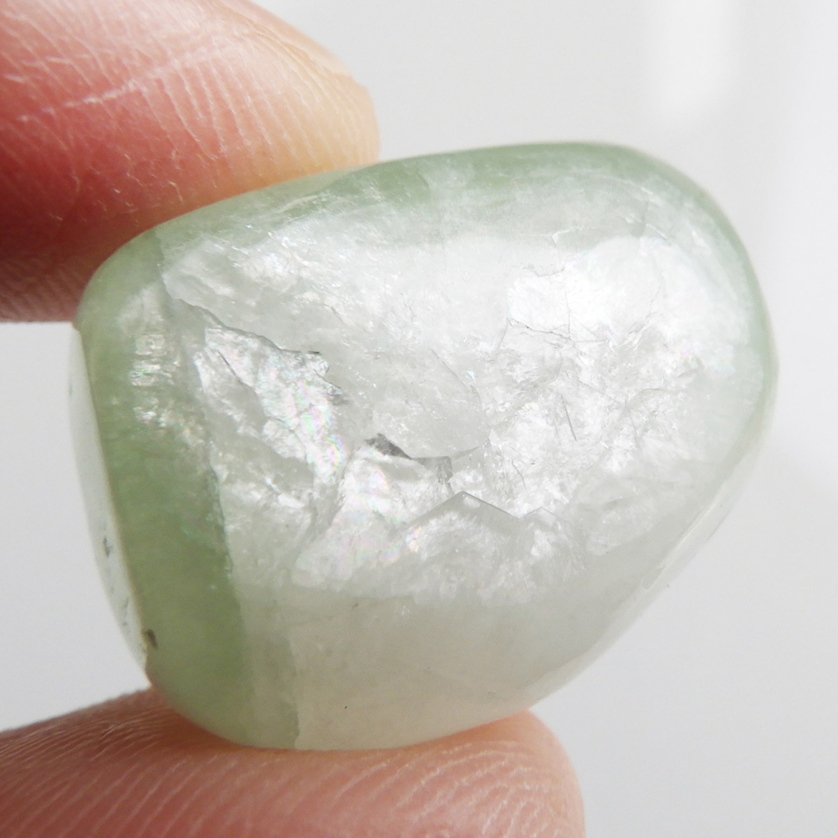 インド、プネー産のグリーンアポフィライト、タンブルです。アポフィライトは、柱状や正方錘状の結晶を持ち、ひとつひとつの結晶が複雑に入り組んだ群晶が水晶とは違う神々しい輝きを魅せてくれます。アップルグリーンが優しい色合いで、レインボーがキラキラ輝き神秘的でとてもきれいです。