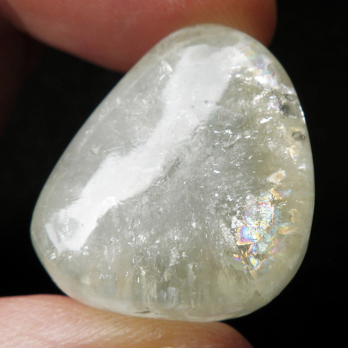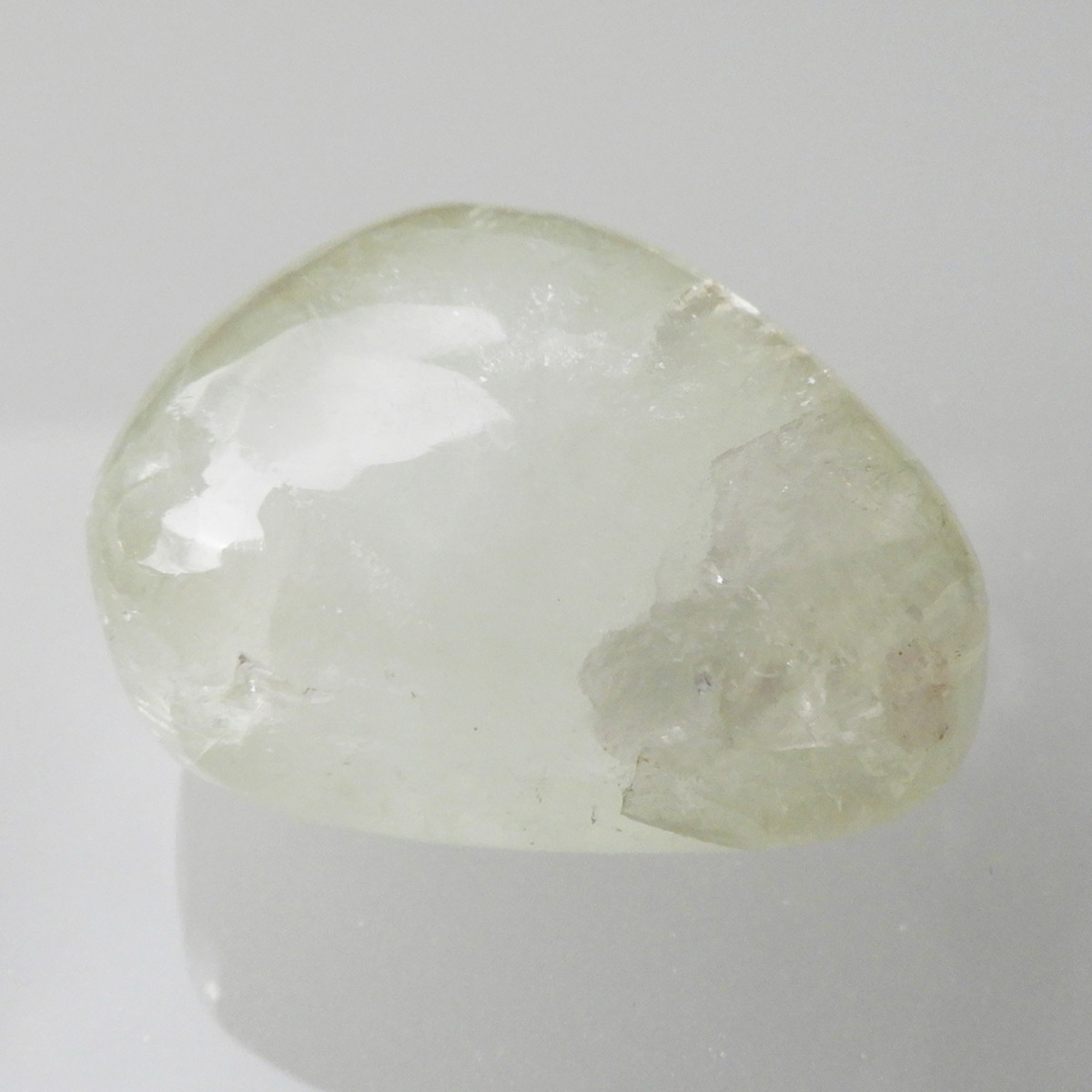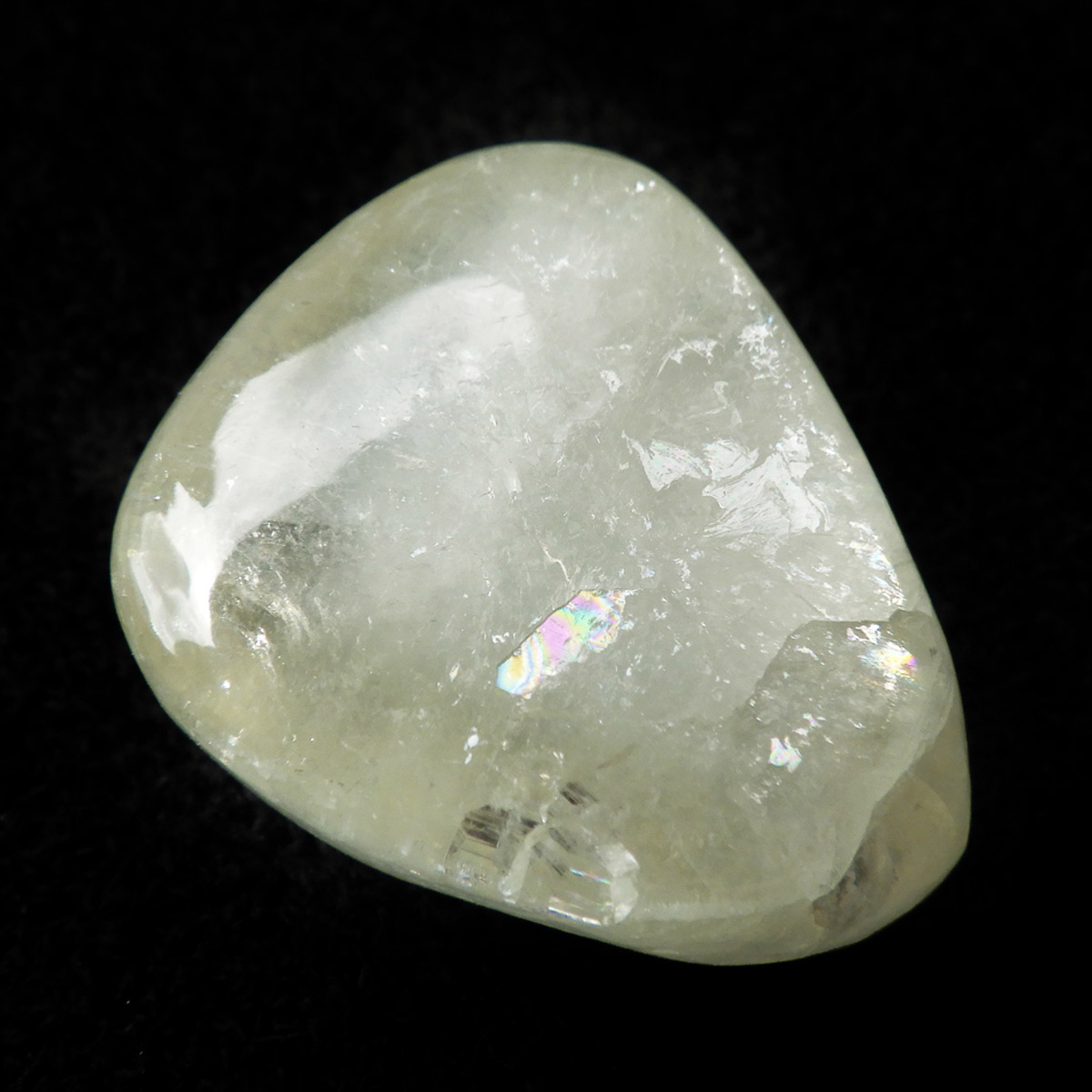インド、プネー産のグリーンアポフィライト、タンブルです。アポフィライトは、柱状や正方錘状の結晶を持ち、ひとつひとつの結晶が複雑に入り組んだ群晶が水晶とは違う神々しい輝きを魅せてくれます。グリーンが優しい色合いで、レインボーがキラキラ輝き神秘的でとてもきれいです。