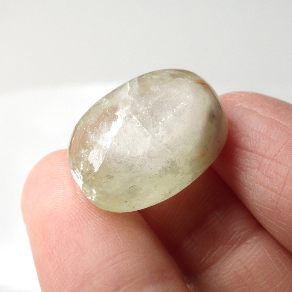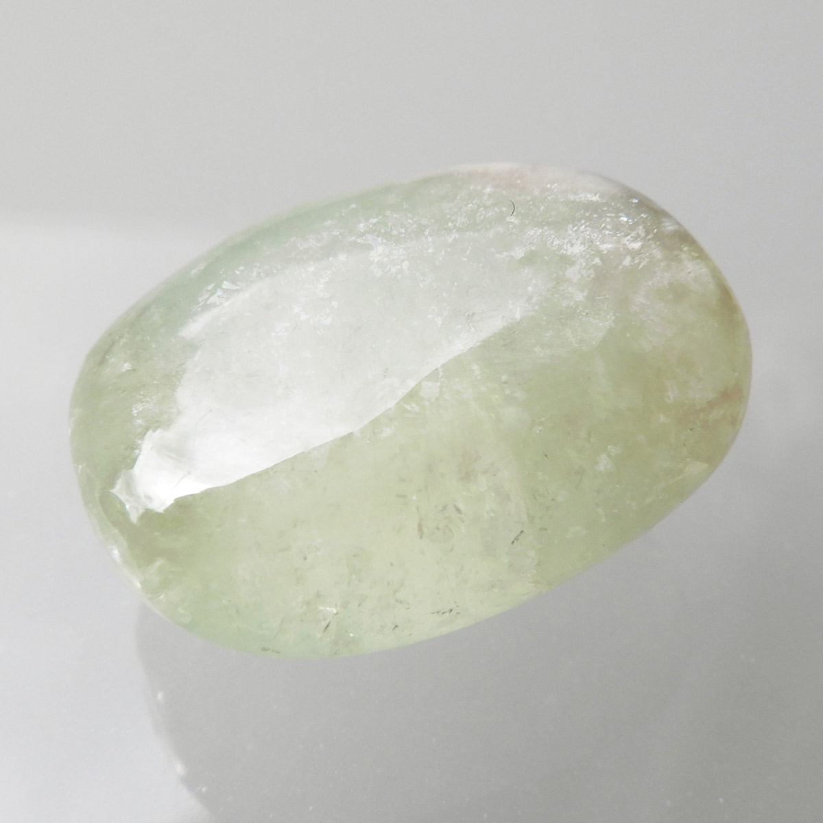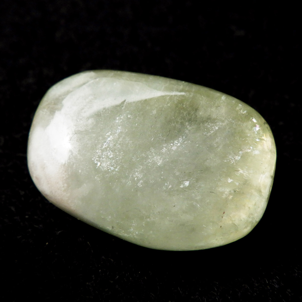 インド、プネー産のグリーンアポフィライト、タンブルです。アポフィライトは、柱状や正方錘状の結晶を持ち、ひとつひとつの結晶が複雑に入り組んだ群晶が水晶とは違う神々しい輝きを魅せてくれます。グリーンが優しい色合いで、レインボーがキラキラ輝き神秘的でとてもきれいです。