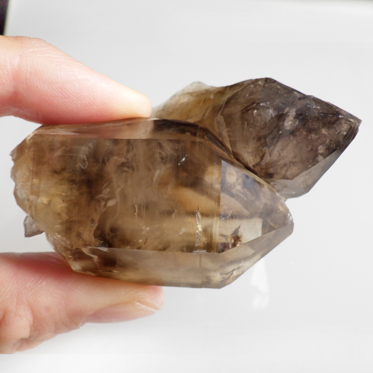 アメリカ合衆国の西部に位置するネバダ州産、スモーキークォーツの原石 ポイントです。 スモーキークォーツはまたの名を茶水晶や煙水晶とも呼ばれ、名前の通り茶色味かかった水晶で、これはアルミニウムイオンの作用とされています。