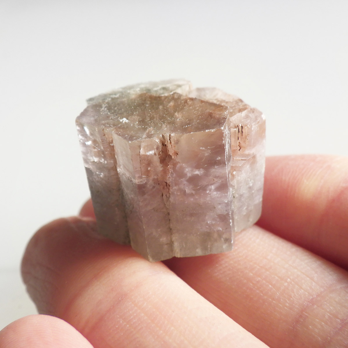 スペイン産、アラゴナイト原石です。アラゴナイトは、最初はスペインのアラゴン地方で採れたのが名前の由来です。色味は薄パープル。結晶が六角柱状になっているのが特徴です。
