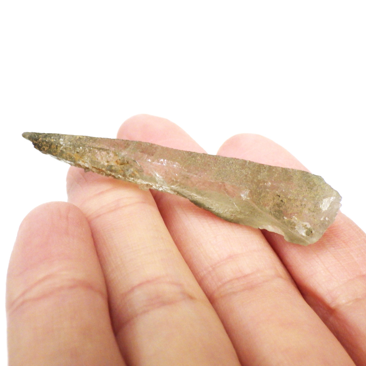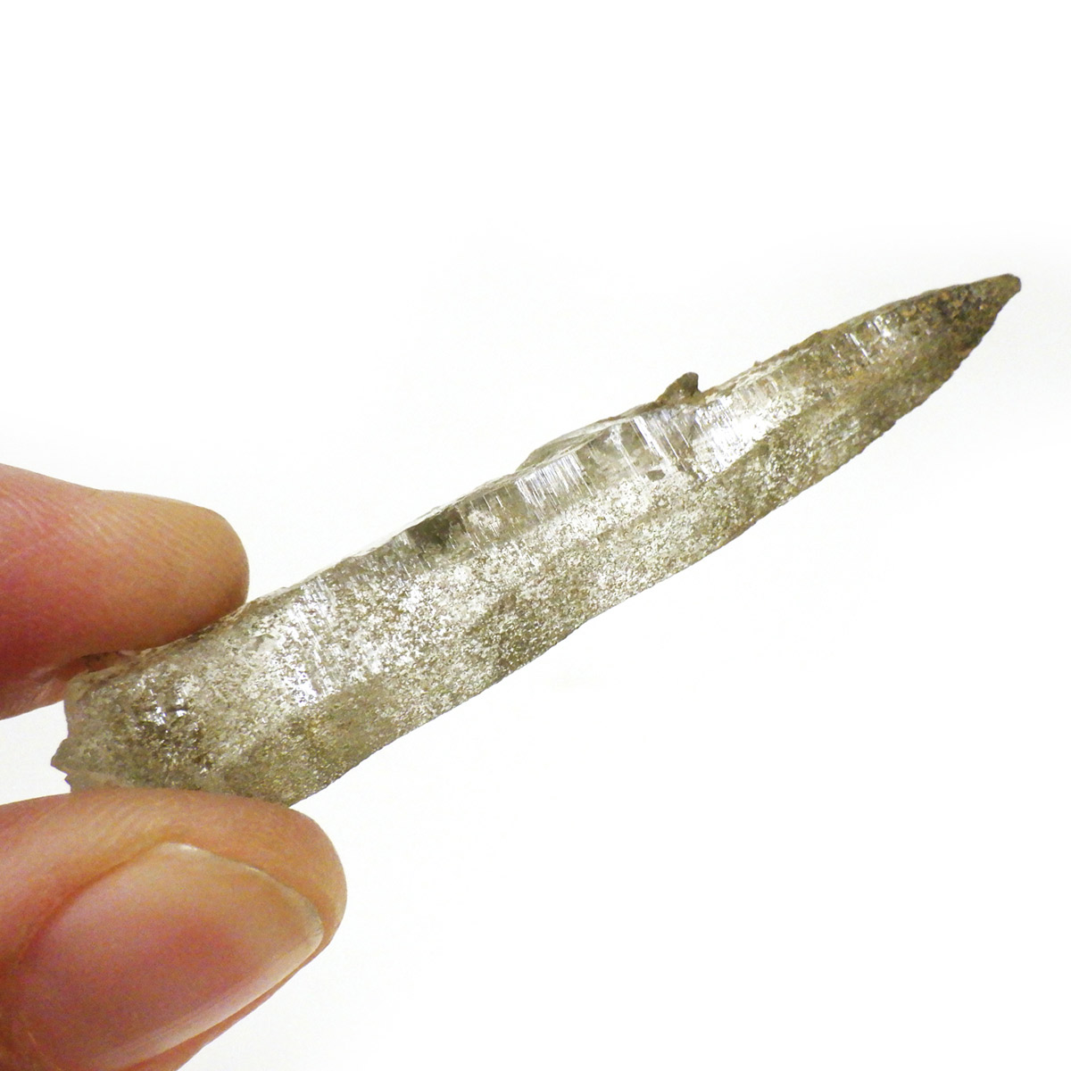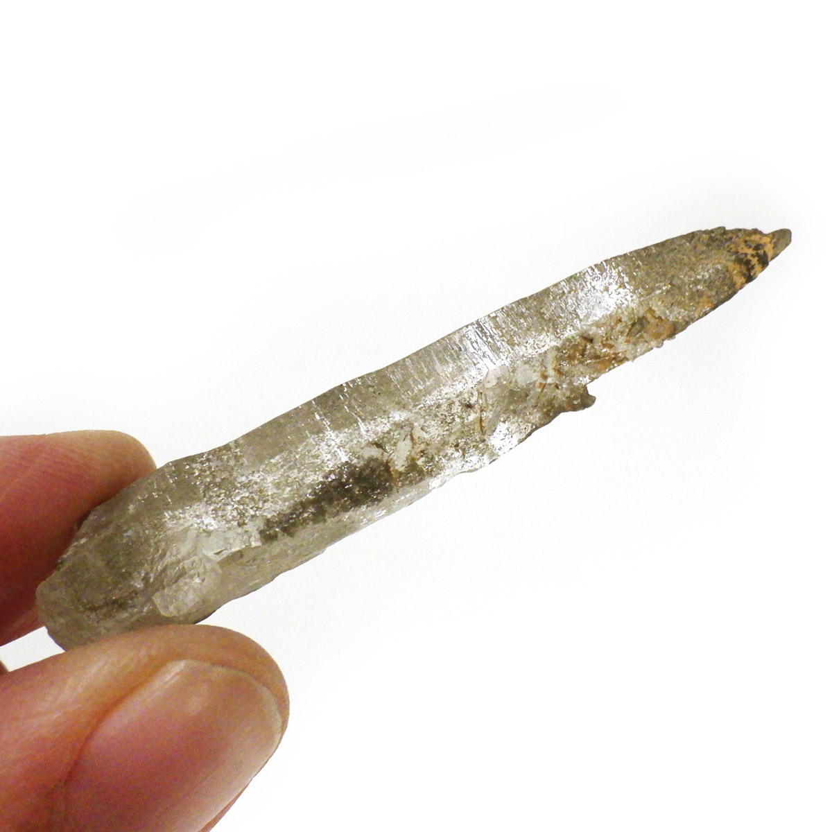 ネパールのガネーシュヒマール産水晶は「ぬめり」と表現される、水にぬれたような独特な光沢が特長です。ガネーシュヒマールとは、ネパール東端に位置する山の名前です。透明度も大変高く、クッキリと背景が透けて見えます。表面にはバーコード状の成長線が入っています。透明の結晶は本当に美しいです。エッジの効いたシャープな姿も魅力的です。