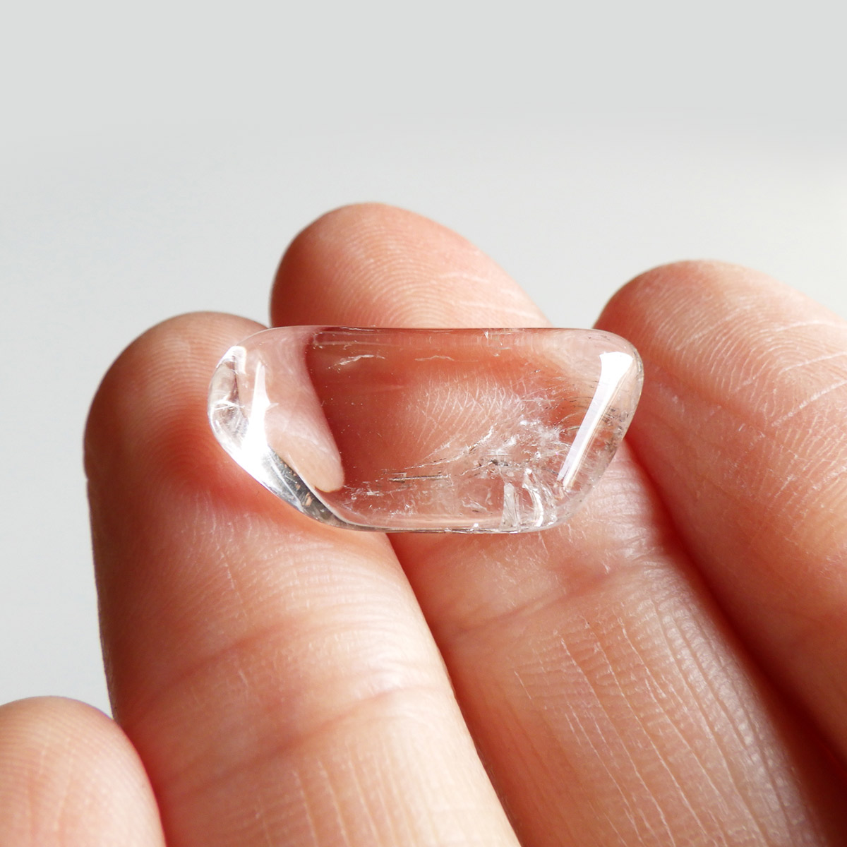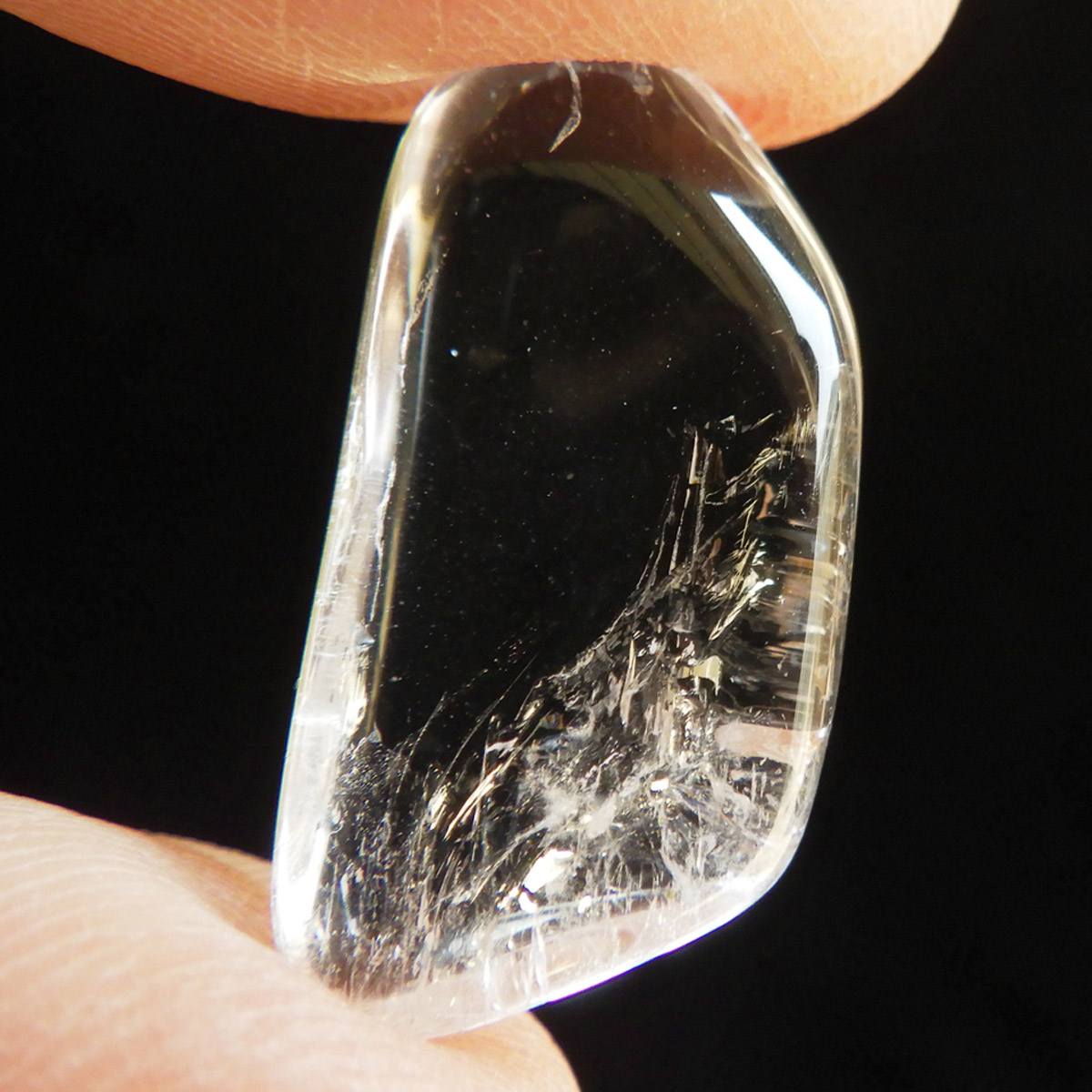 メキシコ産、ダンビュライトのタンブルです。 ダンビュライトはダイヤモンドの代用品として使われることもある石で、結晶の形はトパーズそっくりです。透明度と輝きは美しいの一言。レインボーも含まれ、基本的に透明ですが、僅かにほんのりとピンク色をしています。小さいながらも、心を奪われる魅力的なタンブルです。