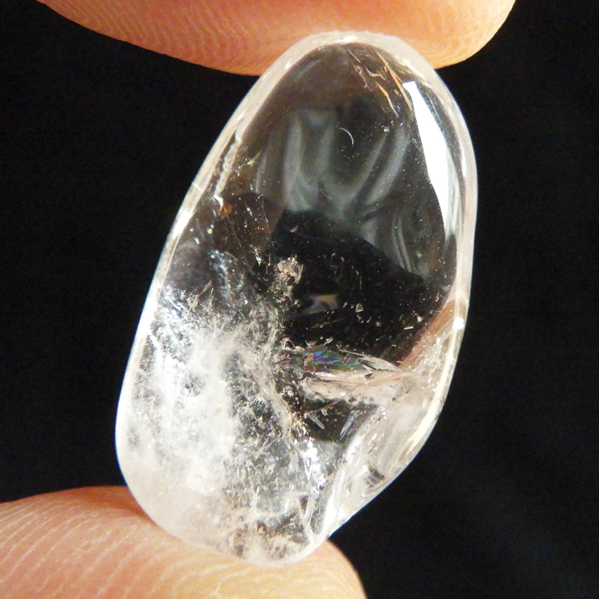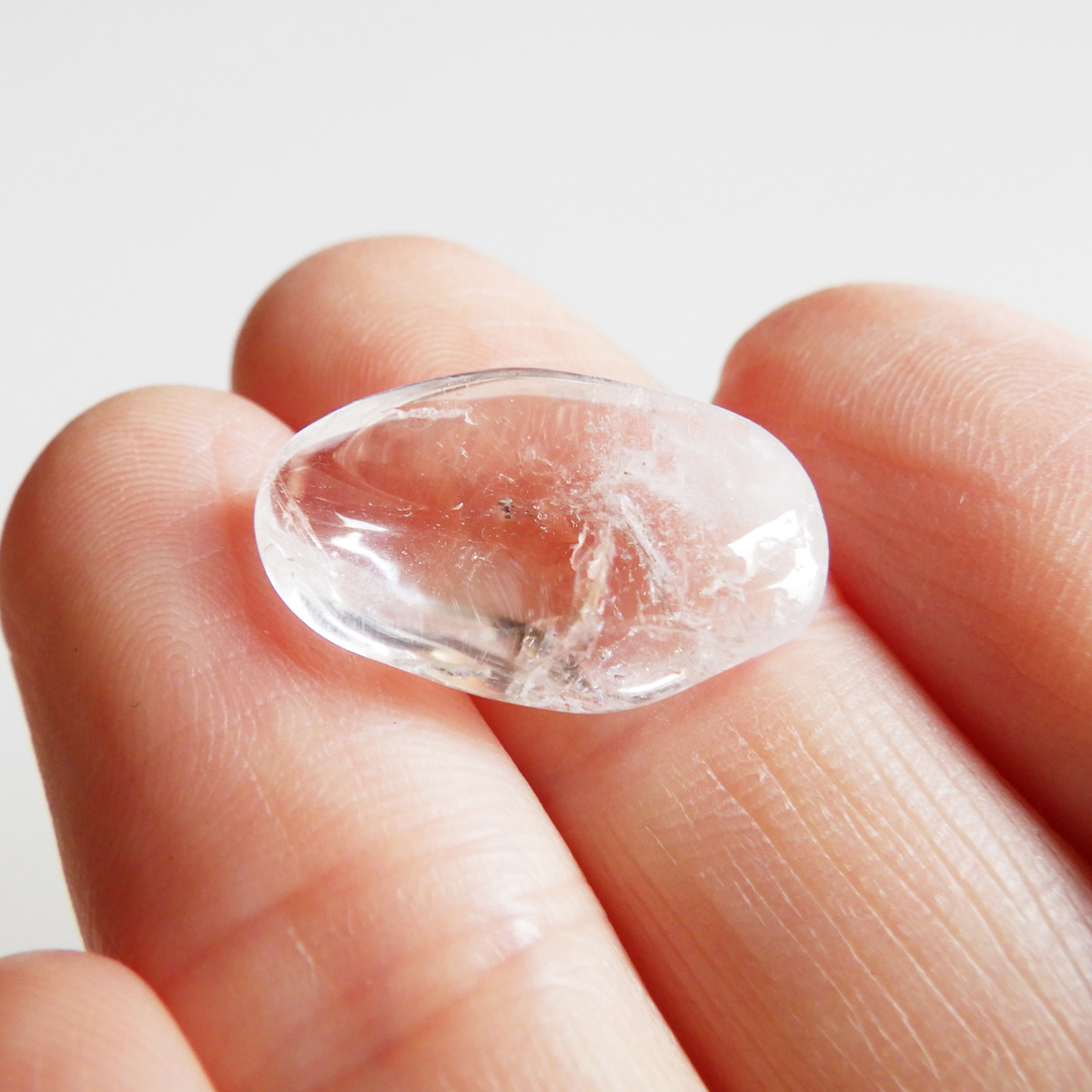 メキシコ産、ダンビュライトのタンブルです。 ダンビュライトはダイヤモンドの代用品として使われることもある石で、結晶の形はトパーズそっくりです。透明度と輝きは美しいの一言。レインボーも含まれ、基本的に透明ですが、僅かにほんのりとピンク色をしています。小さいながらも、心を奪われる魅力的なタンブルです。