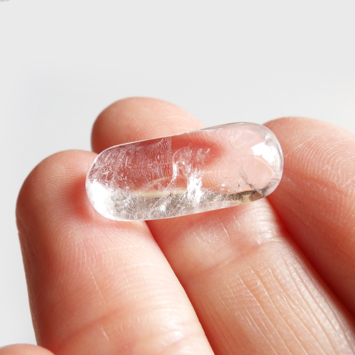 メキシコ産、ダンビュライトのタンブルです。 ダンビュライトはダイヤモンドの代用品として使われることもある石で、結晶の形はトパーズそっくりです。透明度と輝きは美しいの一言。レインボーも含まれ、基本的に透明ですが、僅かにほんのりとピンク色をしています。小さいながらも、心を奪われる魅力的なタンブルです。