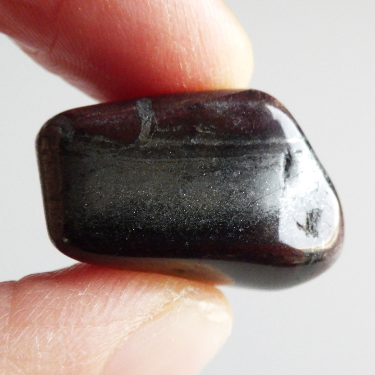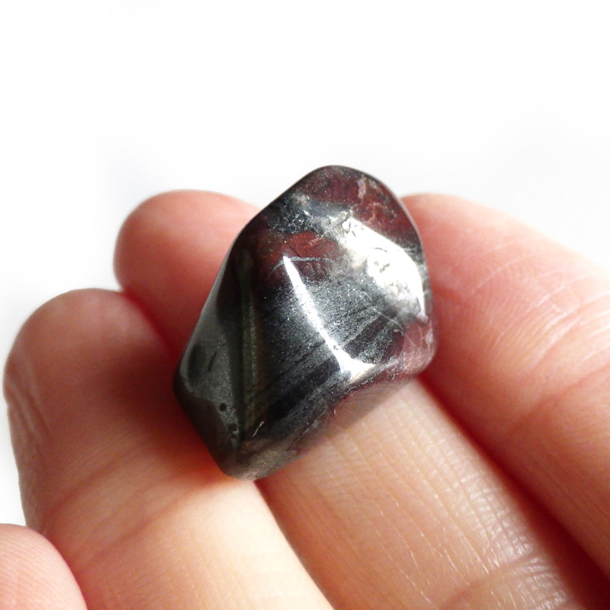 アメリカ・ミシガン州からカナダのオンタリオ州にかけて五大湖地域の縞状鉄鉱層から産出するヘマタイトレッドジャスパーのタンブルです。レッドジャスパーの赤は元々ヘマタイト(赤鉄鉱)によるものです。五大湖の周辺では粒状鉄鉱層といわれており、スペキュラーヘマタイトのようにキラキラとしたヘマタイトが産出します。27億年前の地層の石ということでアンセストラライト(祖先石)という愛称でも呼ばれております。クリムゾンレッドとシルバーの縞模様が面白く、キラキラとしたヘマタイトも魅力的です。
