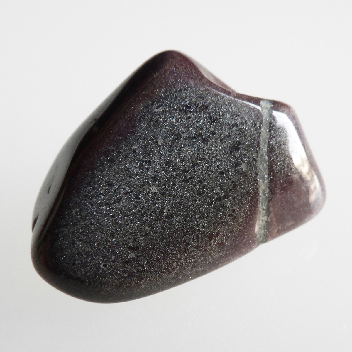 アメリカ・ミシガン州からカナダのオンタリオ州にかけて五大湖地域の縞状鉄鉱層から産出するヘマタイトレッドジャスパーのタンブルです。レッドジャスパーの赤は元々ヘマタイト(赤鉄鉱)によるものです。五大湖の周辺では粒状鉄鉱層といわれており、スペキュラーヘマタイトのようにキラキラとしたヘマタイトが産出します。27億年前の地層の石ということでアンセストラライト(祖先石)という愛称でも呼ばれております。クリムゾンレッドとシルバーの縞模様が面白く、キラキラとしたヘマタイトも魅力的です。
