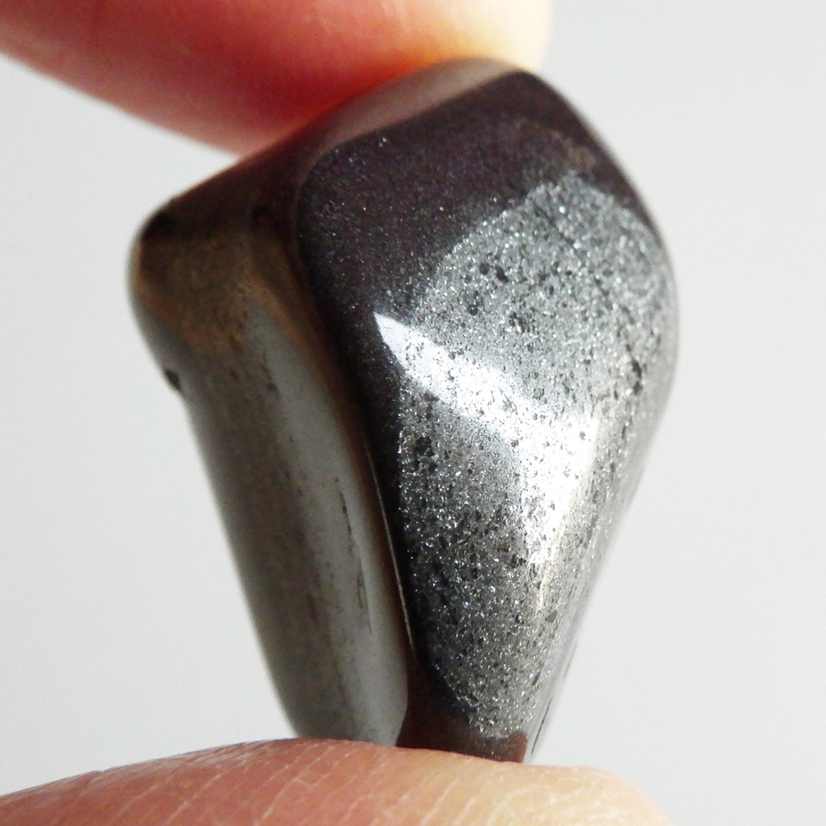 アメリカ・ミシガン州からカナダのオンタリオ州にかけて五大湖地域の縞状鉄鉱層から産出するヘマタイトレッドジャスパーのタンブルです。レッドジャスパーの赤は元々ヘマタイト(赤鉄鉱)によるものです。五大湖の周辺では粒状鉄鉱層といわれており、スペキュラーヘマタイトのようにキラキラとしたヘマタイトが産出します。27億年前の地層の石ということでアンセストラライト(祖先石)という愛称でも呼ばれております。クリムゾンレッドとシルバーの縞模様が面白く、キラキラとしたヘマタイトも魅力的です。