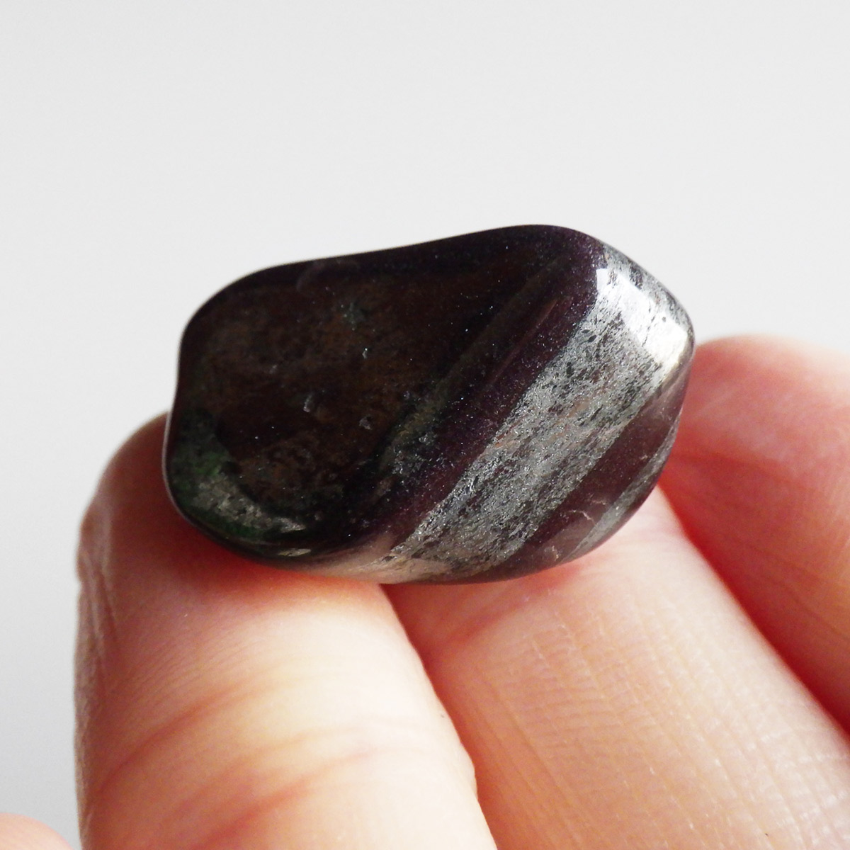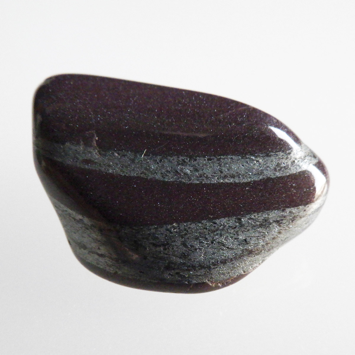 アメリカ・ミシガン州からカナダのオンタリオ州にかけて五大湖地域の縞状鉄鉱層から産出するヘマタイトレッドジャスパーのタンブルです。レッドジャスパーの赤は元々ヘマタイト(赤鉄鉱)によるものです。五大湖の周辺では粒状鉄鉱層といわれており、スペキュラーヘマタイトのようにキラキラとしたヘマタイトが産出します。27億年前の地層の石ということでアンセストラライト(祖先石)という愛称でも呼ばれております。クリムゾンレッドとシルバーの縞模様が面白く、キラキラとしたヘマタイトも魅力的です。