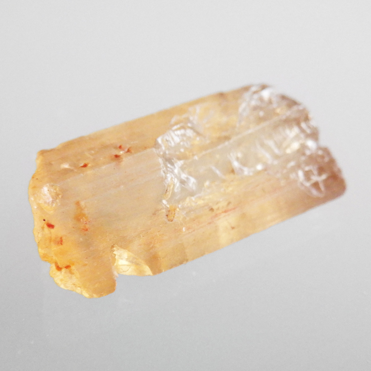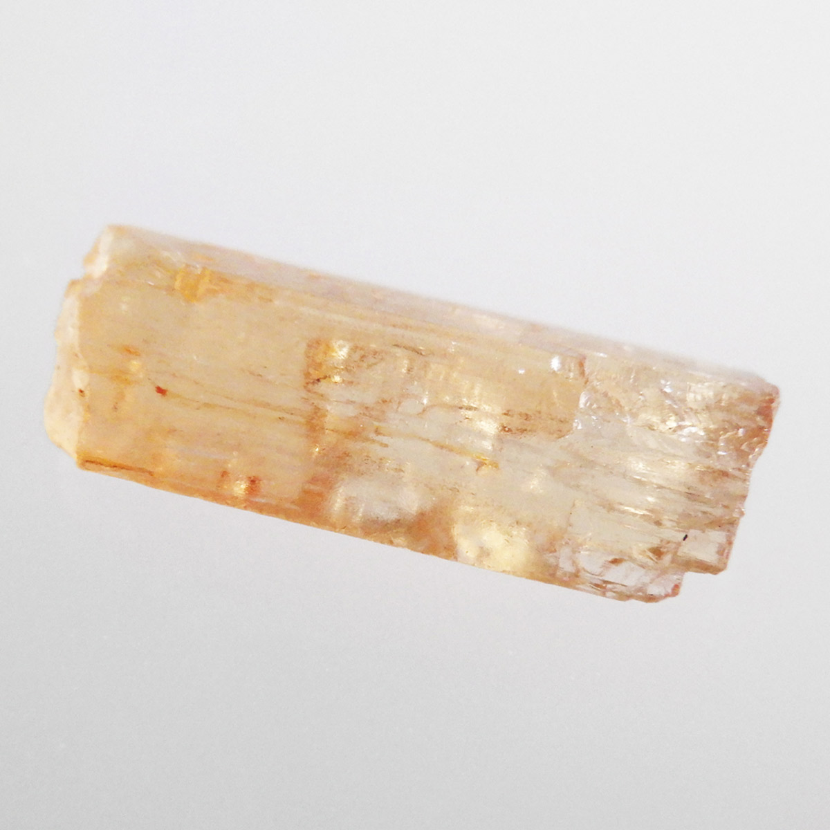 ブラジル産のインペリアルトパーズ結晶原石です。品質の良いものを厳選しております。透明度が高く、表面に縦の条線がはっきりと見られます。結晶は優しいオレンジーカラー、角度によってはキラりと光輝きます。