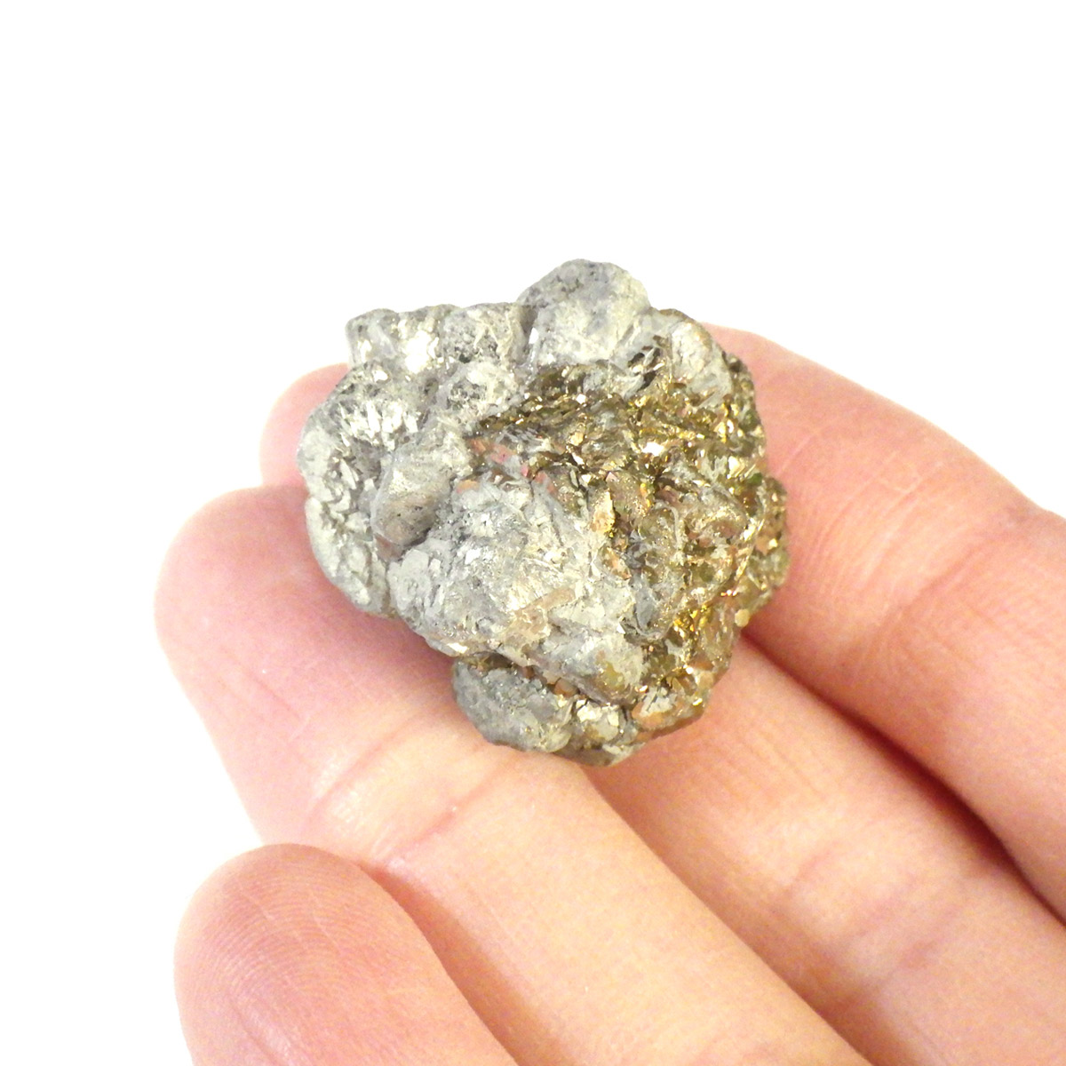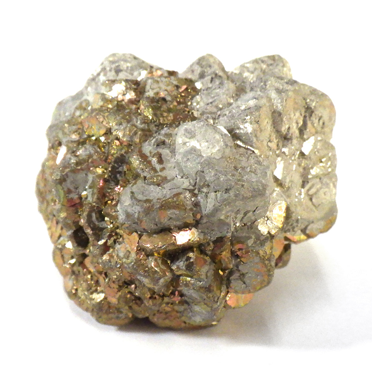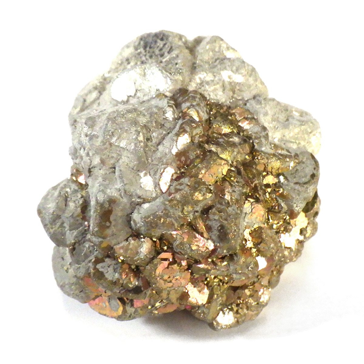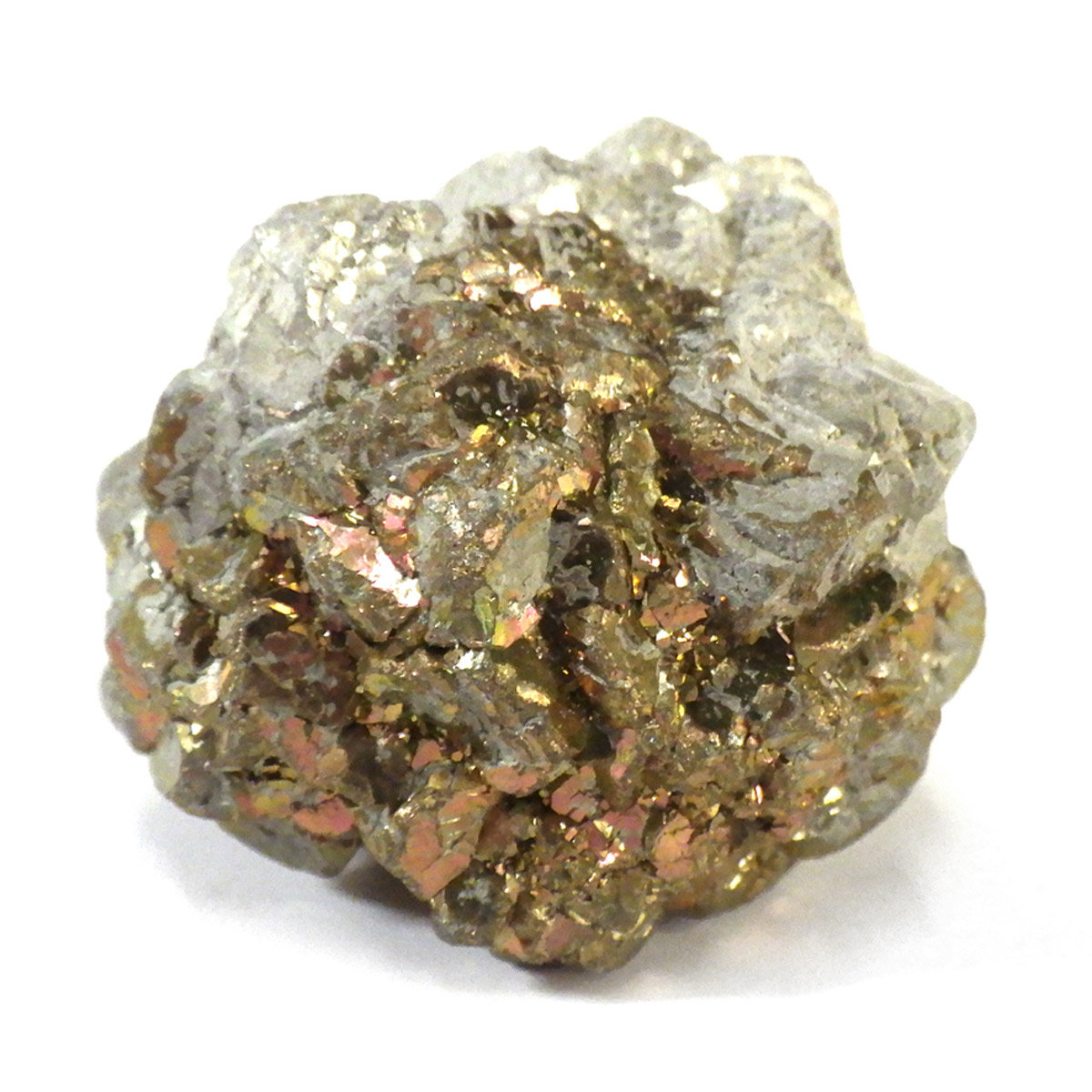 マダガスカル産マーカサイト原石、ボール型です。白銅鉱であるマーカサイトに含まれる銅分が酸化して、グリーンやレッドの金属光沢が浮かぶ、とても神秘的なストーンです。ボール型をしたものは珍しく、シャーマンストーンやボージーストーンなどの前身とも考えられています。
