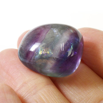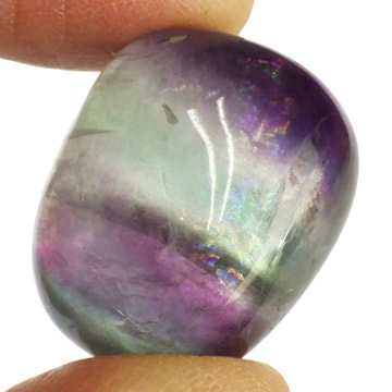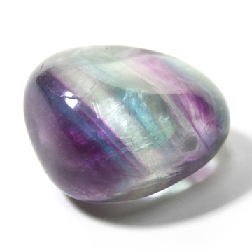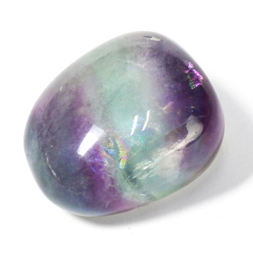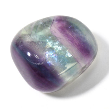 チャイナ産フローライトのタンブルです。 透明度が高く、ブルーをはじめいろいろなカラーの色彩が見られます。蛍石の名前の通り、様々な角度からその美しさを楽しむことができます。光にかざして透かすと、カラーが複雑に入り乱れており、そのグラデーションが大変きれいです。