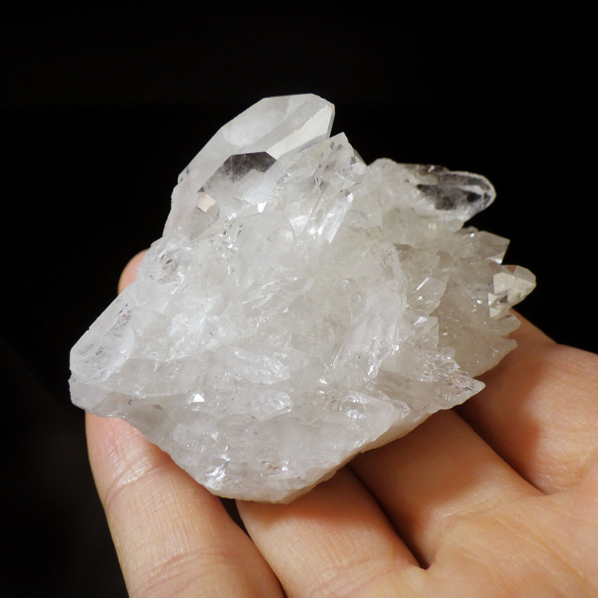 非常に透明度の高い大小様々な結晶が複雑に絡み合い、見る角度によって様々な表情を見せる大変美しいクラスターです。