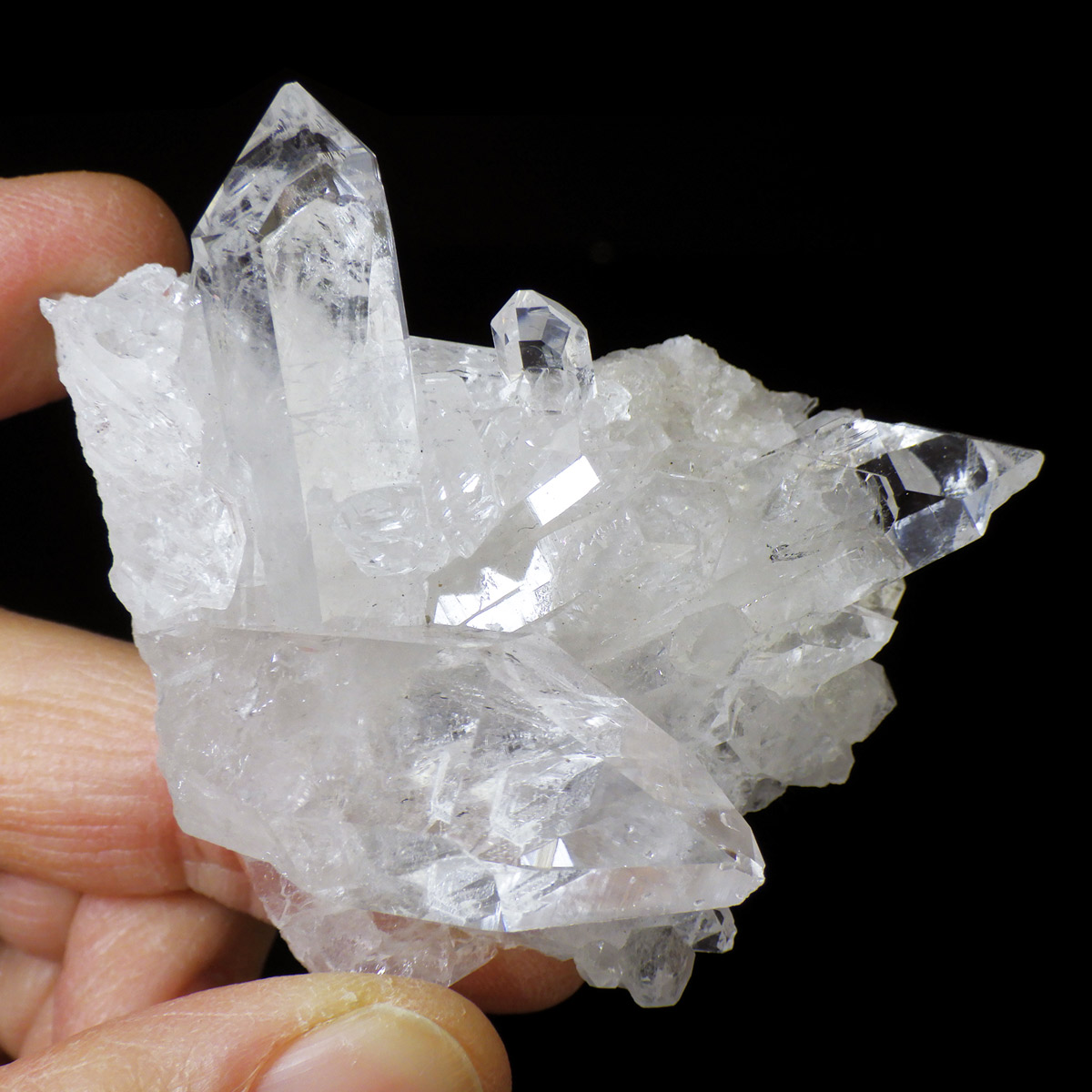非常に透明度の高い大小様々な結晶が複雑に絡み合い、見る角度によって様々な表情を見せる大変美しいクラスターです。