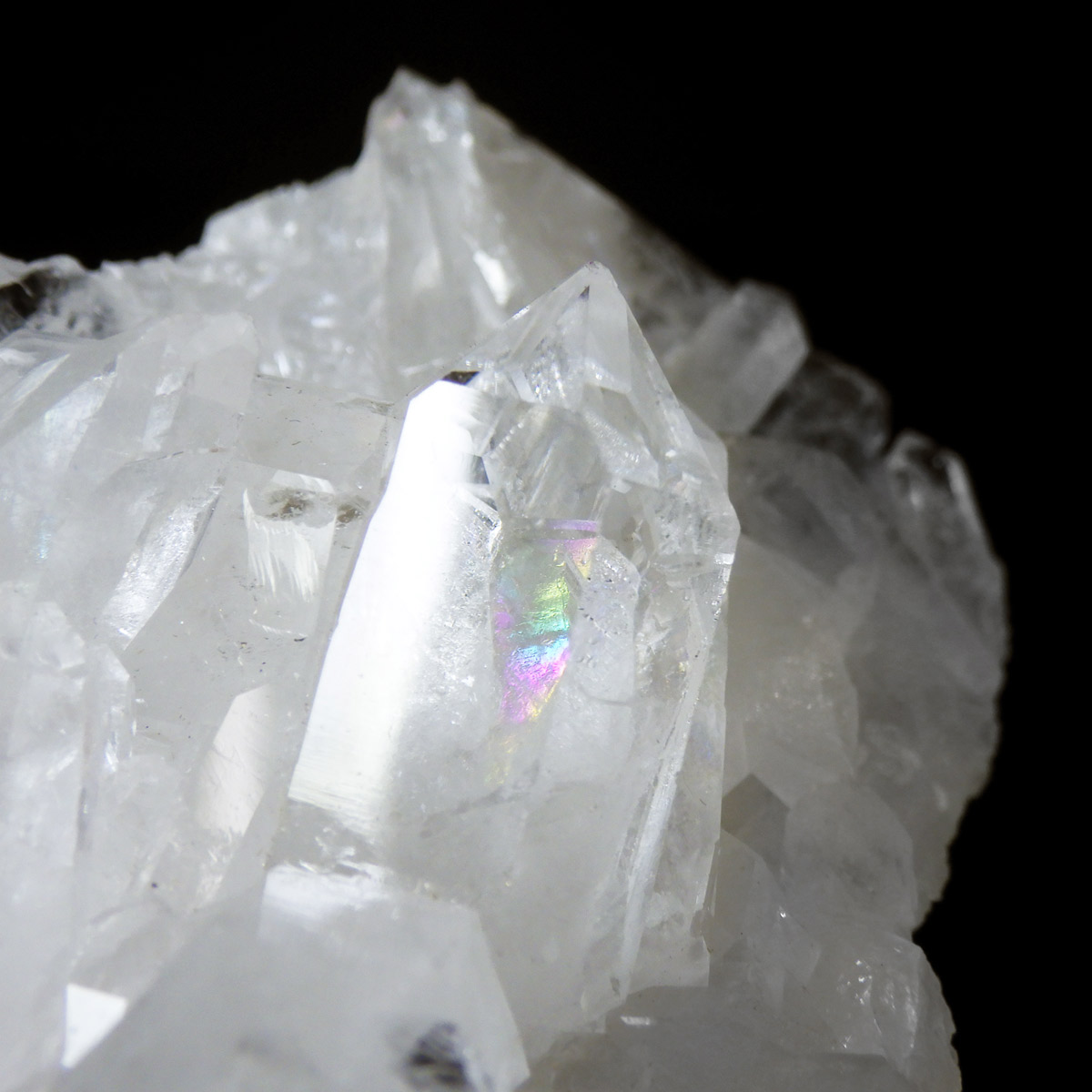 非常に透明度の高い大小様々な結晶が複雑に絡み合い、見る角度によって様々な表情を見せる大変美しいクラスターです。