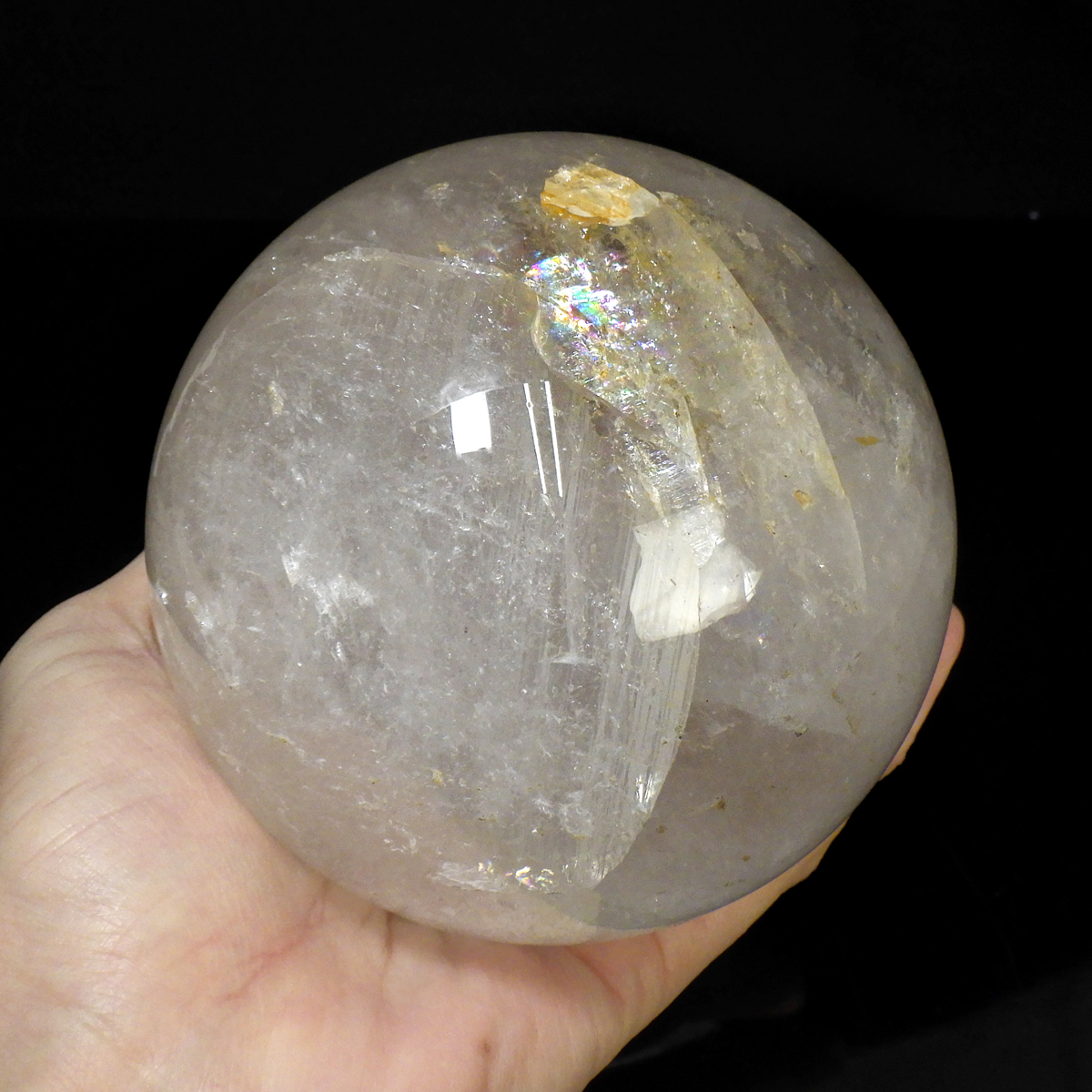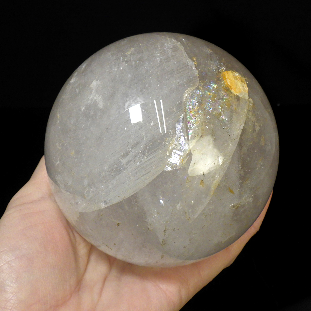 ブラジル産の天然水晶球です。 スモーキーな色合いで、レインボーが確認でき、美しい水晶丸玉です。