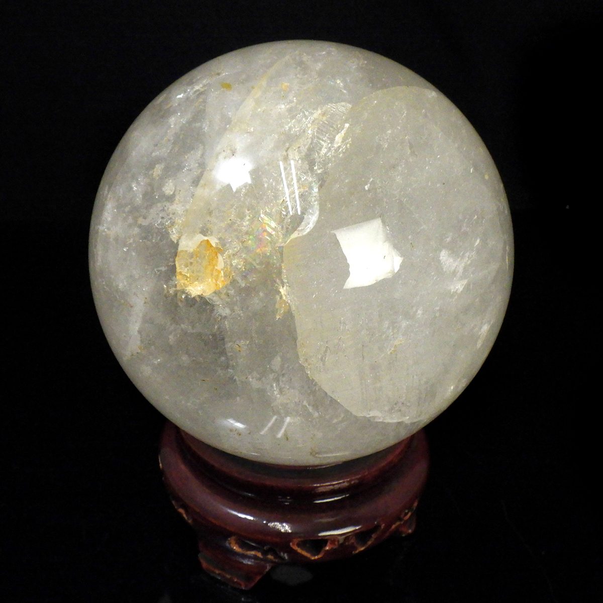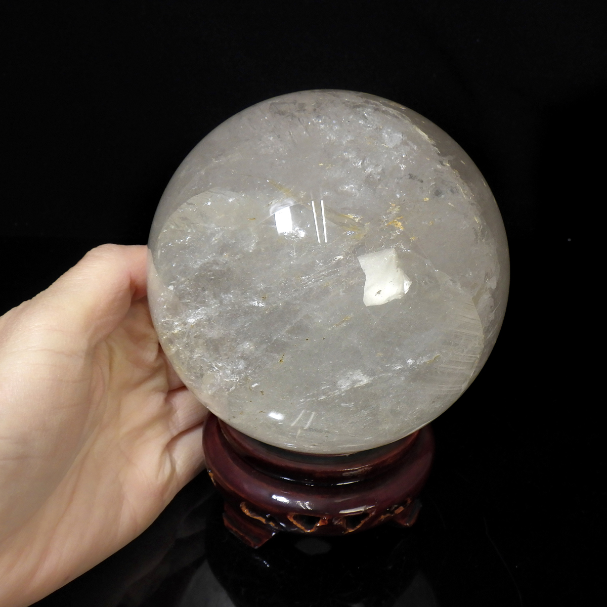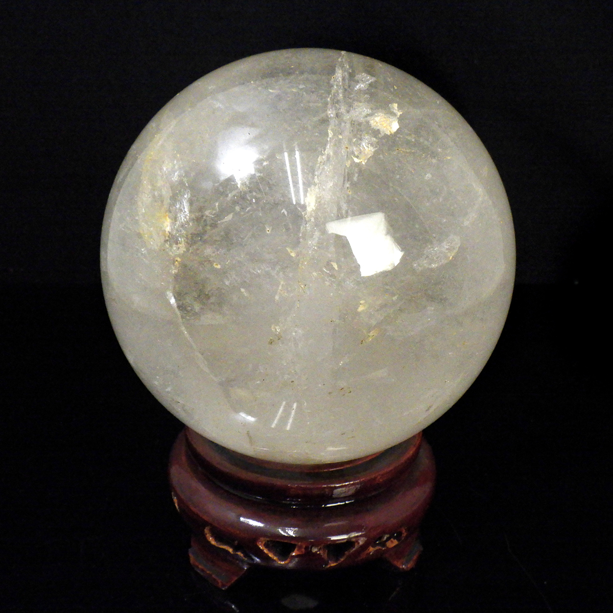 水晶球 直径100mm 丸玉 スフィア ブラジル産 木製台付き