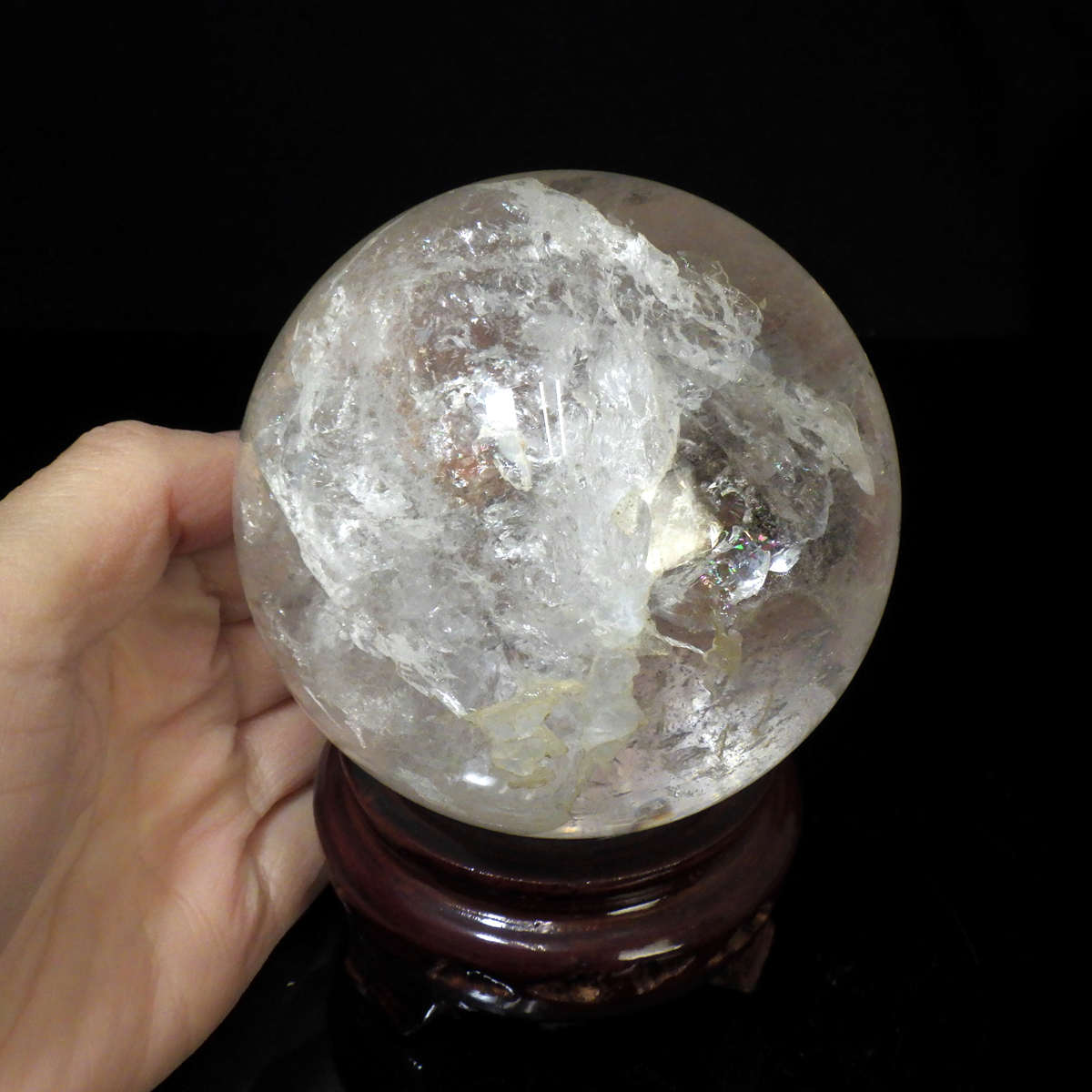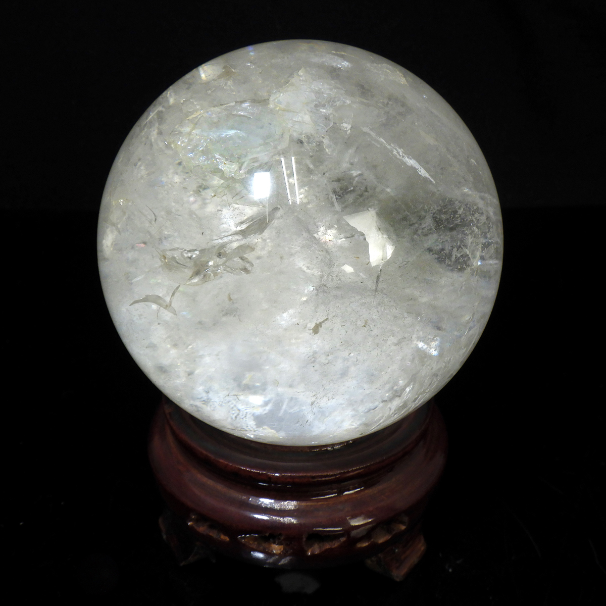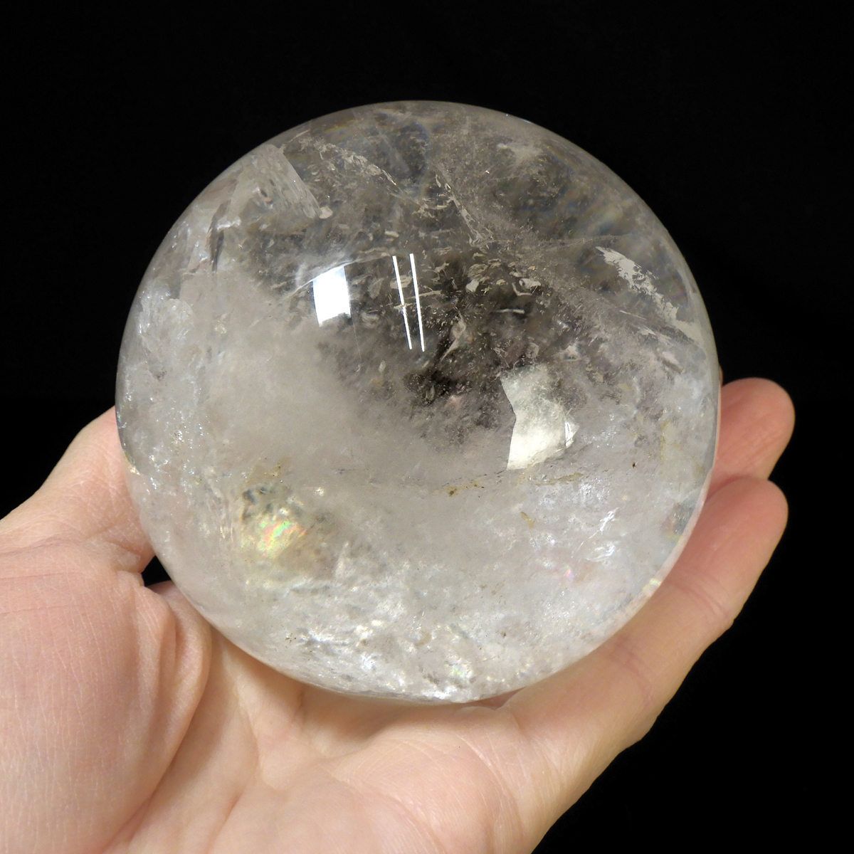 ブラジル産の天然水晶球です。 透明感が高く、はっきりとしたレインボーが確認でき、美しい水晶丸玉です。