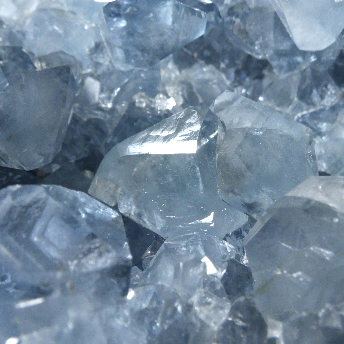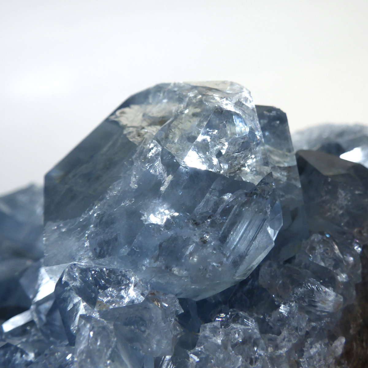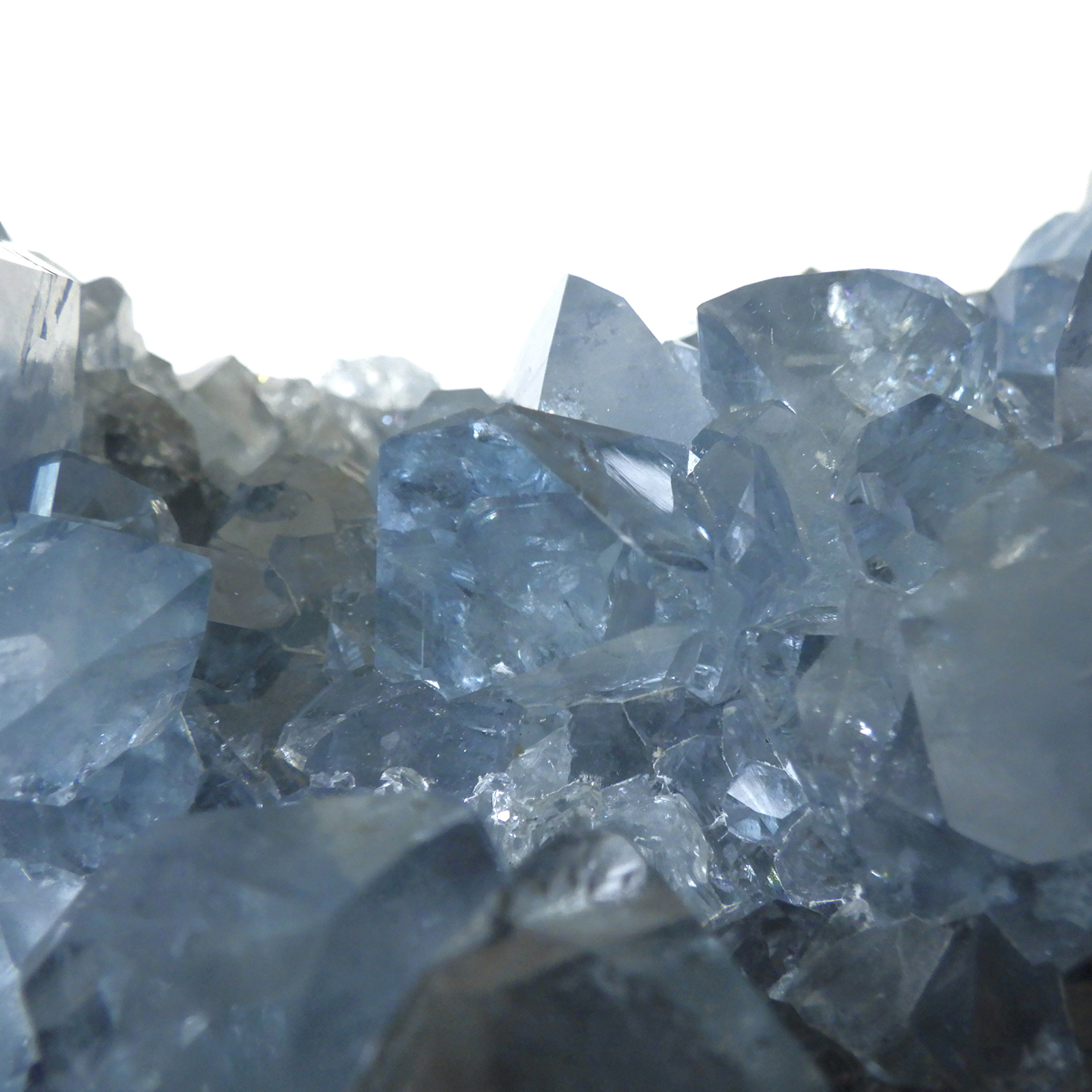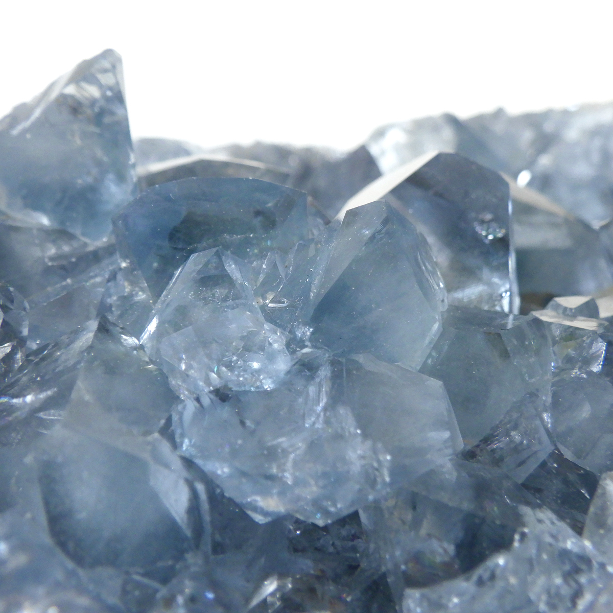 セレスタイト(天青石)母岩付きクラスターです。マダガスカル産のものは、母岩が丸みを帯びており、土台が白っぽいのが特徴です。 土台から突き出た、透明感あるブルーの結晶は非常に魅力的です。結晶が大きく艶のある濃い色が特徴です。
