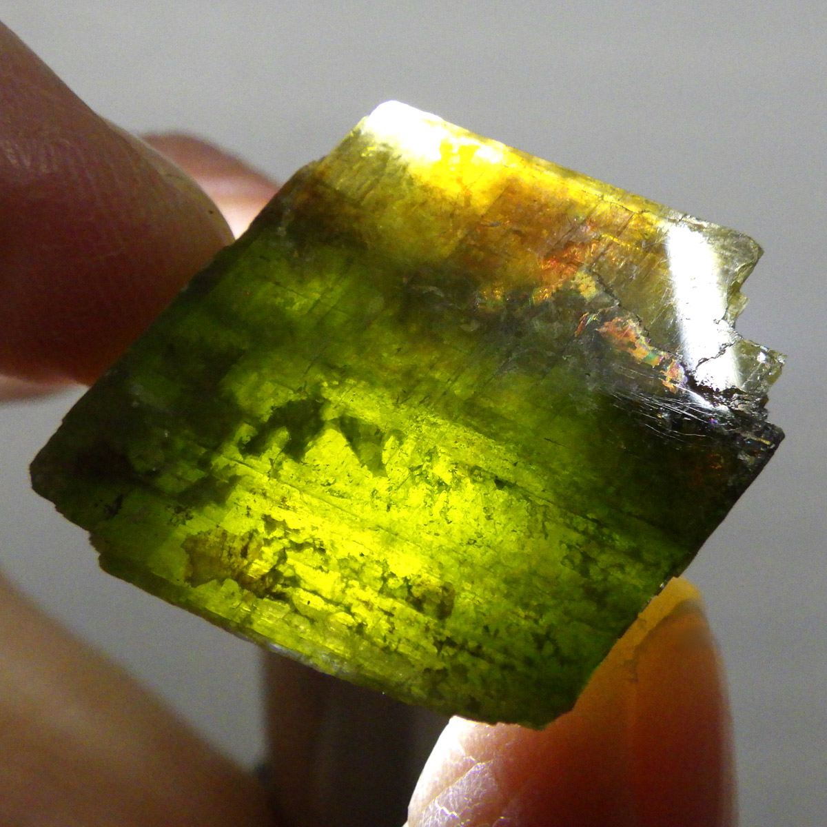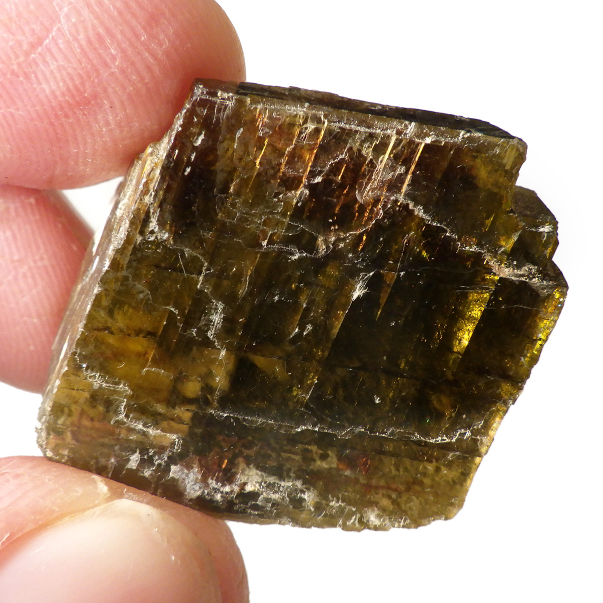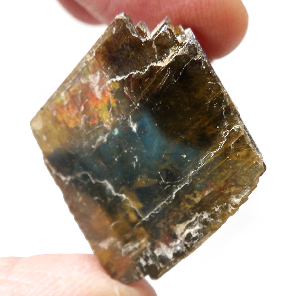 ブラジル・ミナスジェライス州産のシデライト原石です。和名は菱鉄鉱。菱鉄鉱は方解石と同じ結晶構造を持つ菱面体の結晶になります。硬度は比較的低く劈開性があります。色は黄褐色から暗褐色でガラス光沢を示す部分も見られます。表面に僅かながらレインボーのような虹の波紋も見られます。ライトなどで光に透かすとイエローが際立ちとてもきれいです。