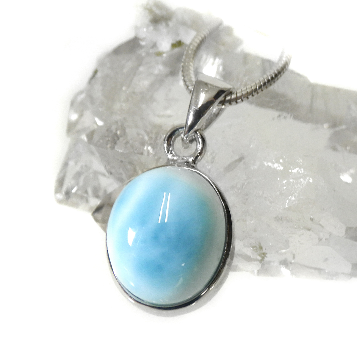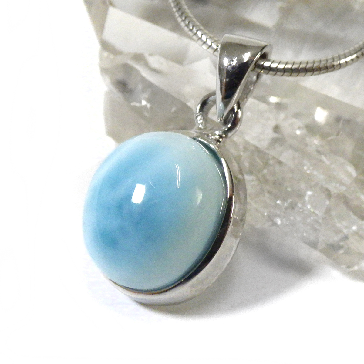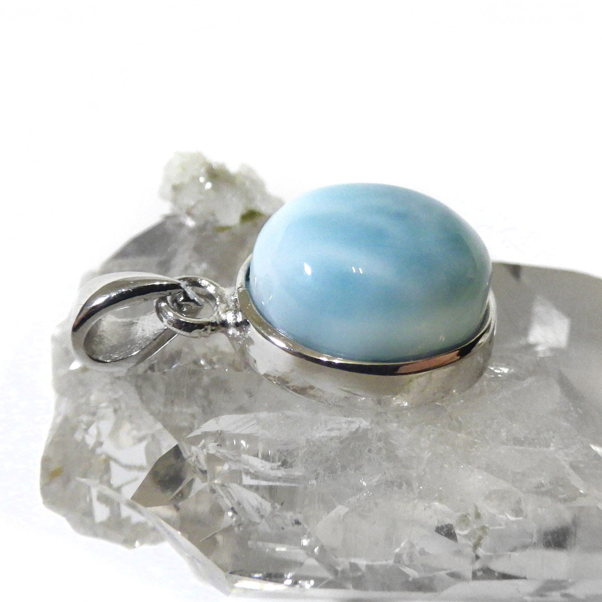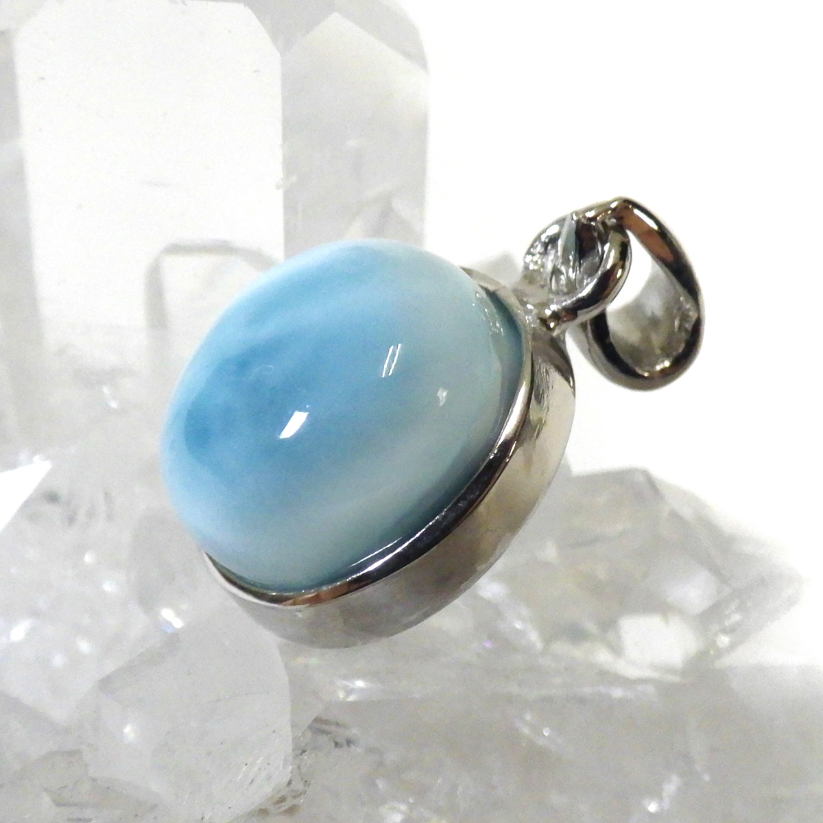 ドミニカ共和国産の高品質ラリマーを使用したペンダントトップです。カリブ海の景色をそのまま石にしてしまったかのような美しいブルーの模様で、濁りの少ないラリマーを使用しております。