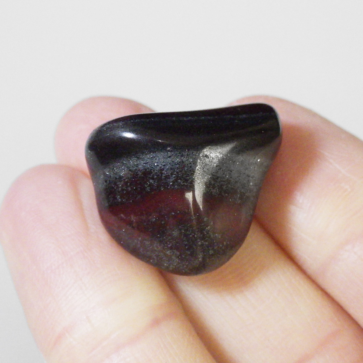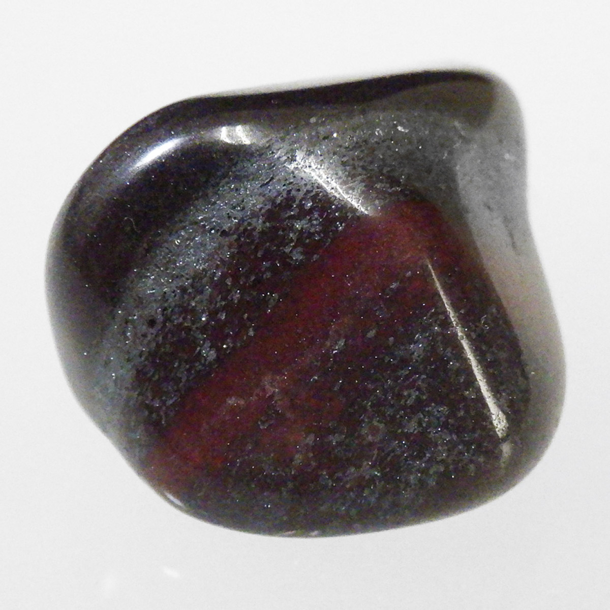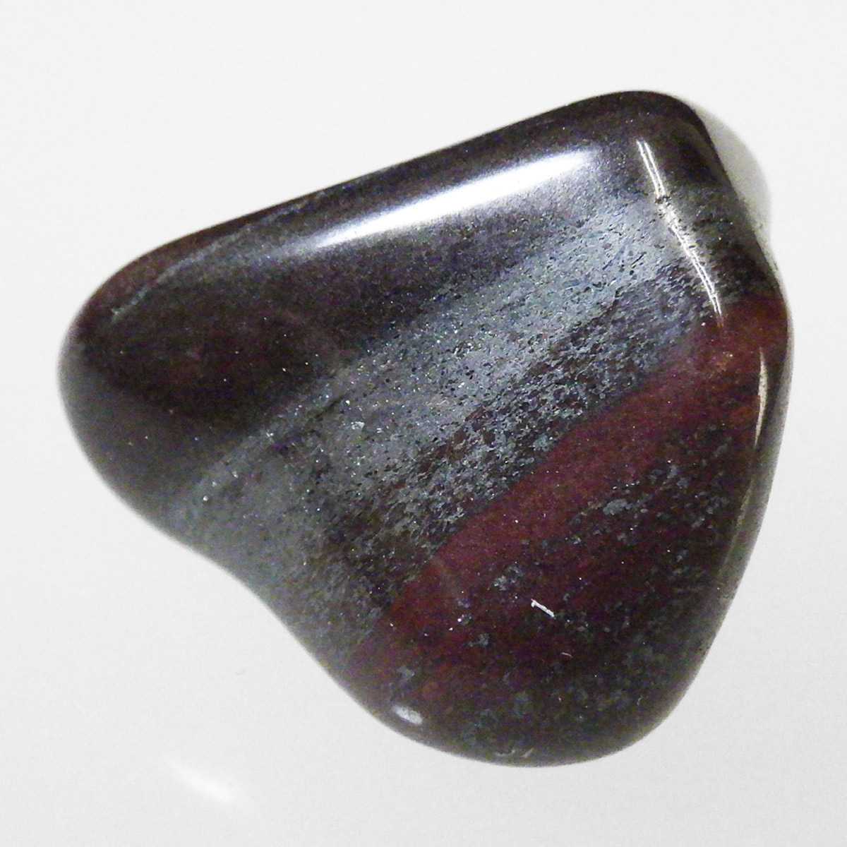 アメリカ・ミシガン州からカナダのオンタリオ州にかけて五大湖地域の縞状鉄鉱層から産出するヘマタイトレッドジャスパーのタンブルです。レッドジャスパーの赤は元々ヘマタイト(赤鉄鉱)によるものです。五大湖の周辺では粒状鉄鉱層といわれており、スペキュラーヘマタイトのようにキラキラとしたヘマタイトが産出します。27億年前の地層の石ということでアンセストラライト(祖先石)という愛称でも呼ばれております。クリムゾンレッドとシルバーの縞模様が面白く、キラキラとしたヘマタイトも魅力的です。