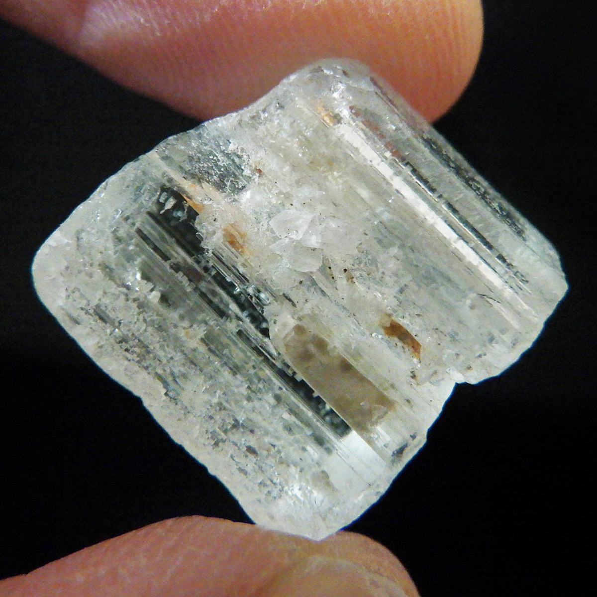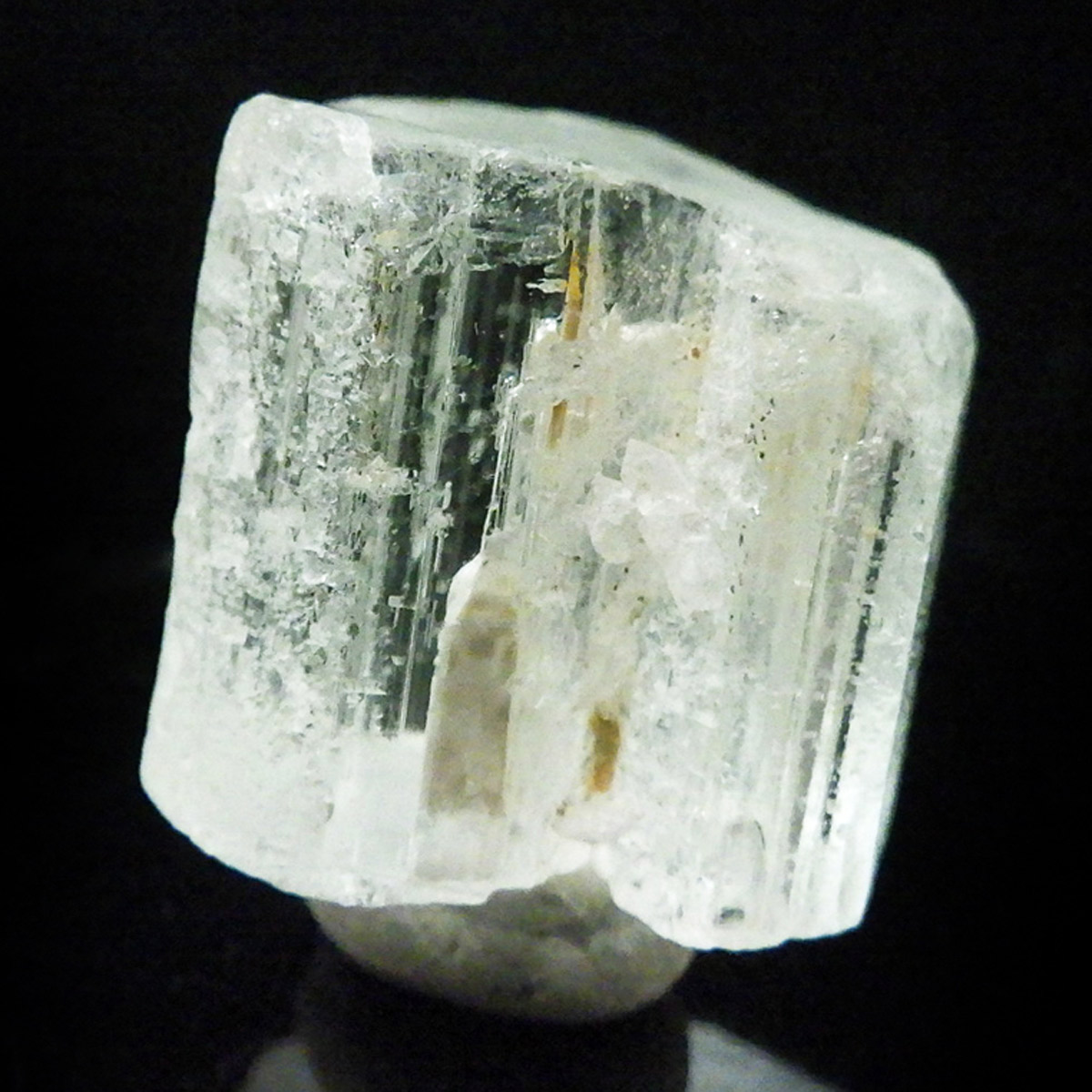 ブラジル産のアクアマリン原石です。 鉱物学上ではベリル、和名では緑柱石に分類され、混入元素によって多彩に変化します。エメラルドやヘリオドール、モルガナイトと同じ種類で、黄褐色~緑色、淡青色、帯黄色などがあります。花崗岩質岩やそのペグマタイト脈、雲母片岩、片麻岩の副成分鉱物として産出します。欧米ではアクアマリンを「天使の石」と呼ぶそうです。