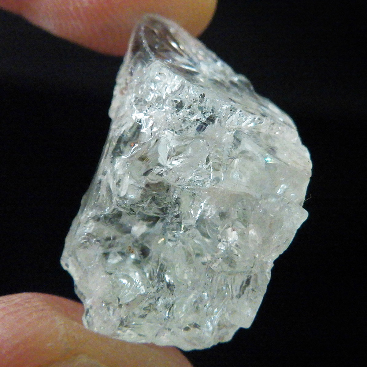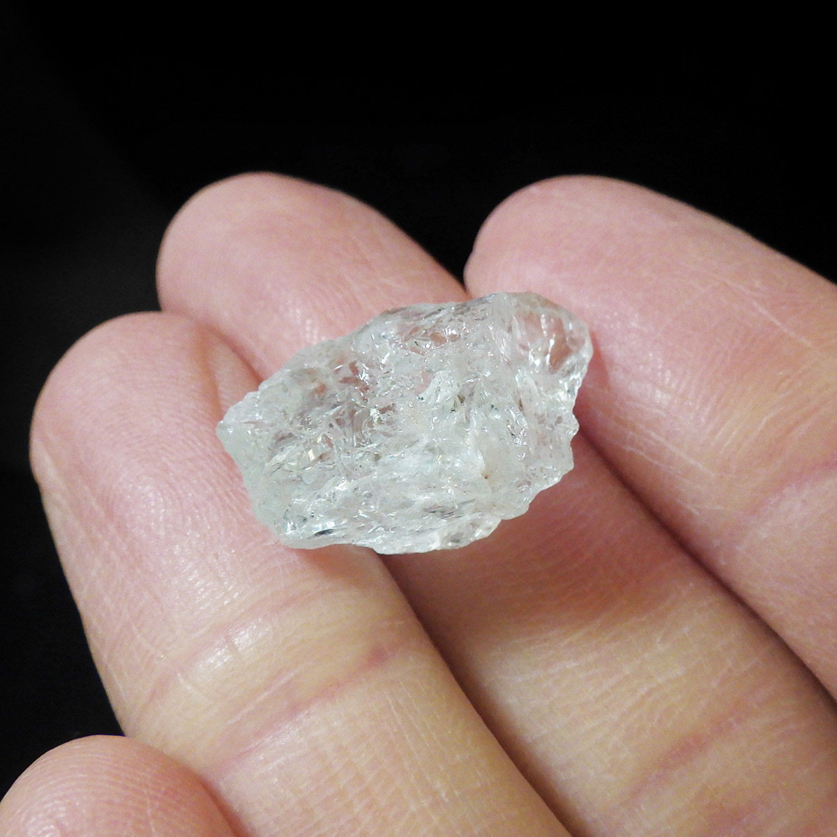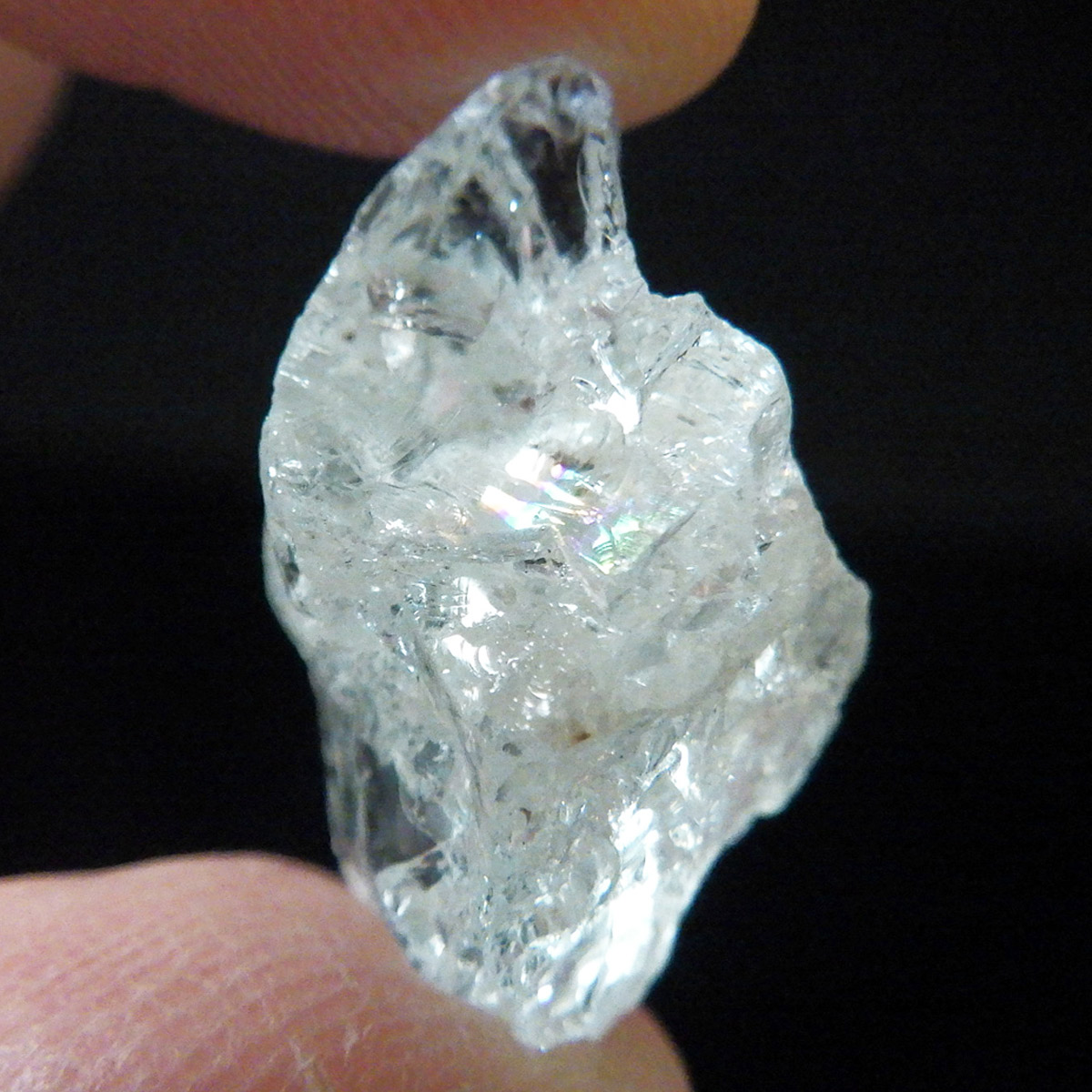 ブラジル産のアクアマリン原石です。透明度が高く、レインボーが見られます。淡いブルーの発色も見事で癒されます。 鉱物学上ではベリル、和名では緑柱石に分類され、混入元素によって多彩に変化します。エメラルドやヘリオドール、モルガナイトと同じ種類で、黄褐色~緑色、淡青色、帯黄色などがあります。花崗岩質岩やそのペグマタイト脈、雲母片岩、片麻岩の副成分鉱物として産出します。欧米ではアクアマリンを「天使の石」と呼ぶそうです。