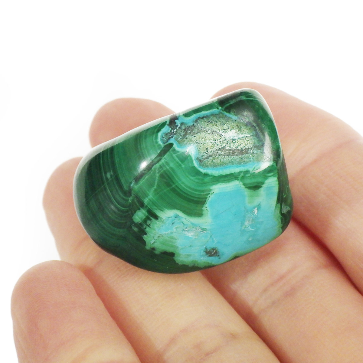 クリソコラは、何事に対してもしっかりと地に足を着けた実りあるものになるような生活ができるよう、サポートしてくれる石とされています。仕事や恋愛、幸せな家庭生活や安産のお守りとしても人気です。マラカイトは古代エジプトの女王クレオパトラが、この石を粉にしてアイシャドーにしていたという伝説の石です。邪眼除けの力があるとされ、昔から、否定的な力や邪気を払いのける石としてお守りや護符に使われてきました。