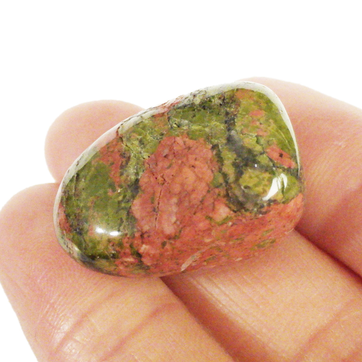 複数の石で構成されるアメリカ・ノースカロライナ州産、ユナカイトのタンブルです。