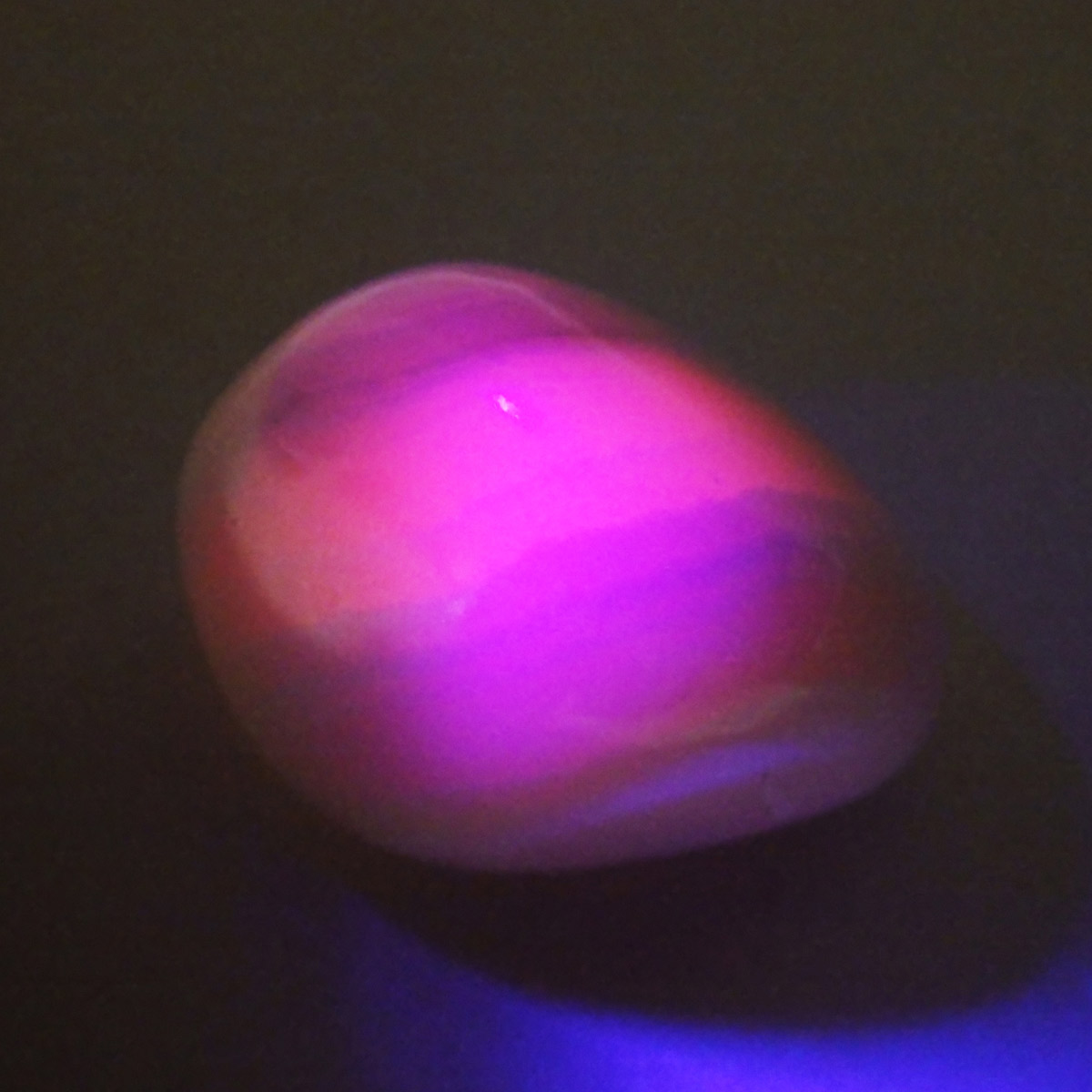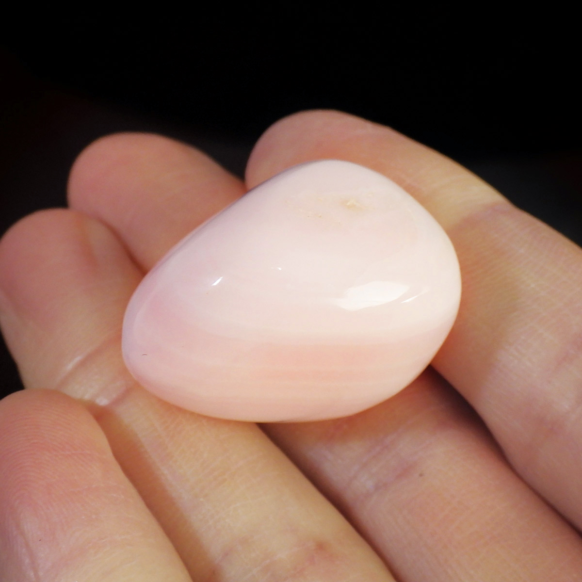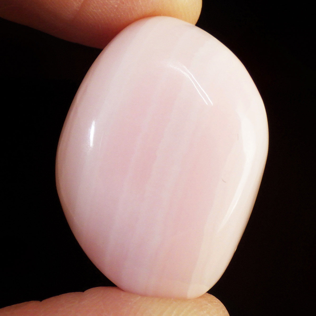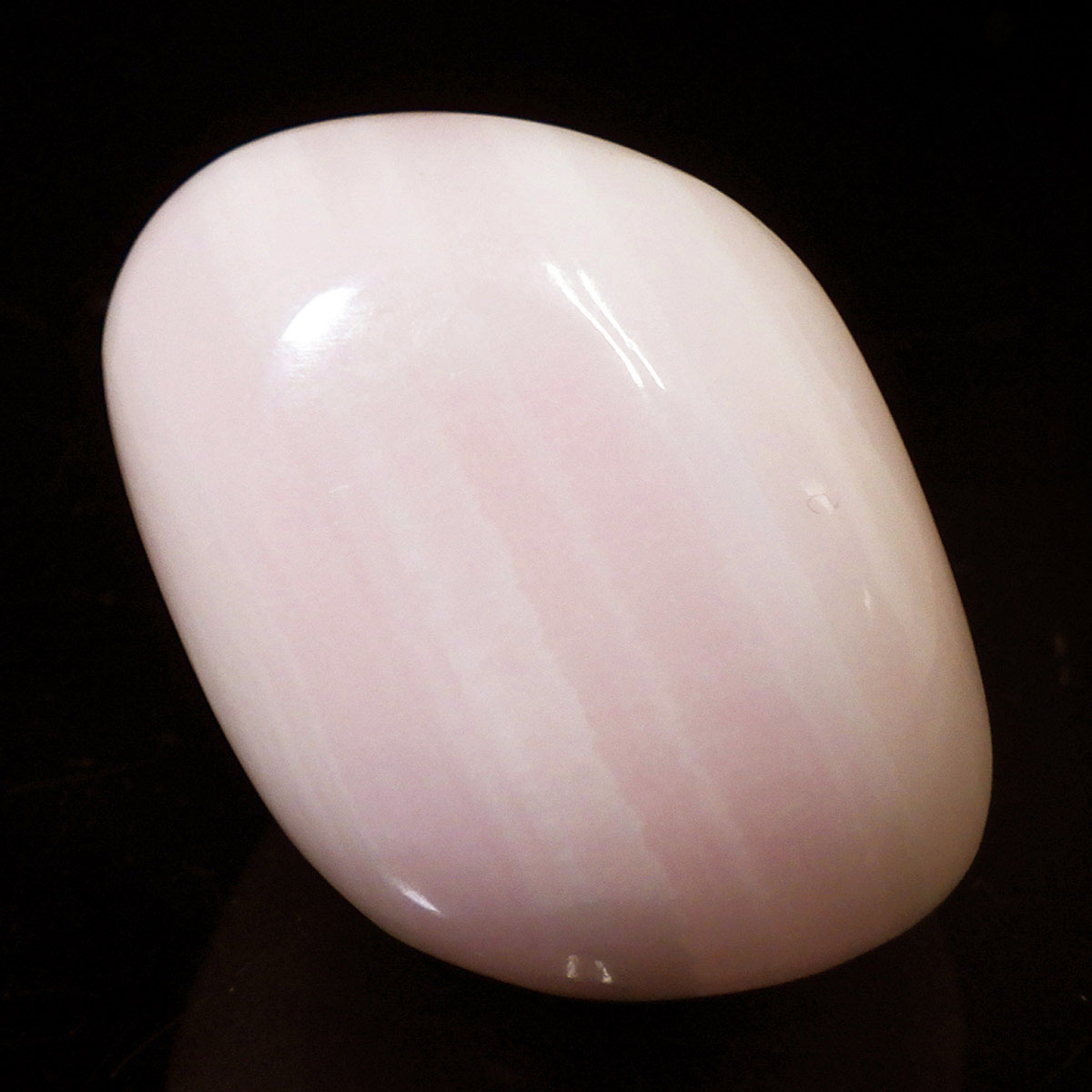 ペルー産のピンクカルサイト、タンブルです。とてもきれいでかわいらしいピンクで質も良いです。ピンクカルサイトはカルサイトの仲間です。マンガンが入っているので、淡く美しく、優しいピンク色になります。マンガンが含まれることにより、ブラックライトを当てると幻想的なピンク色に蛍光します。