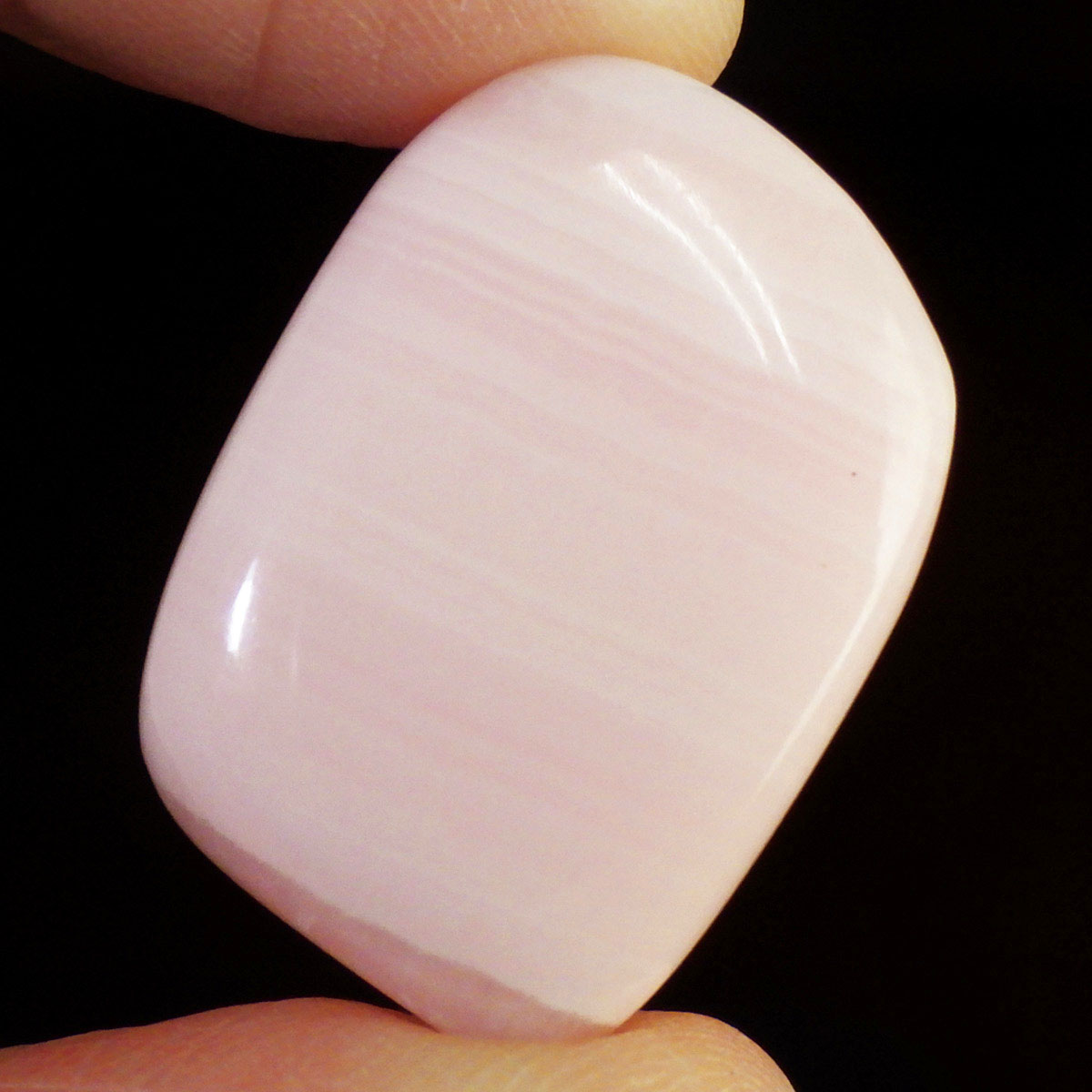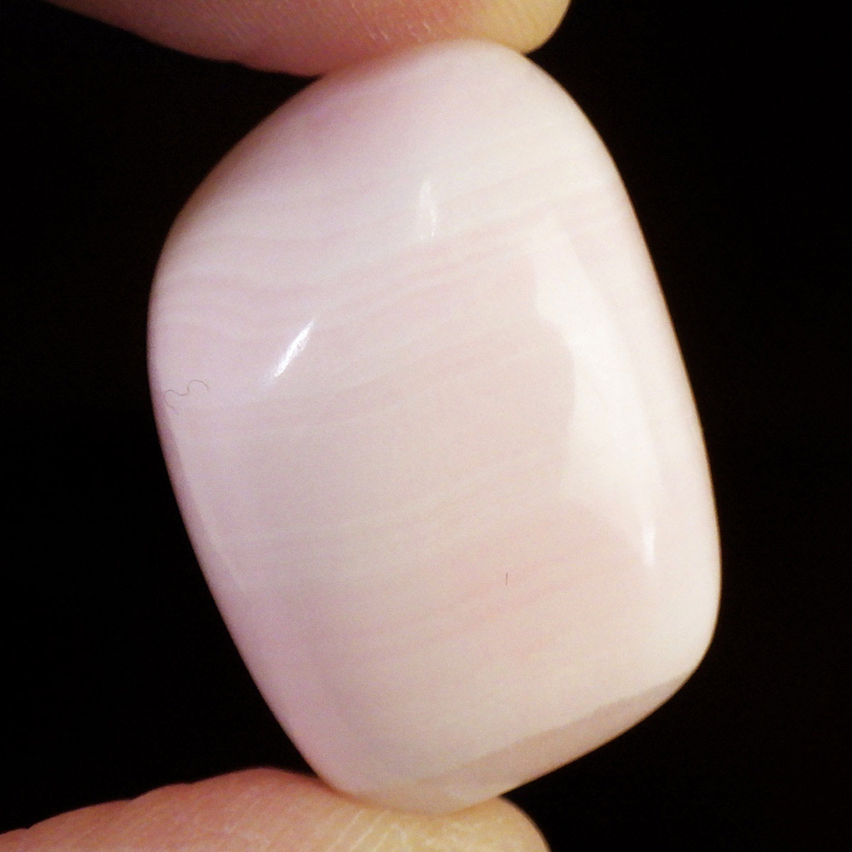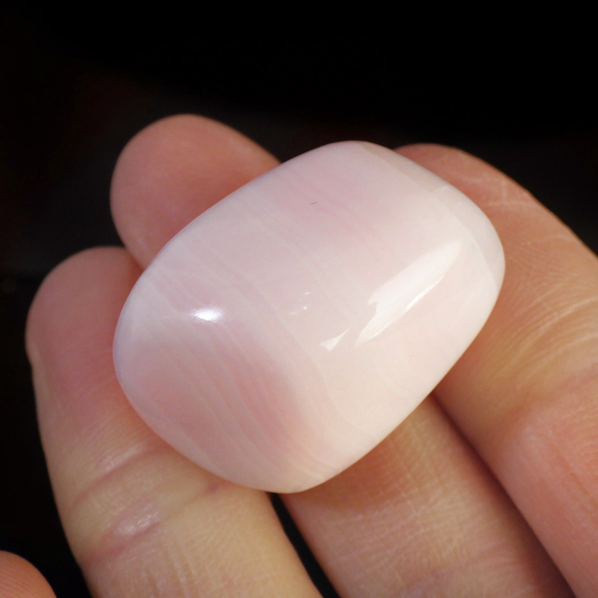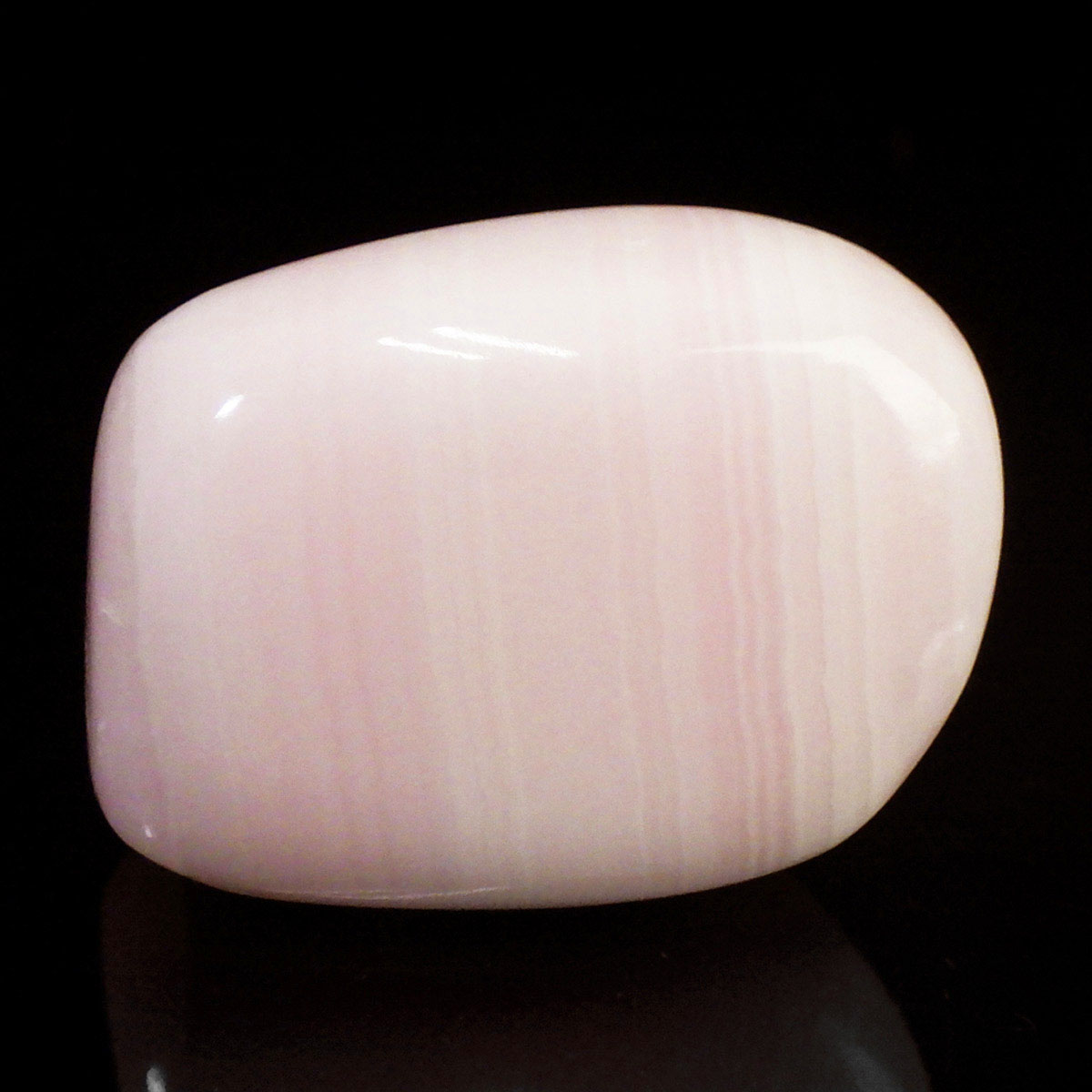 ペルー産のピンクカルサイト、タンブルです。とてもきれいでかわいらしいピンクで質も良いです。ピンクカルサイトはカルサイトの仲間です。マンガンが入っているので、淡く美しく、優しいピンク色になります。マンガンが含まれることにより、ブラックライトを当てると幻想的なピンク色に蛍光します。