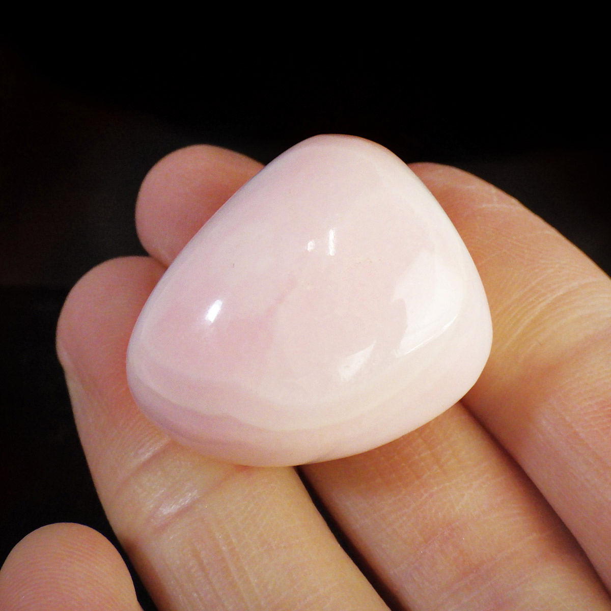 ペルー産のピンクカルサイト、タンブルです。とてもきれいでかわいらしいピンクで質も良いです。ピンクカルサイトはカルサイトの仲間です。マンガンが入っているので、淡く美しく、優しいピンク色になります。マンガンが含まれることにより、ブラックライトを当てると幻想的なピンク色に蛍光します。