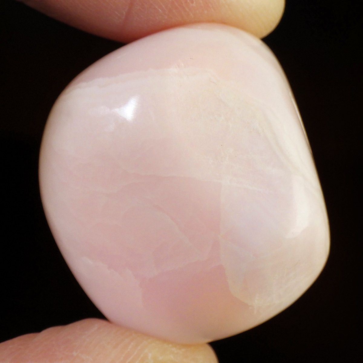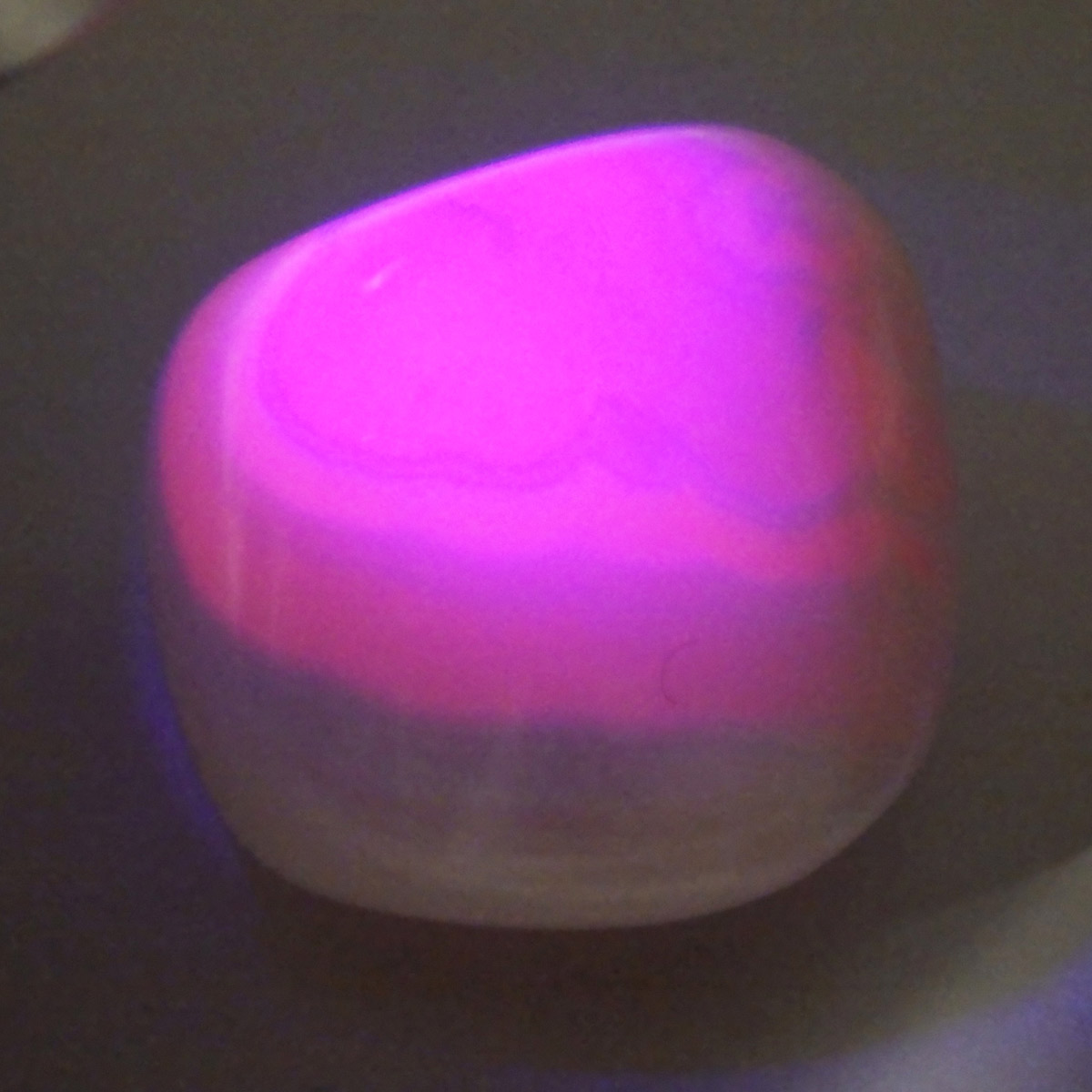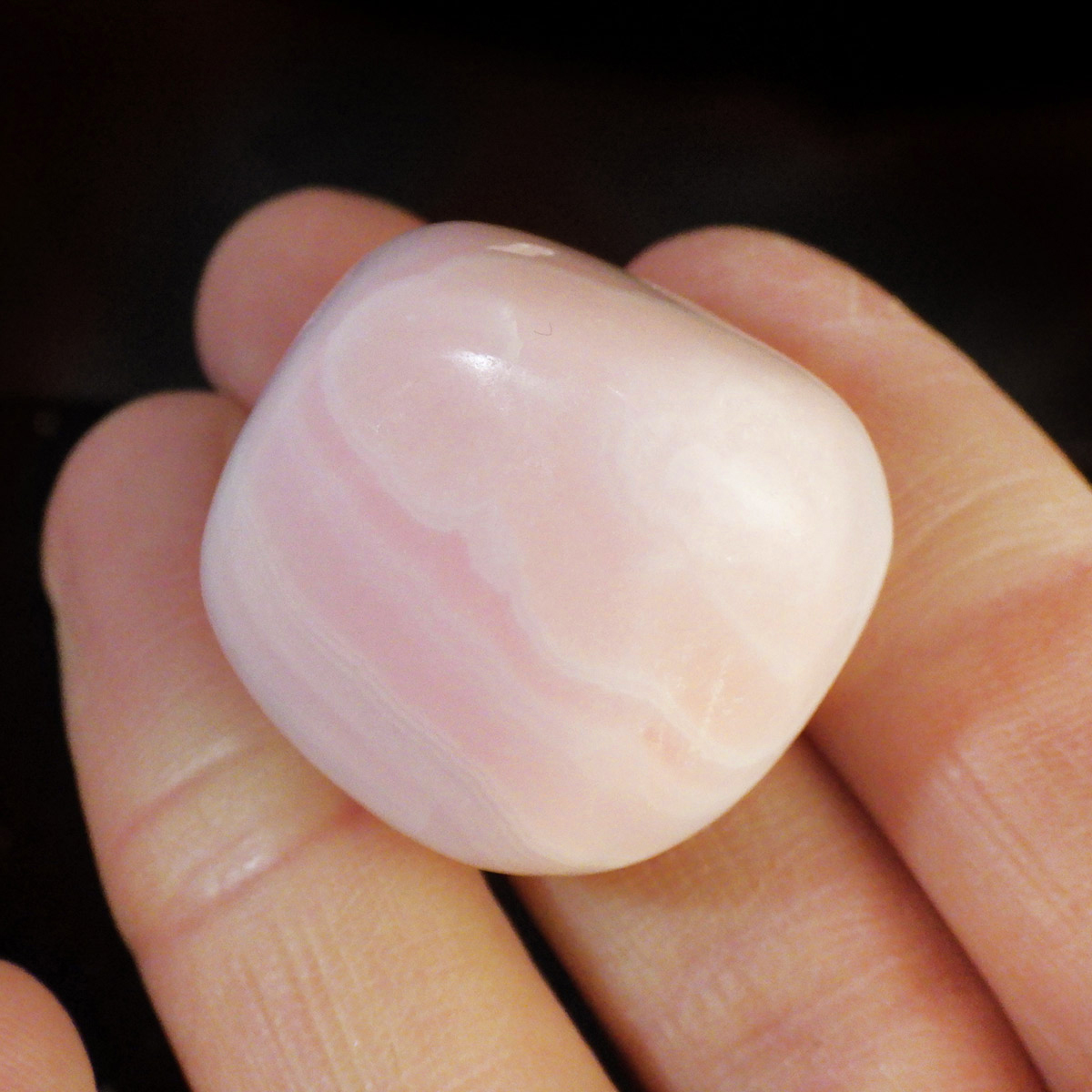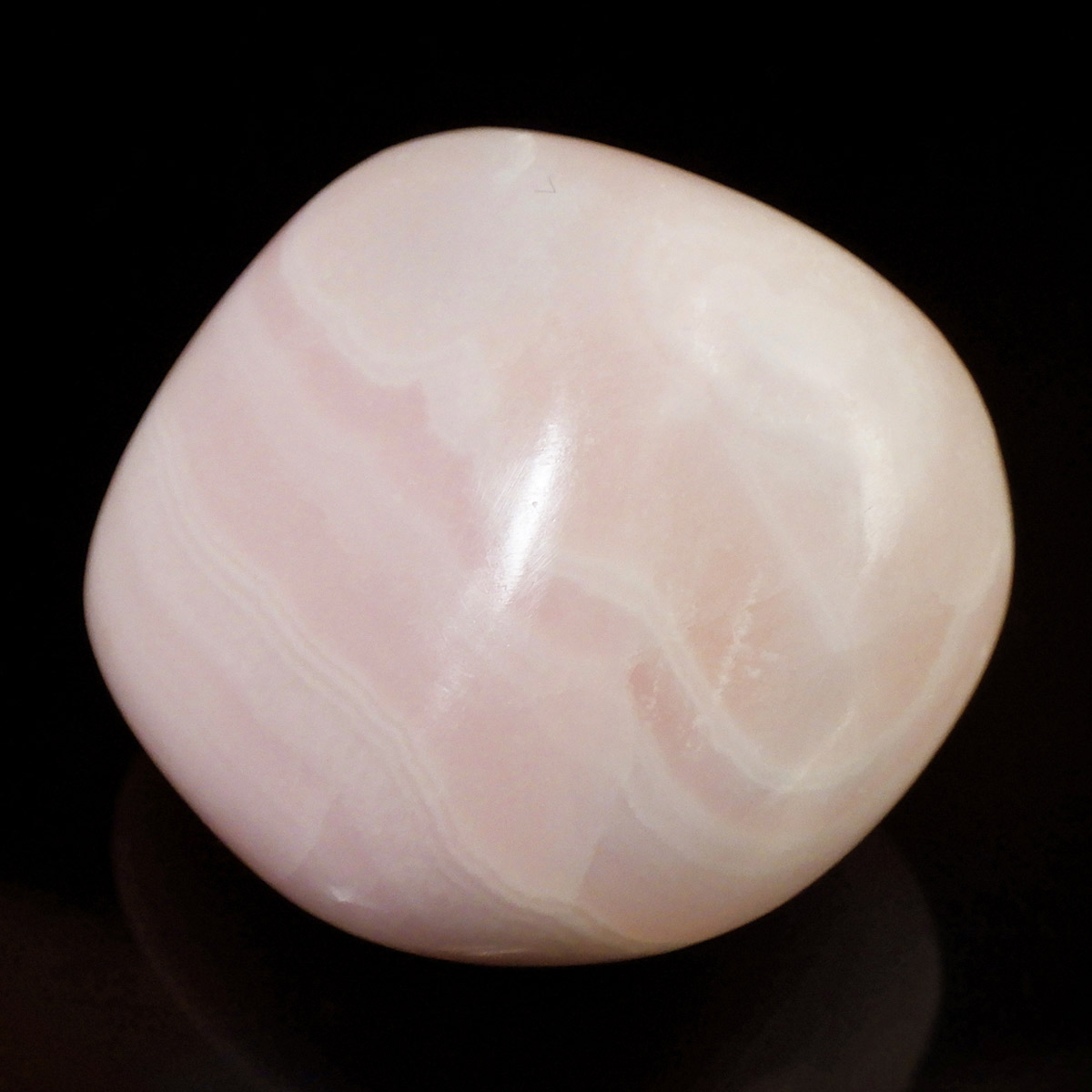 ペルー産のピンクカルサイト、タンブルです。とてもきれいでかわいらしいピンクで質も良いです。ピンクカルサイトはカルサイトの仲間です。マンガンが入っているので、淡く美しく、優しいピンク色になります。マンガンが含まれることにより、ブラックライトを当てると幻想的なピンク色に蛍光します。