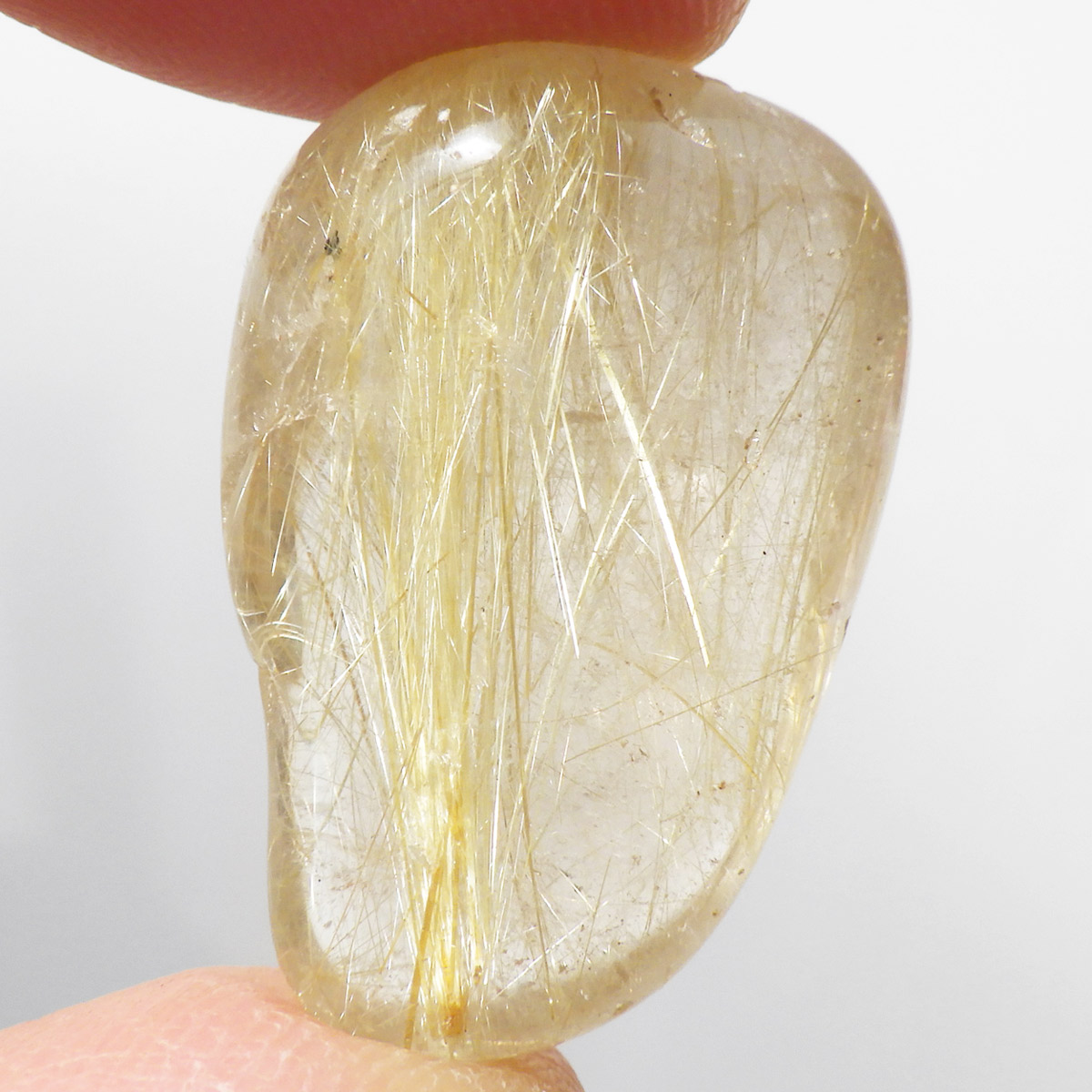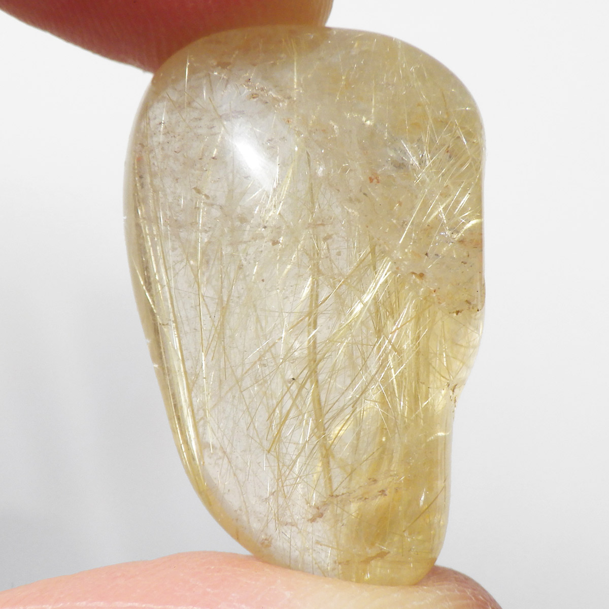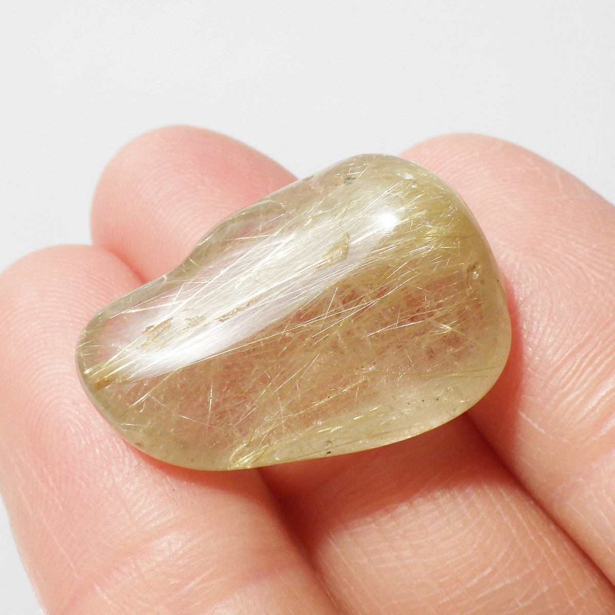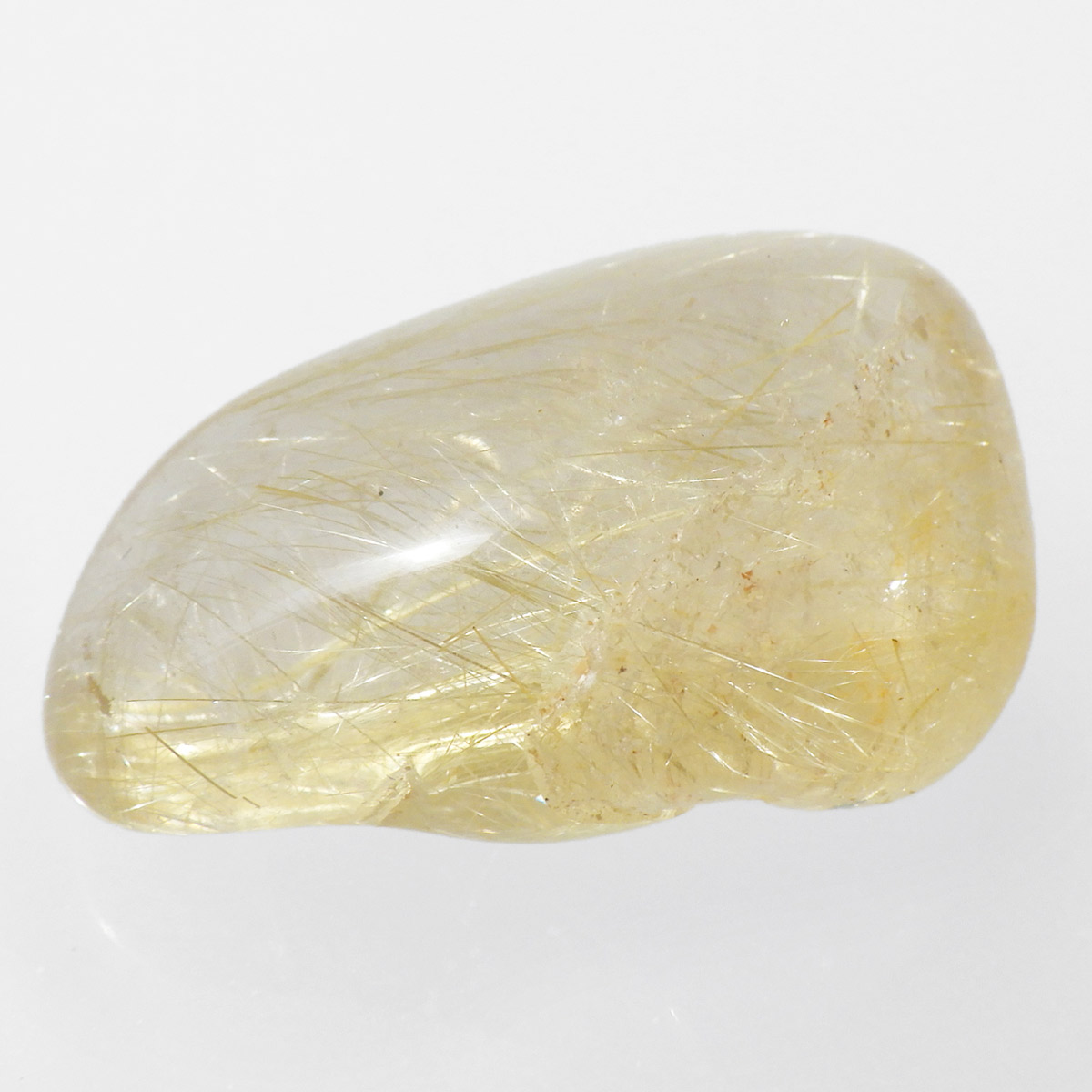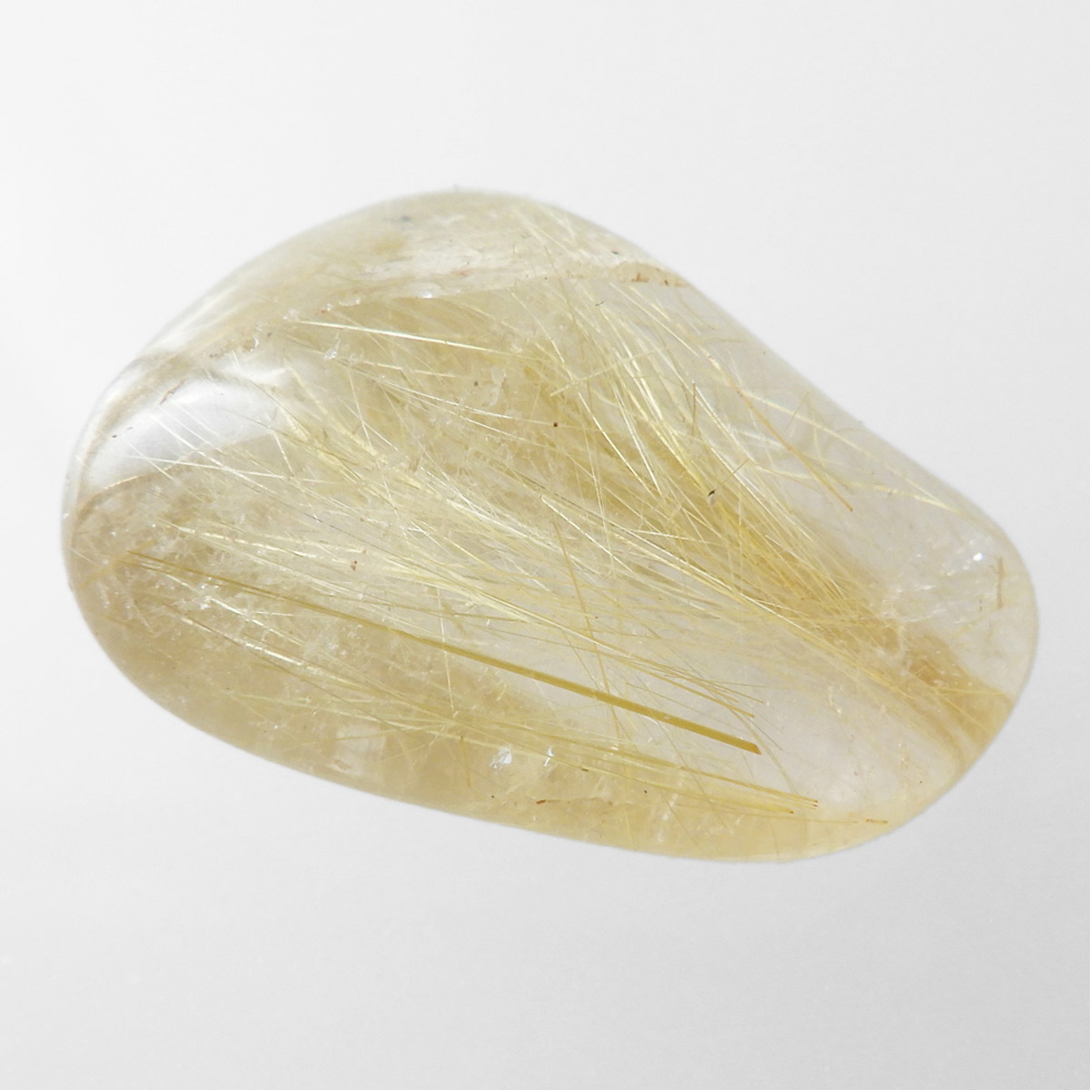 ブラジル産ゴールドルチルクォーツのタンブルです。 水晶の内部に針状のルチルがインクリュージョンされた水晶をルチルクォーツと呼んでいます。金運といえば1番にこの石といわれるほど人気のあるパワーストーンです。比較的水晶に濁りのなく、金色の針がしっかり内包されているものを厳選しております。
