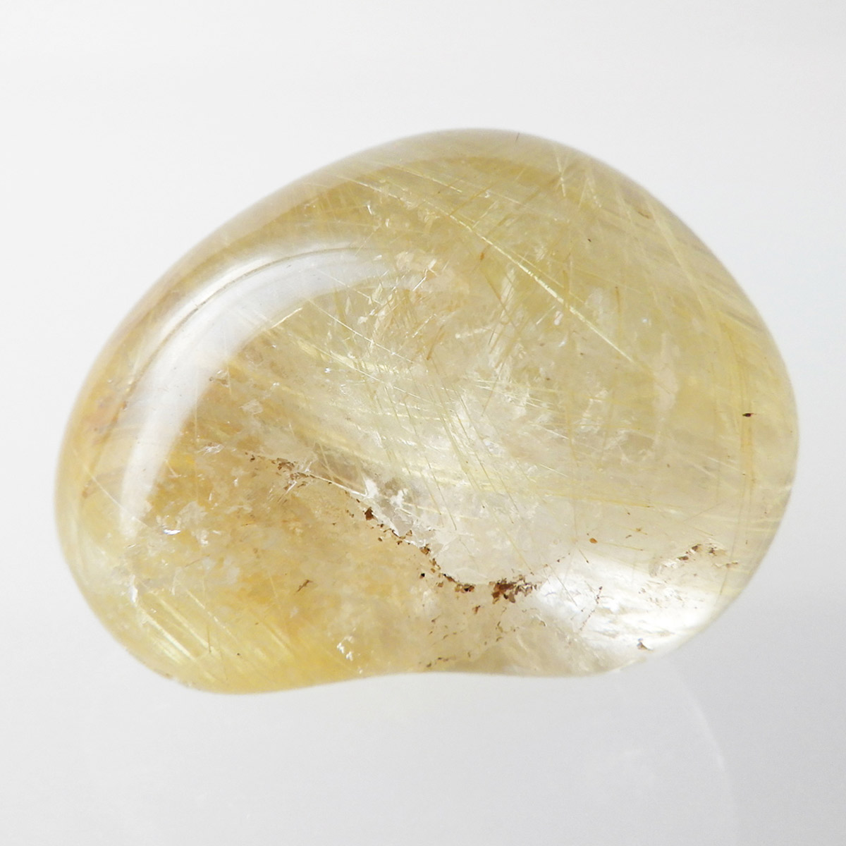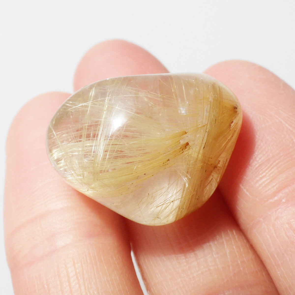 ブラジル産ゴールドルチルクォーツのタンブルです。 水晶の内部に針状のルチルがインクリュージョンされた水晶をルチルクォーツと呼んでいます。金運といえば1番にこの石といわれるほど人気のあるパワーストーンです。比較的水晶に濁りのなく、金色の針がしっかり内包されているものを厳選しております。