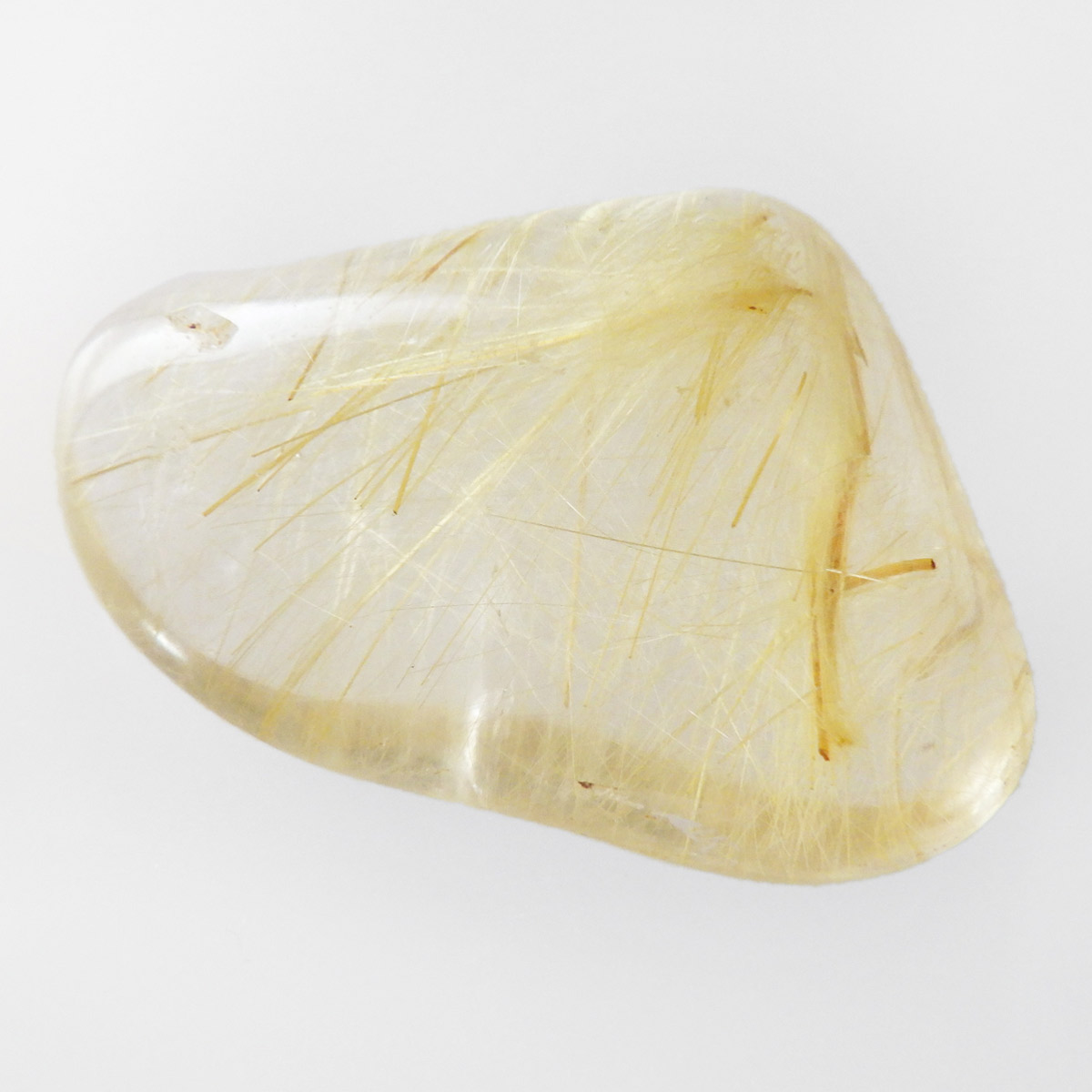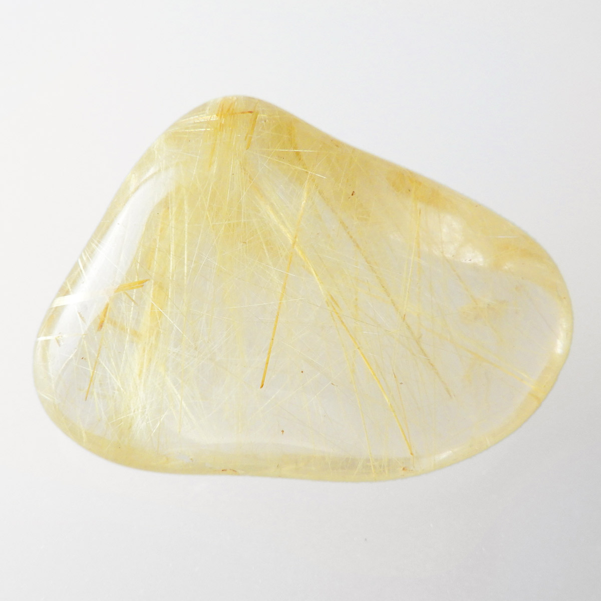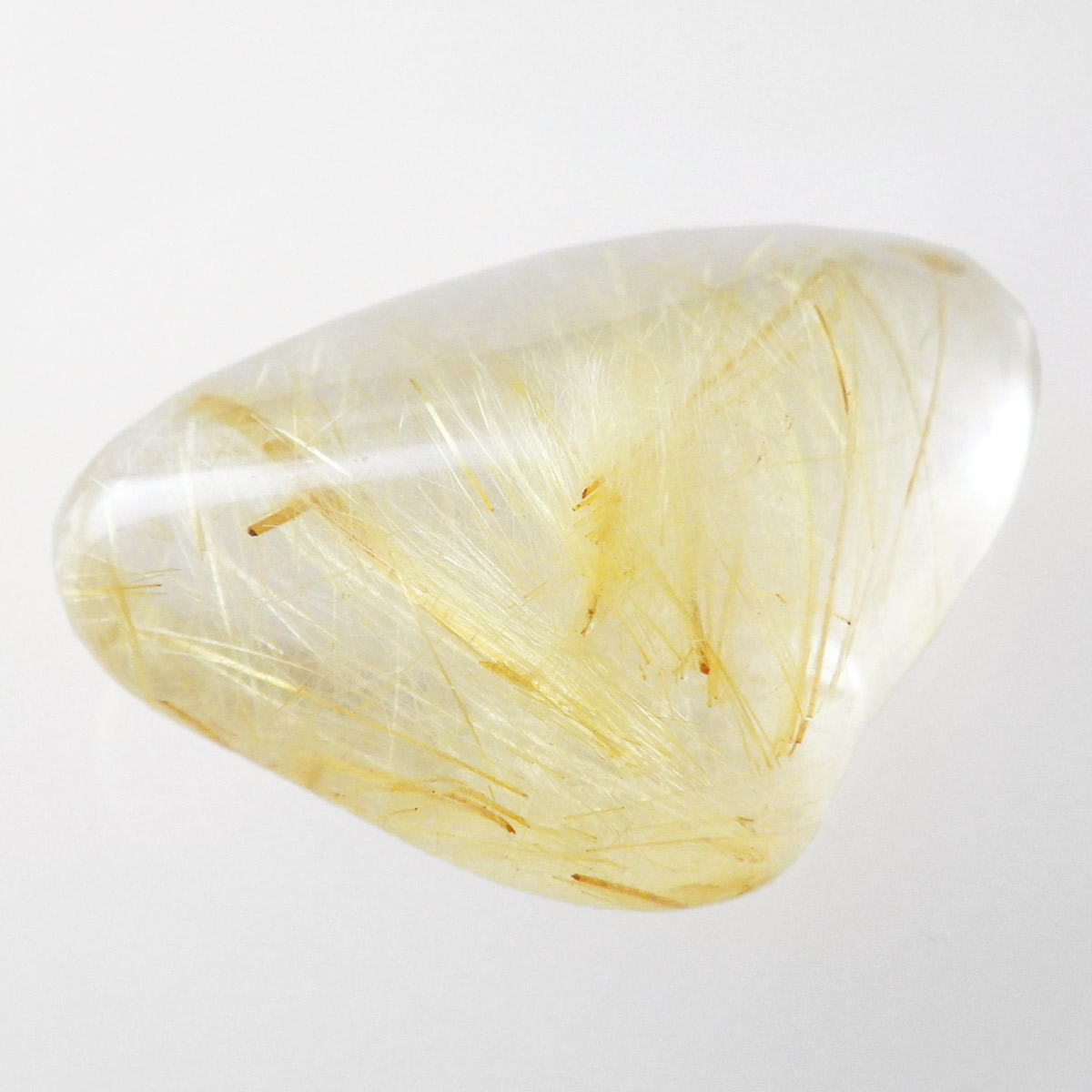 ブラジル産ゴールドルチルクォーツのタンブルです。 水晶の内部に針状のルチルがインクリュージョンされた水晶をルチルクォーツと呼んでいます。金運といえば1番にこの石といわれるほど人気のあるパワーストーンです。比較的水晶に濁りのなく、金色の針がしっかり内包されているものを厳選しております。