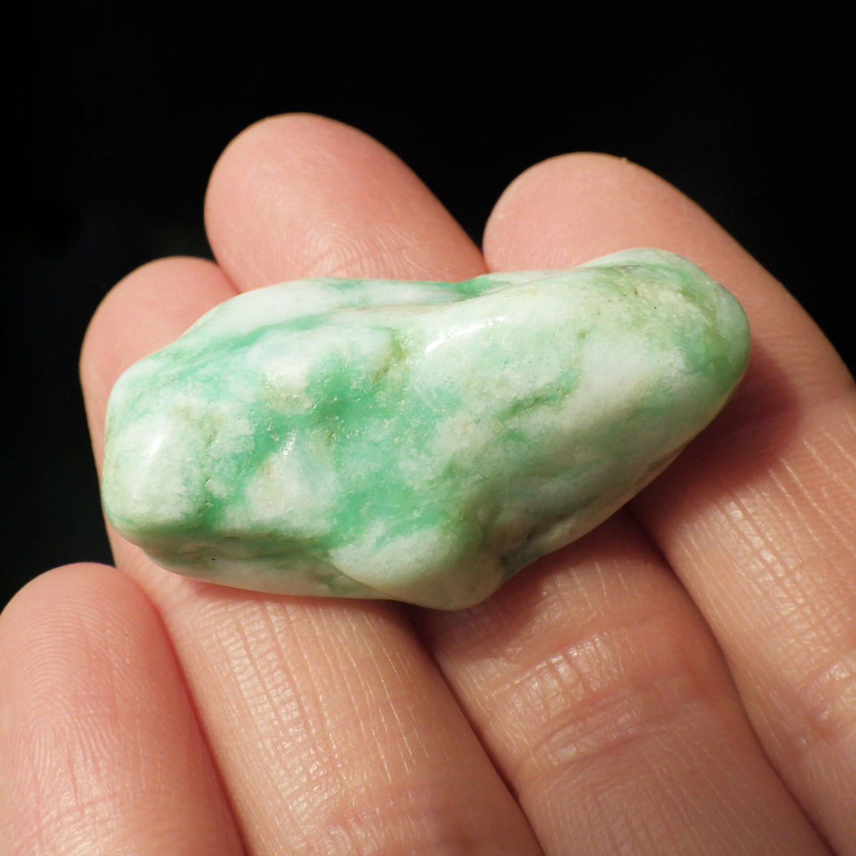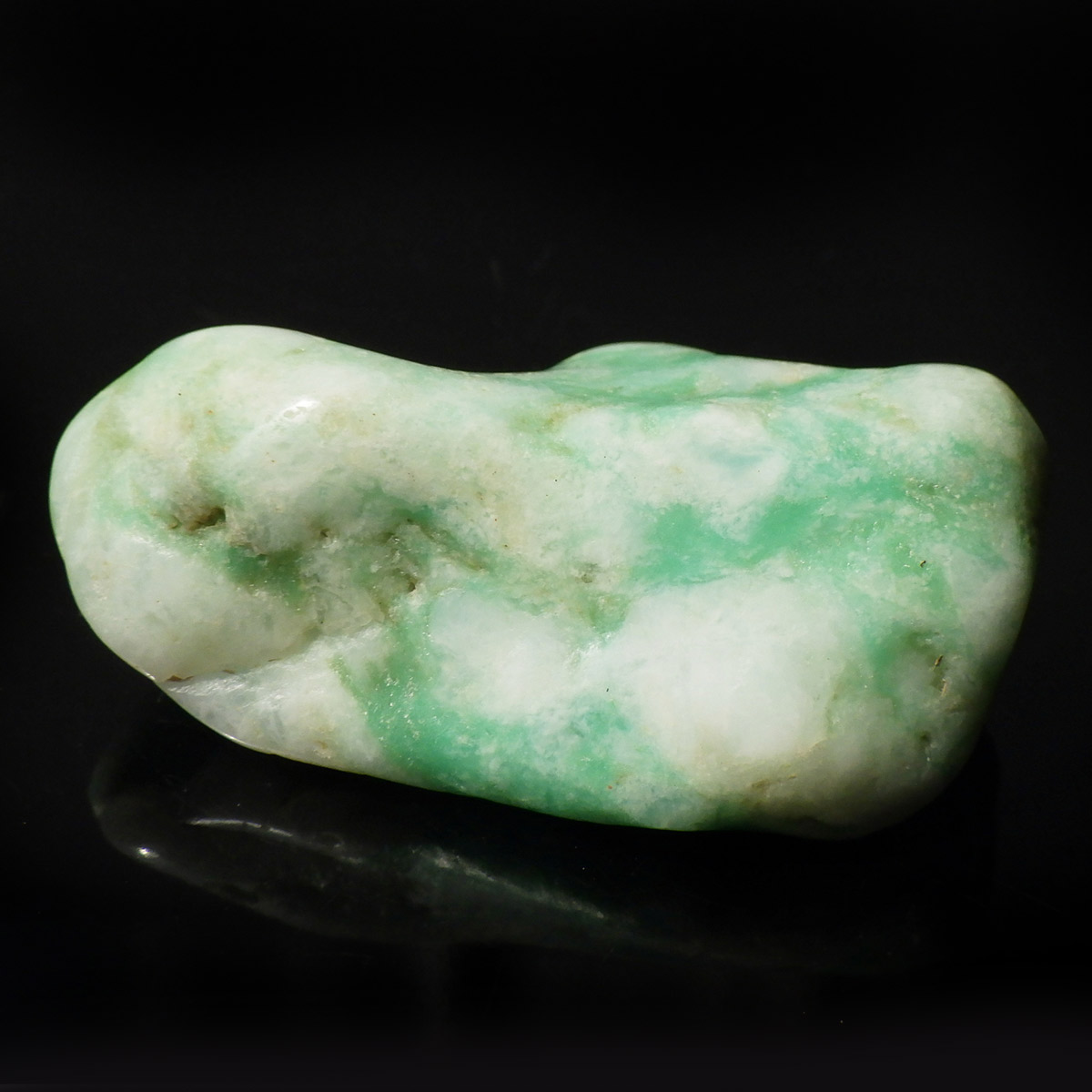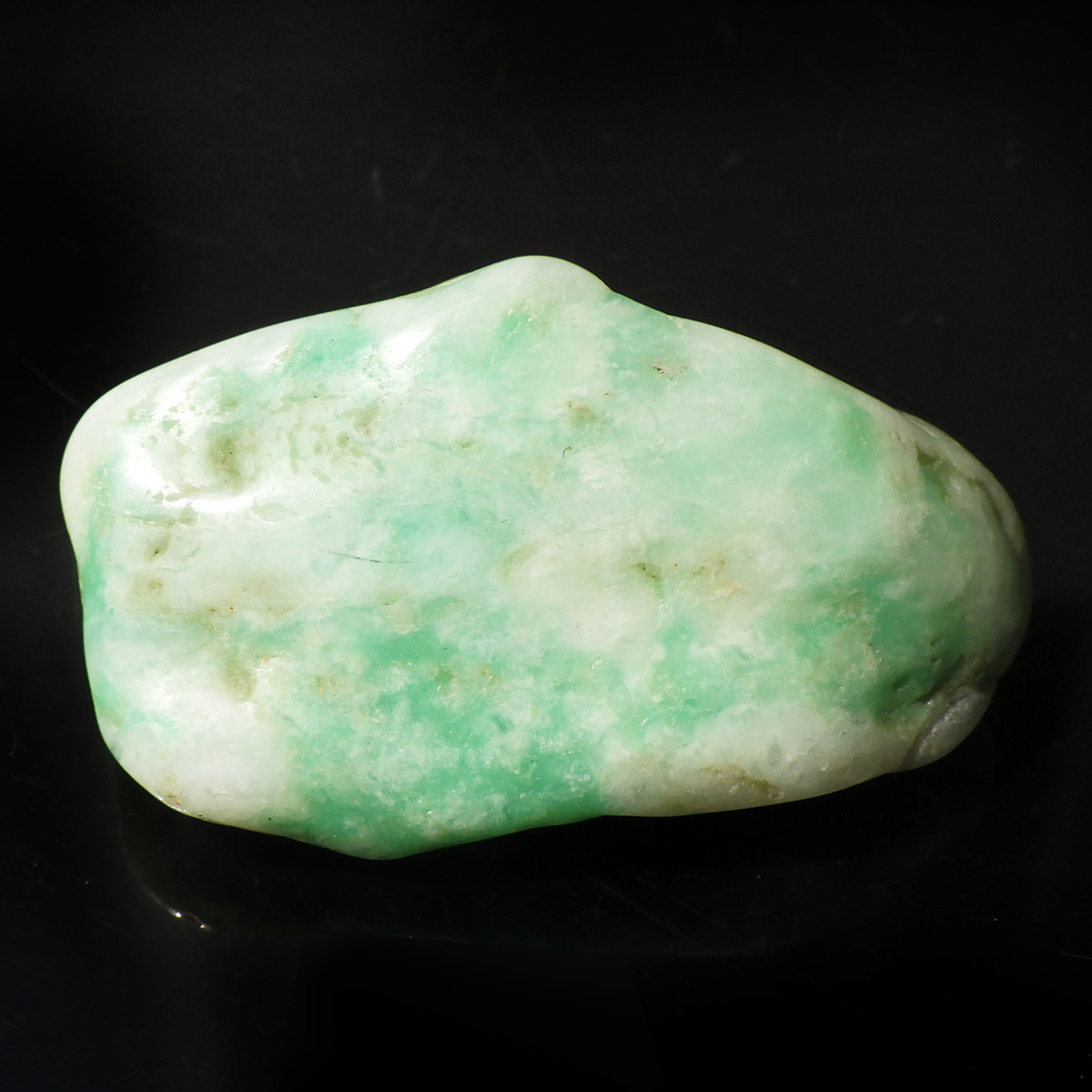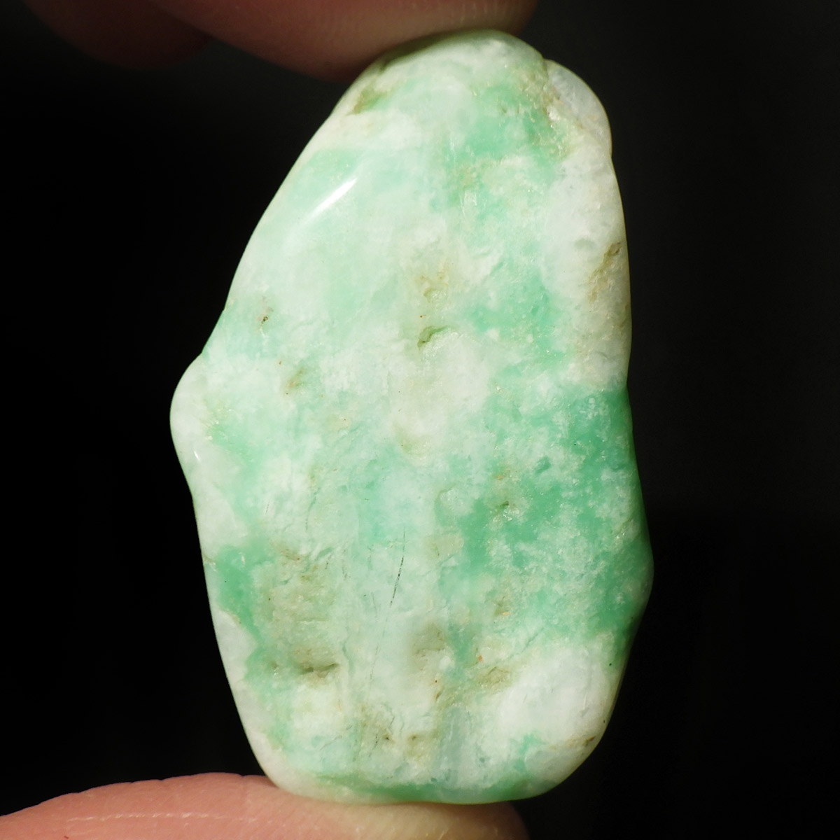 オーストラリア産のクリソプレーズ、タンブルです。 和名を「緑玉髄」といいます。カルセドニーの一種で、黄緑色や薄緑色のものをクリソプレーズと言います。産出量がとても少ない為カルセドニーの中で最も価値が高い石とされており、その鮮やかな色から「アップルグリーン」と呼ばれ親しまれてきました。生成は珪酸溶液中にニッケルを含む鉱物が混入し、コロイド状になって固まってできると言われています。太陽光に長時間当てると退色する恐れがあるので注意が必要です。