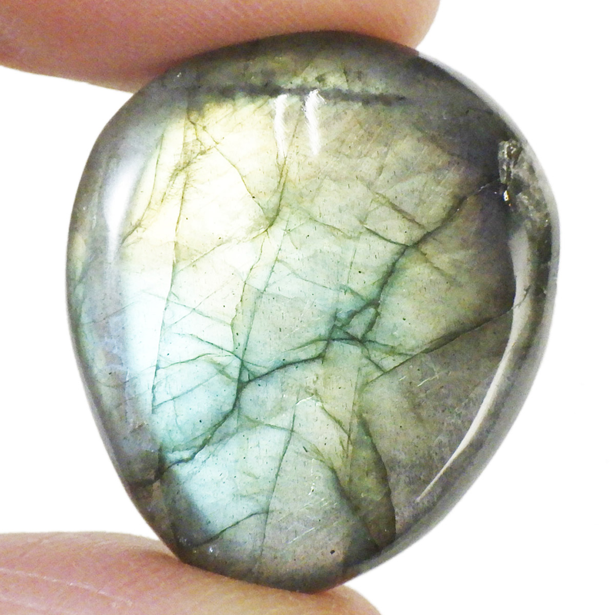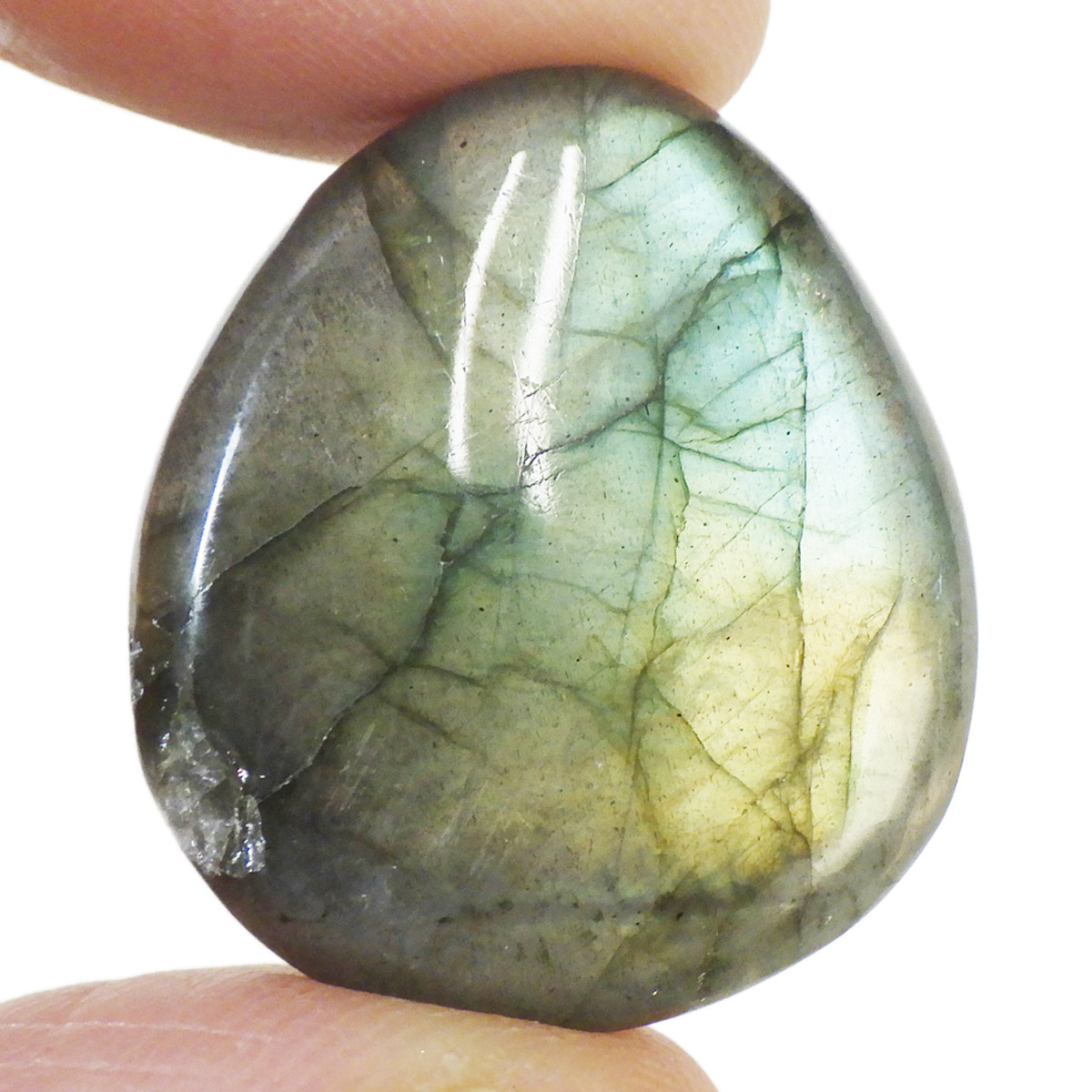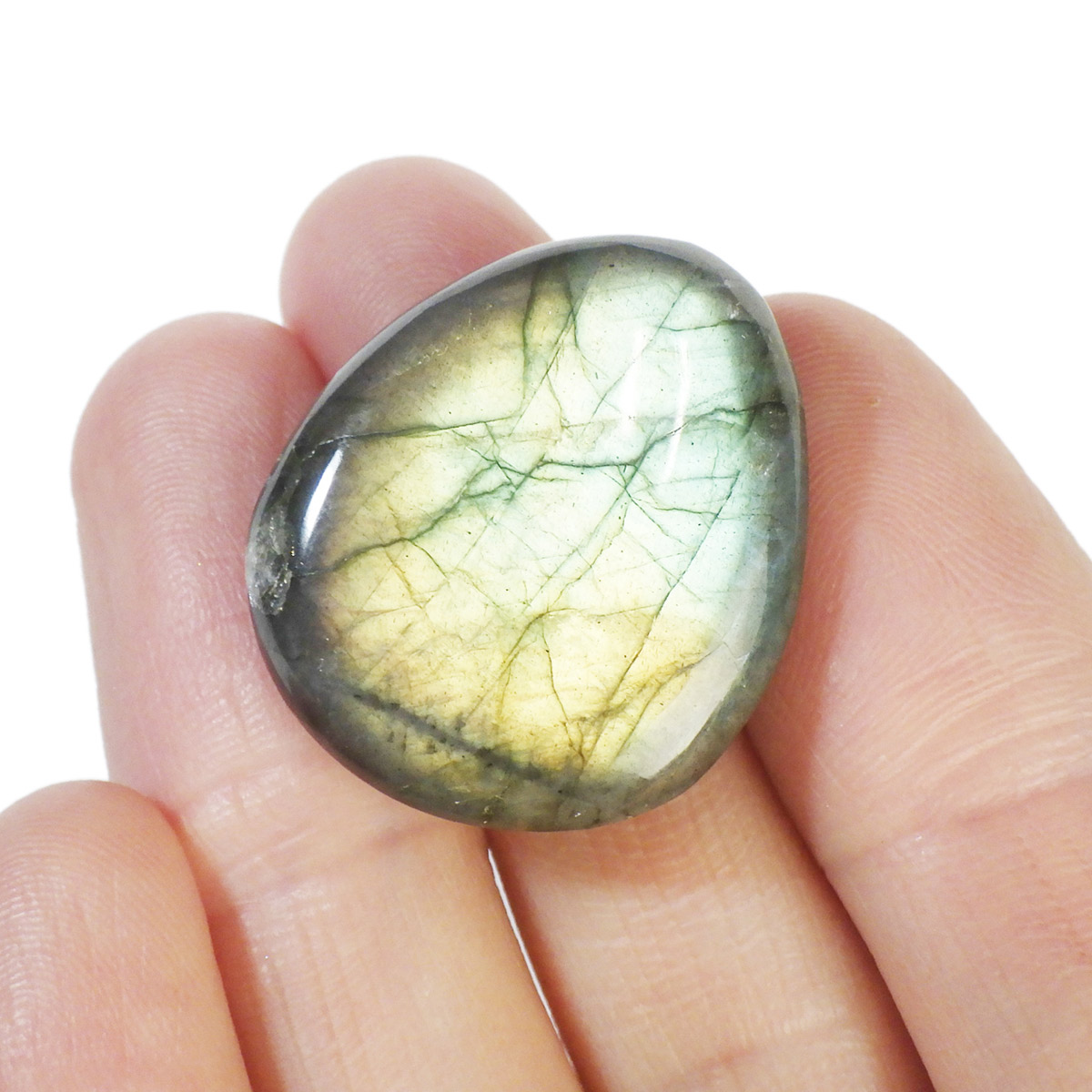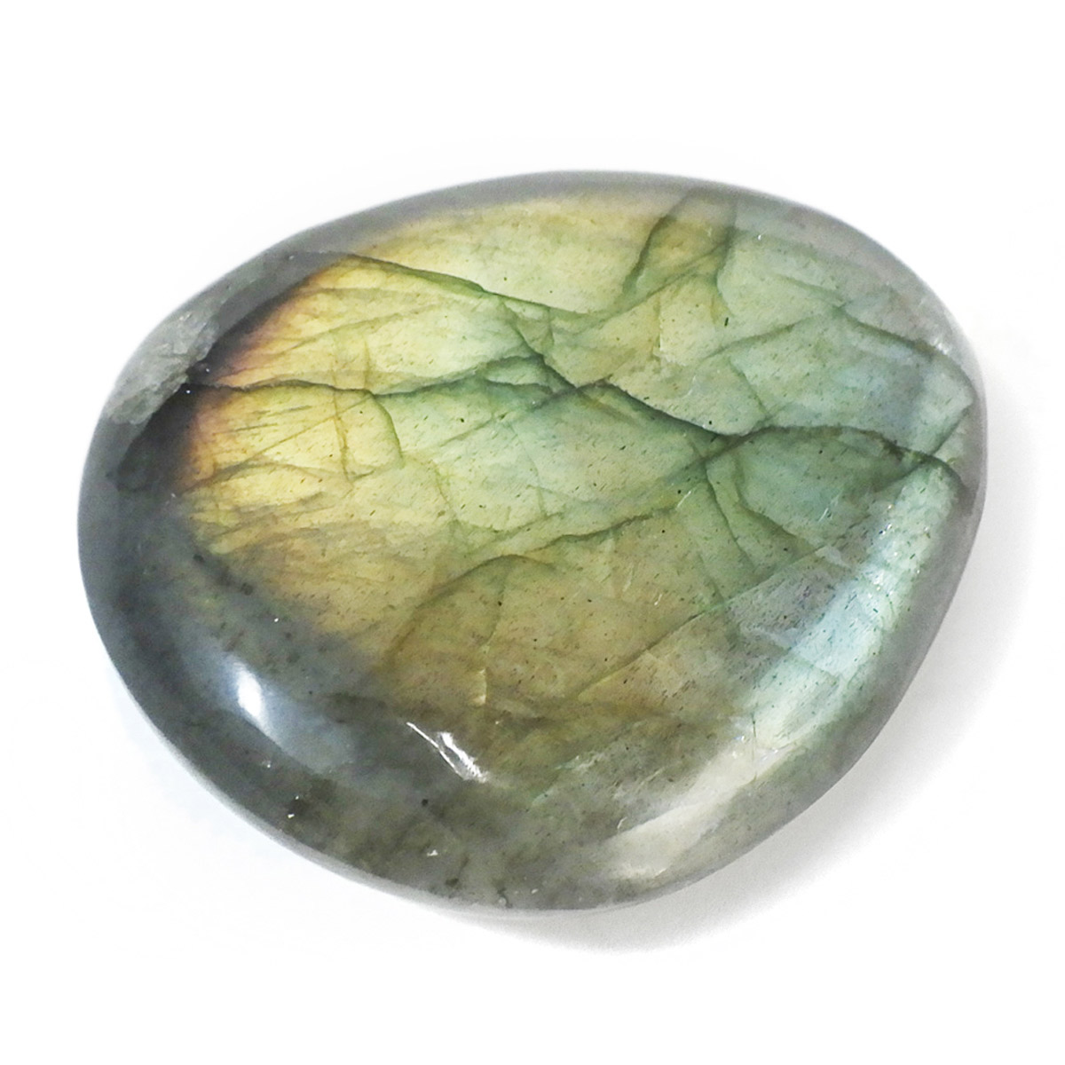 マダガスカル産のラブラドライト、タンブルです。ラブラドライトは見る角度によってオーロラのような色彩を変えるラブラドレッセンスという美しい光を持つのが特徴です。表と裏全面にラブラドレッセンスが見られます。通称フルフラッシュラブラドライトでマクラメやワイヤーアートなどにもおすすめなサイズです。