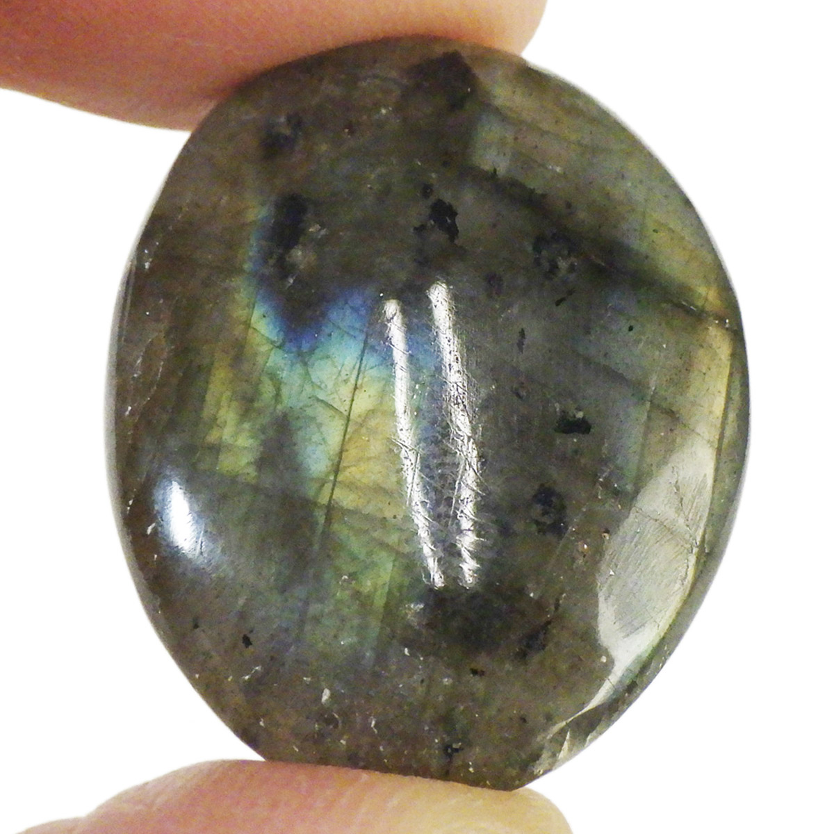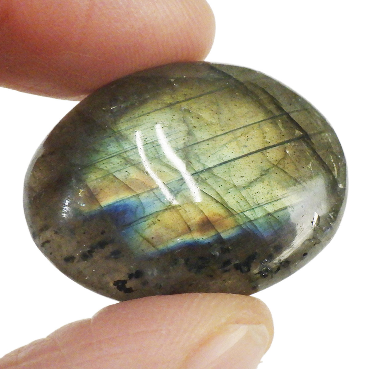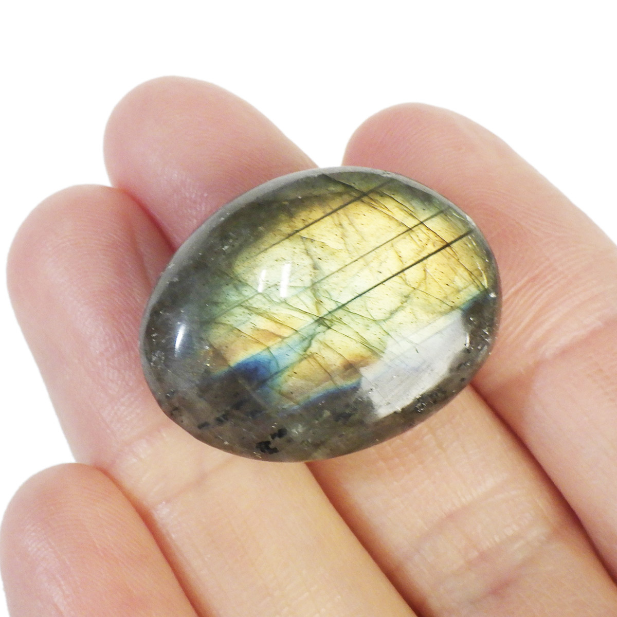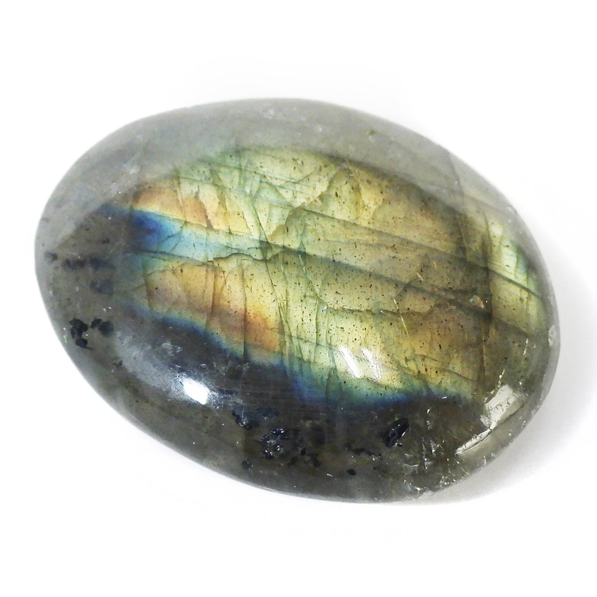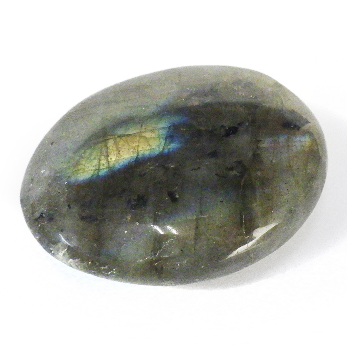 マダガスカル産のラブラドライト、タンブルです。ラブラドライトは見る角度によってオーロラのような色彩を変えるラブラドレッセンスという美しい光を持つのが特徴です。表と裏全面にラブラドレッセンスが見られます。通称フルフラッシュラブラドライトでマクラメやワイヤーアートなどにもおすすめなサイズです。