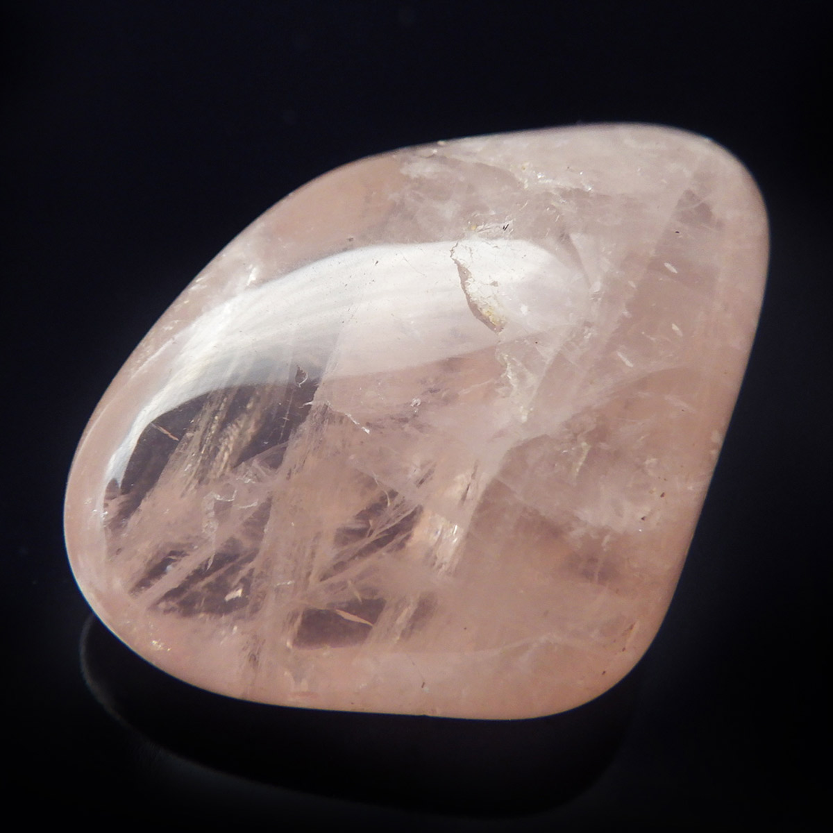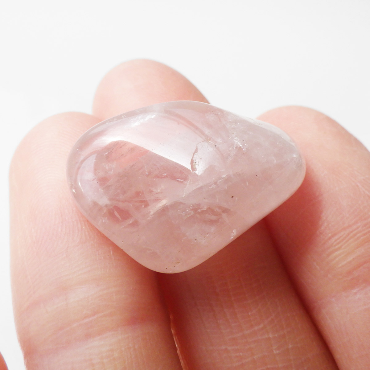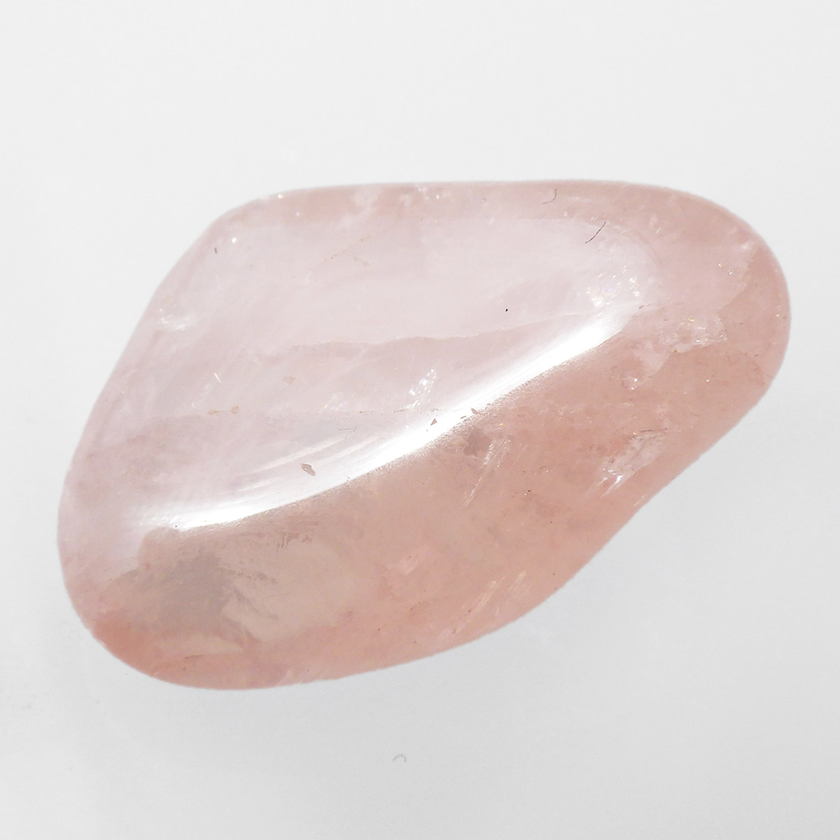 ブラジル産のローズクォーツ、タンブルです。ローズクォーツの中でも透明度が高く、発色の良いハイグレードのものです。光に透かすと内部の結晶がキラリと輝きとてもきれいです。