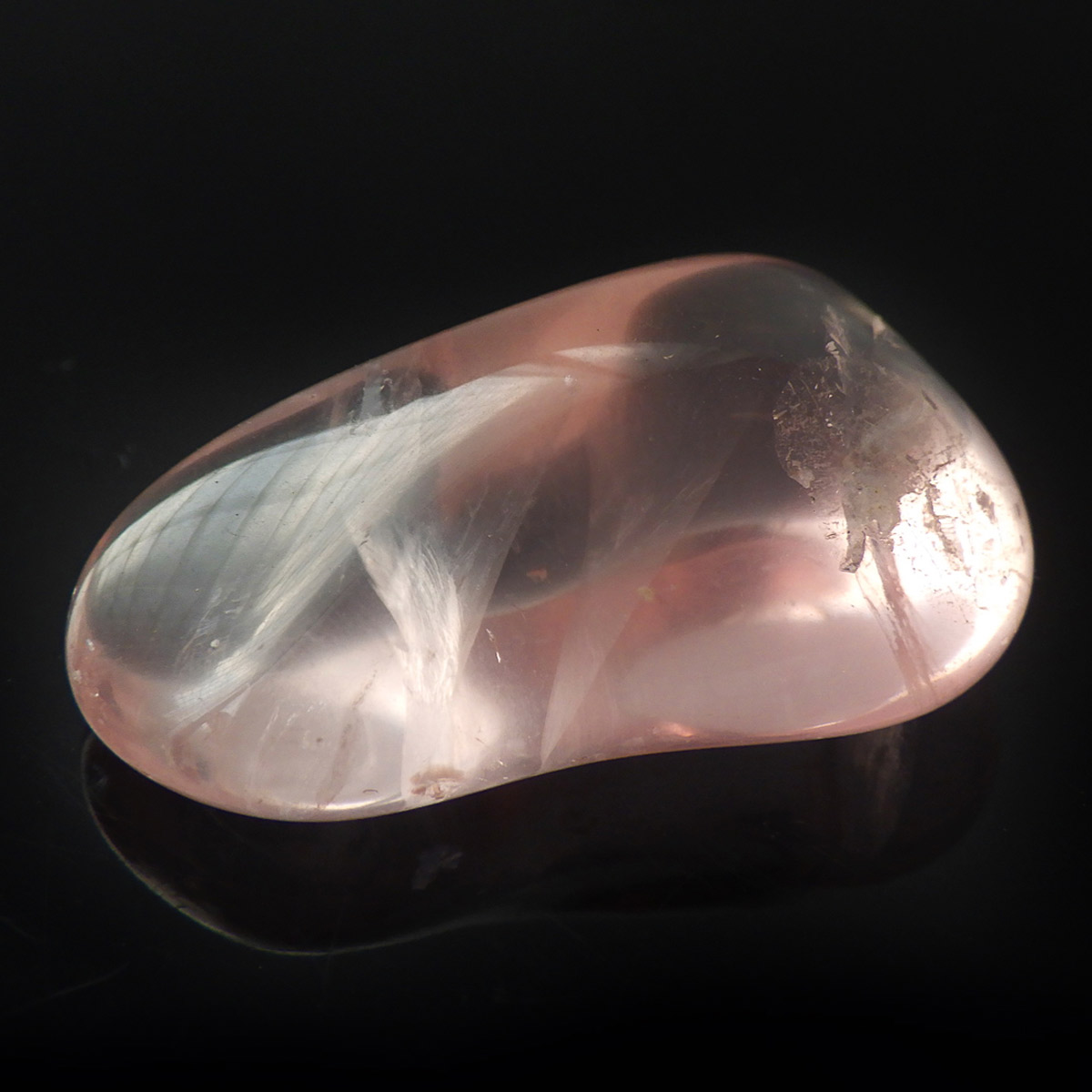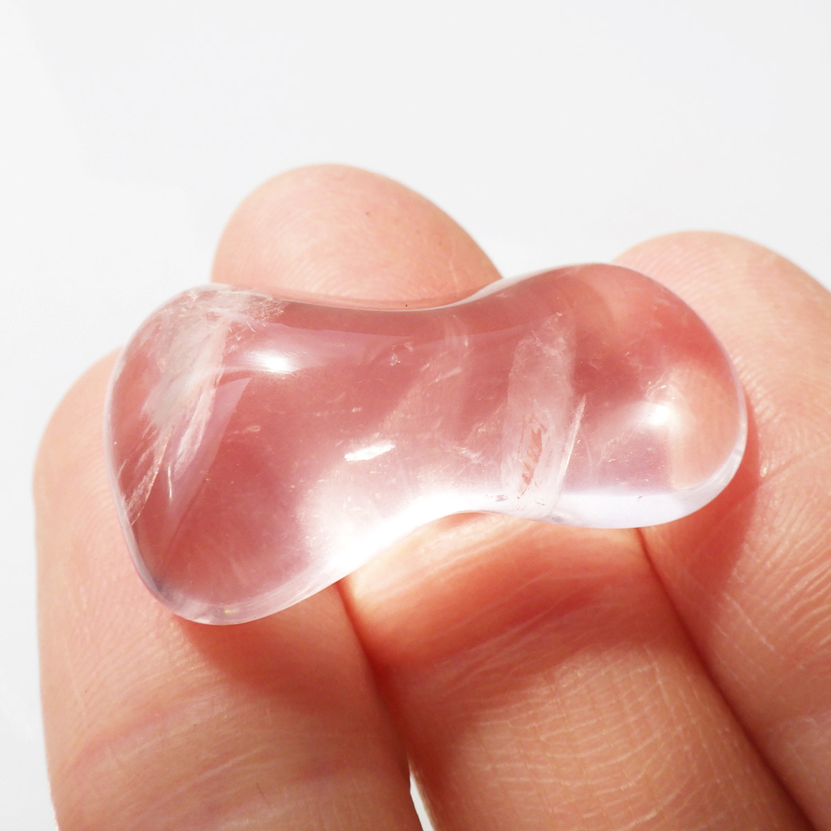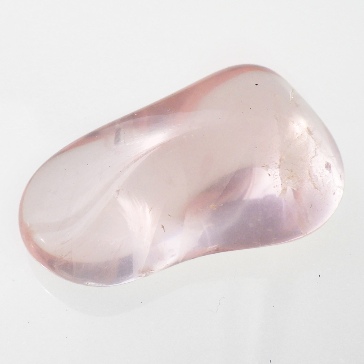ブラジル産のローズクォーツ、タンブルです。ローズクォーツの中でも透明度が高く、発色の良いハイグレードのものです。光に透かすと内部の結晶がキラリと輝きとてもきれいです。