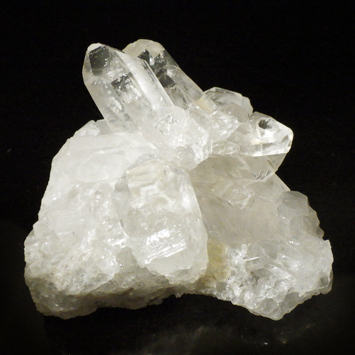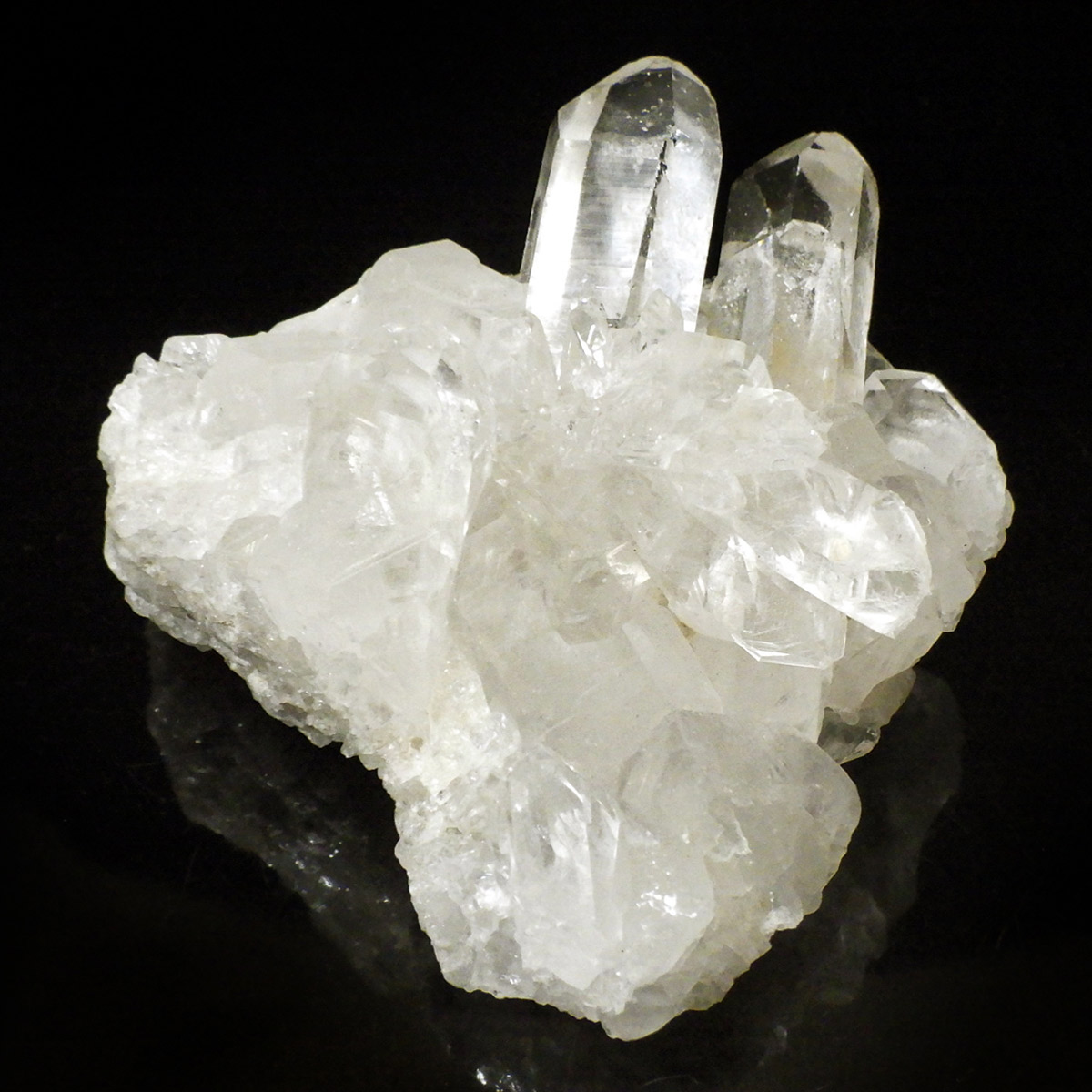 良質な水晶の産地、ブラジル ミナスジェライス州産の水晶クラスターです。この水晶クラスターの特徴は、照りと艶。光沢が強いため、驚くほどキラキラとしています。