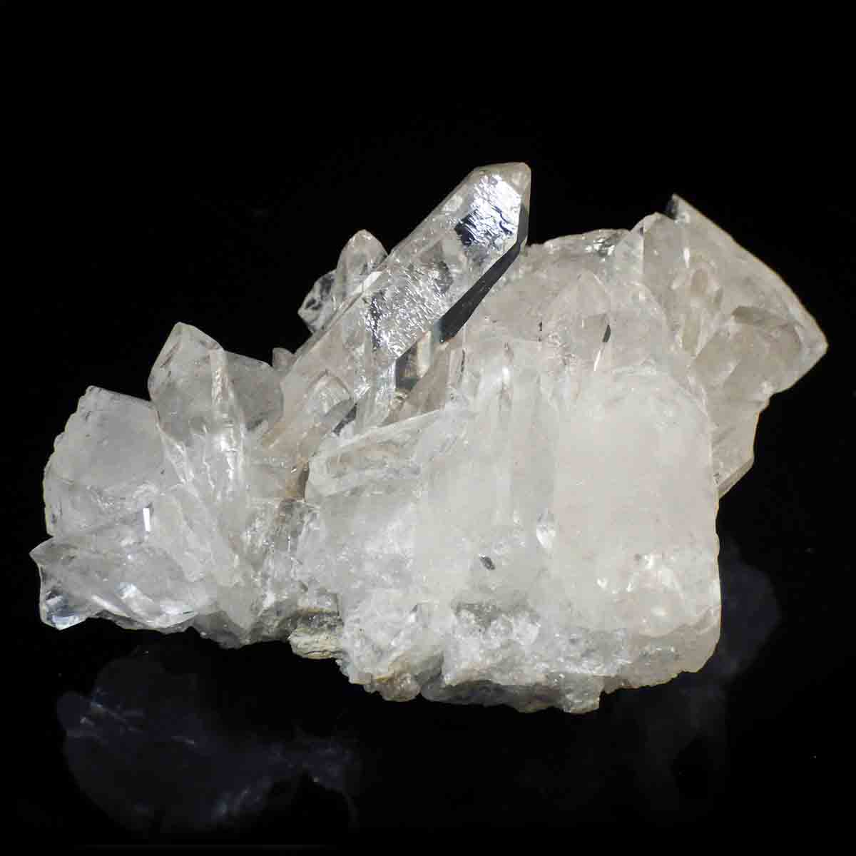 良質な水晶の産地、ブラジル ミナスジェライス州産の水晶クラスターです。この水晶クラスターの特徴は、照りと艶。光沢が強いため、驚くほどキラキラとしています。