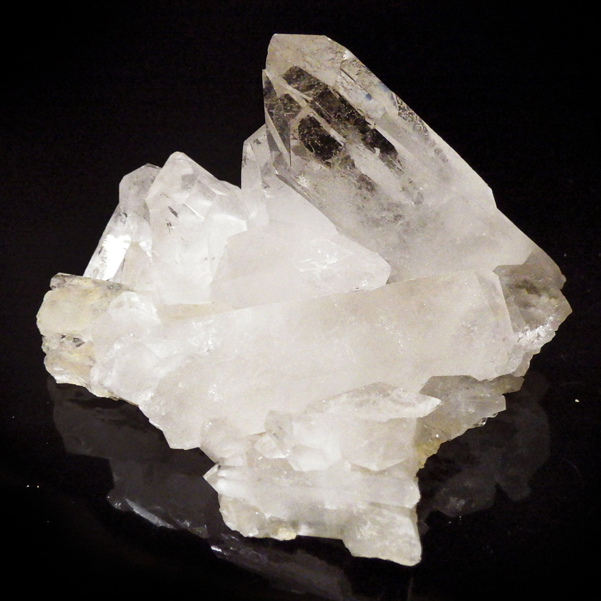 良質な水晶の産地、ブラジル ミナスジェライス州産の水晶クラスターです。この水晶クラスターの特徴は、照りと艶。光沢が強いため、驚くほどキラキラとしています。