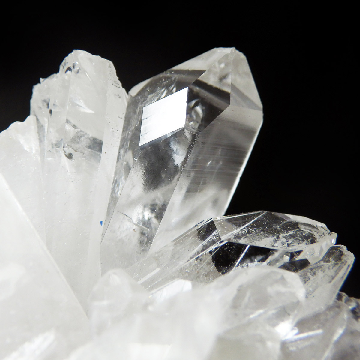 非常に透明度の高い大小様々な結晶が複雑に絡み合い、見る角度によって様々な表情を見せる大変美しいクラスターです。