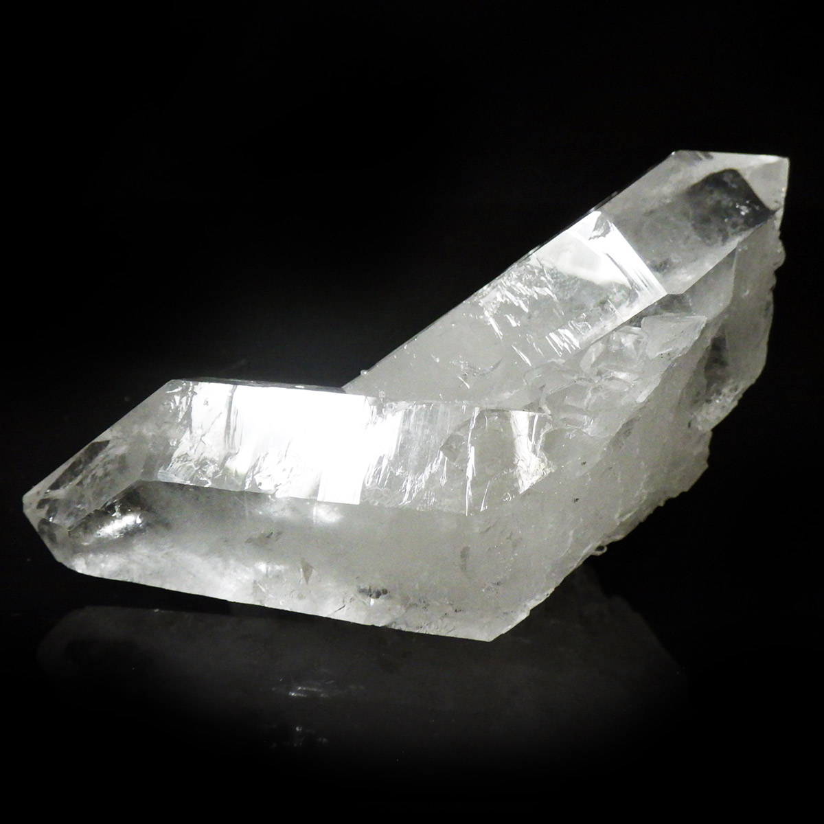 良質な水晶の産地、ブラジル ミナスジェライス州産の水晶クラスターです。この水晶クラスターの特徴は、照りと艶。光沢が強いため、驚くほどキラキラとしています。
