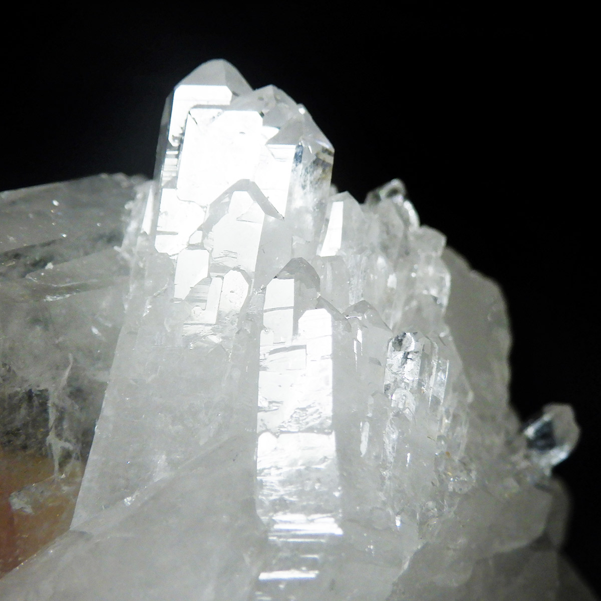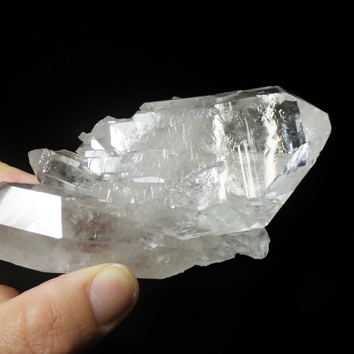 非常に透明度の高い大小様々な結晶が複雑に絡み合い、見る角度によって様々な表情を見せる大変美しいクラスターです。